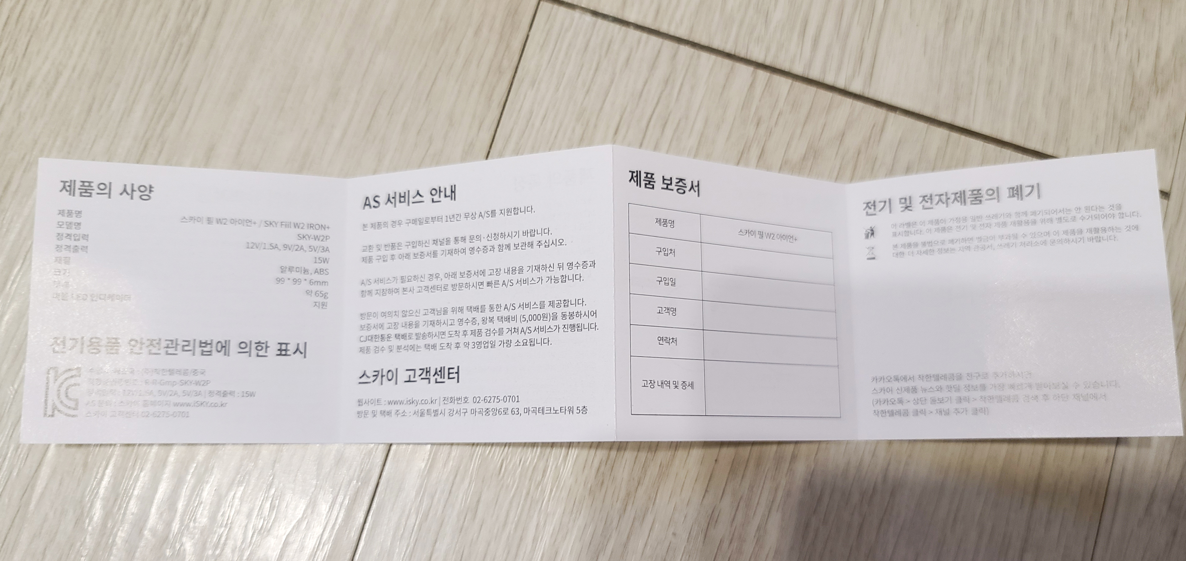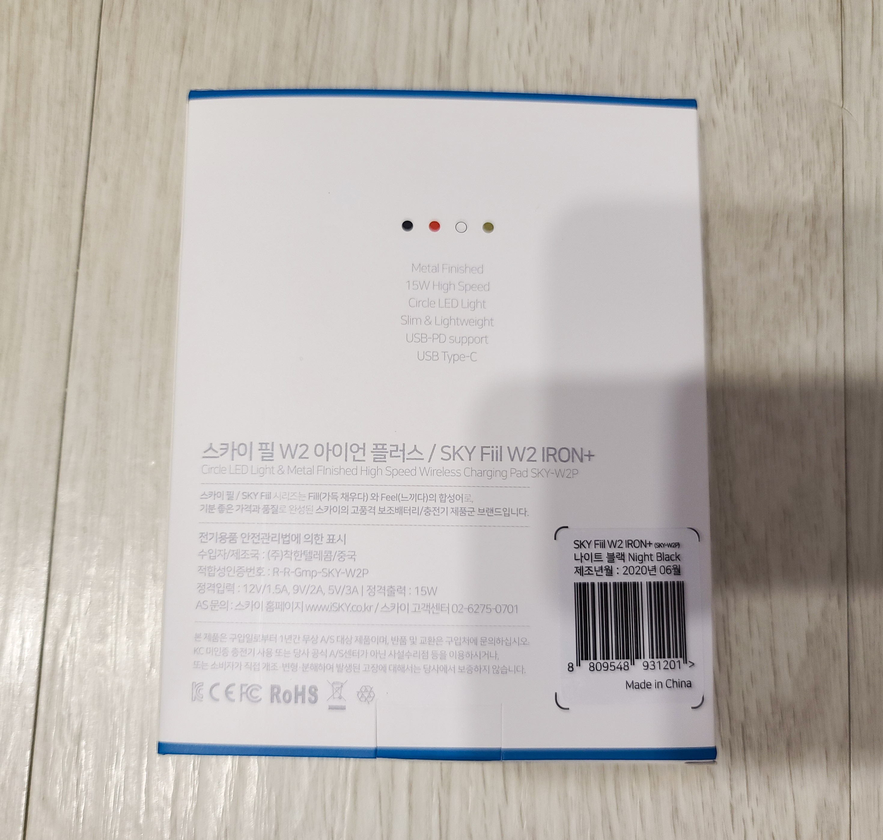그래서 무선 고속 충전을 지원하면서, 가격도 합리적인 제품이 어떤 게 있을까 검색하다가 우연히 발견한 제품을 하나 소개해드릴까 합니다. 제품은 <스카이 필 W2 아이언 플러스/ SKY Fill W2 IRON+> 인데, 할인을 많이 받아서 제품 본체의 가격은 7천 원 정도 하였고, 배송비 포함 9천 원 정도에 구입할 수 있었습니다.