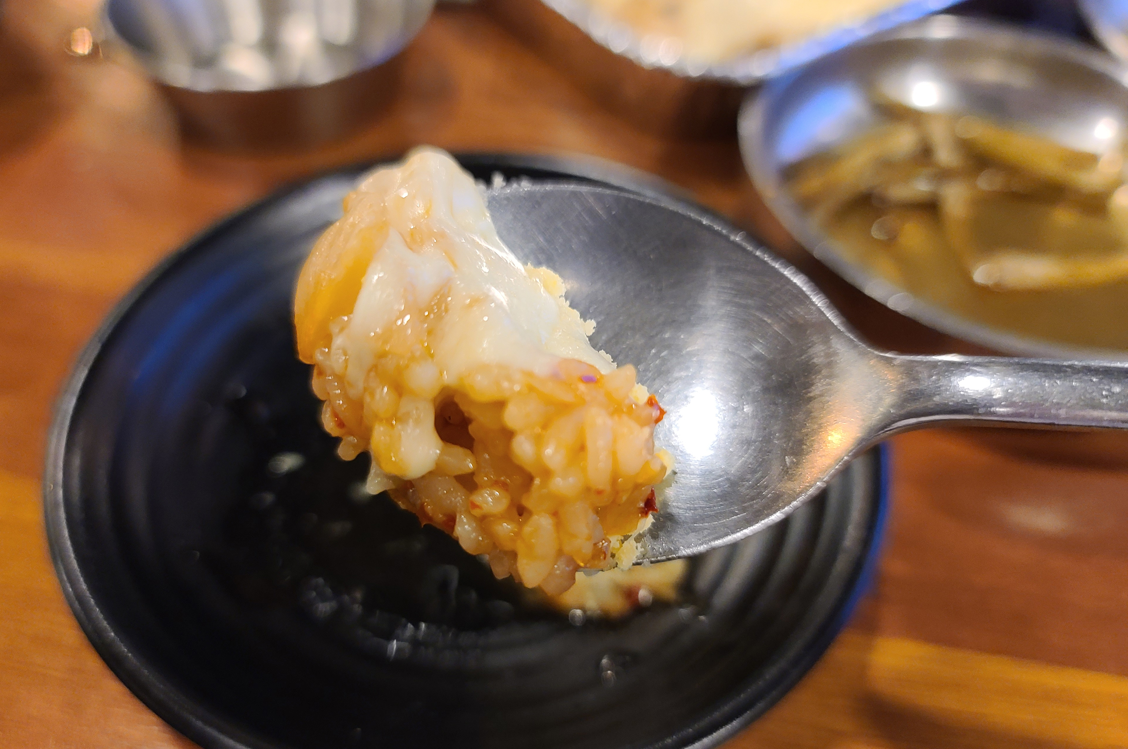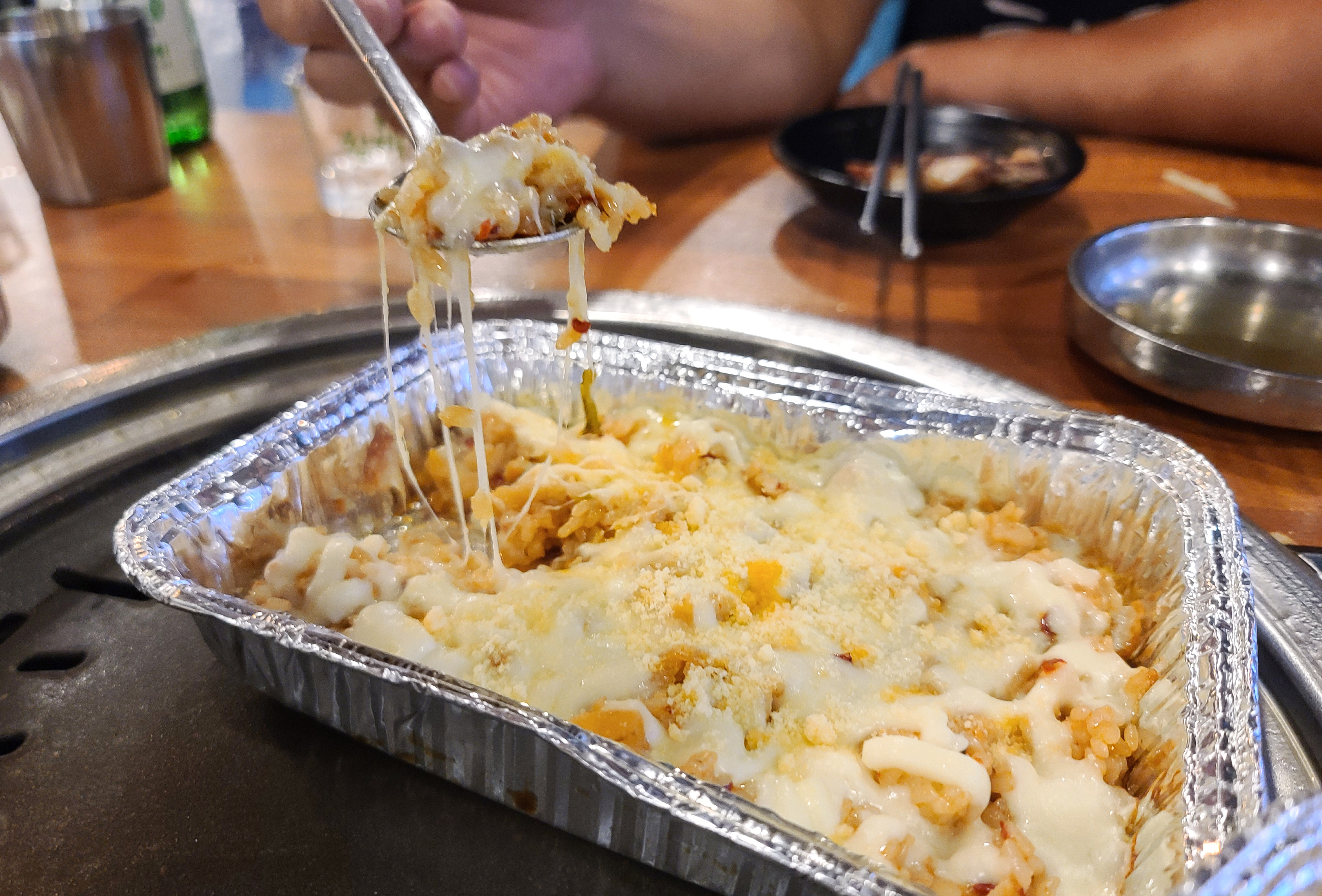끝으로 화포식당의 사각 치즈 볶음밥을 주문하여 먹었습니다. 베이스는 김치볶음밥 형태였고, 위에 피자치즈와 파마산 치즈가 토핑이 된 형태였습니다. 후식으로 먹기에 맛이 괜찮았고요, 고소하면서도 살짝 매콤한 게 입맛에 잘 맞았습니다.