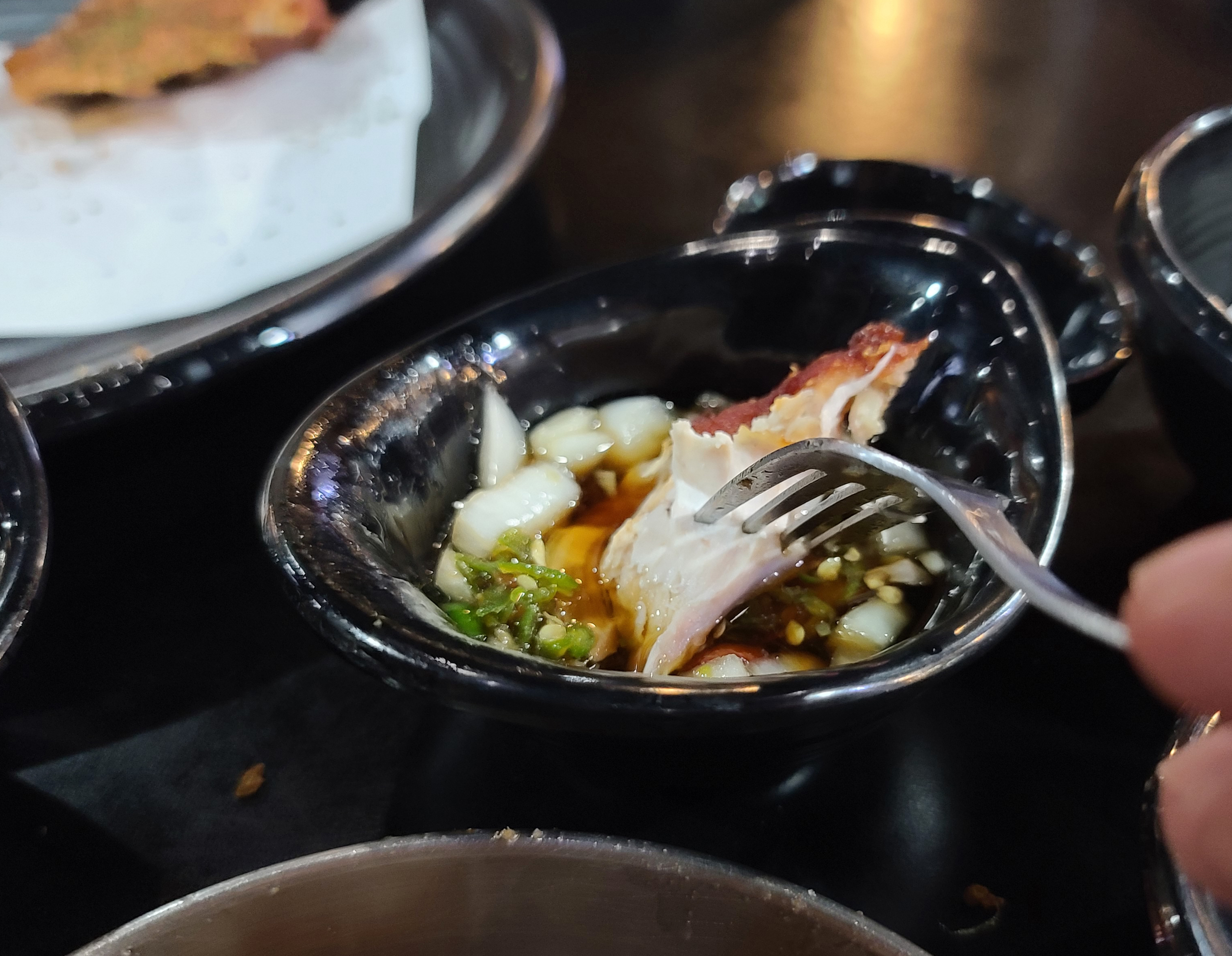 특히 치킨은 대구의 치킨집이 모두 이렇게 주는지는 모르겠지만, 간장 양념을 같이 제공해줘서 이색적이었습니다. 양파와 청양고추를 썰어 넣은 간장 양념장은 치킨과 묘하게 잘 맞더라고요.