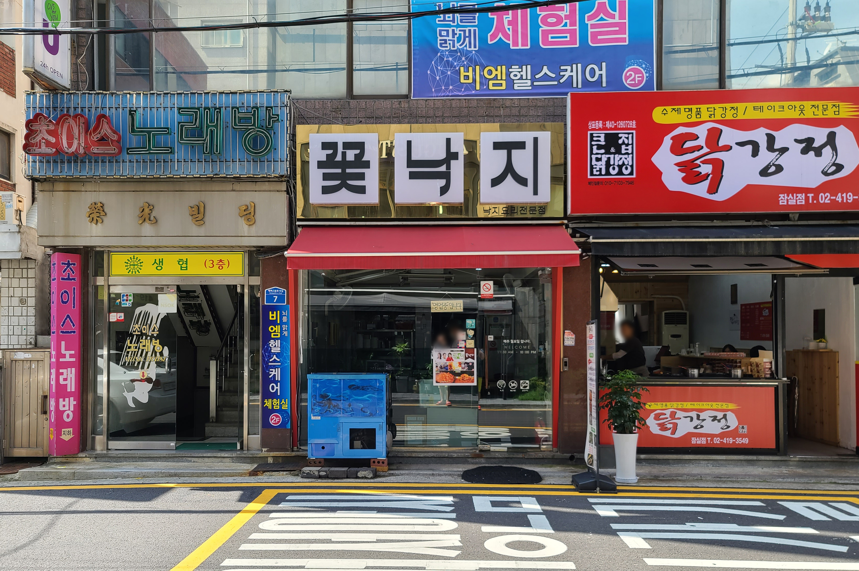 잠실 꽃낙지 가게가 위치한 건물 뒤편 주차장에 차량 2~3대 정도 댈 수 있는 주차장이 있지만, 주차가 불편하니 대중교통을 이용하시면 더 좋을 것 같습니다. 잠실새내역과 삼전역이 인근에 있으니, 편리한 노선을 이용하시면 되겠습니다. 가게 영업시간은 11:30~ 22:00 까지였습니다. (매주 월요일 휴무)