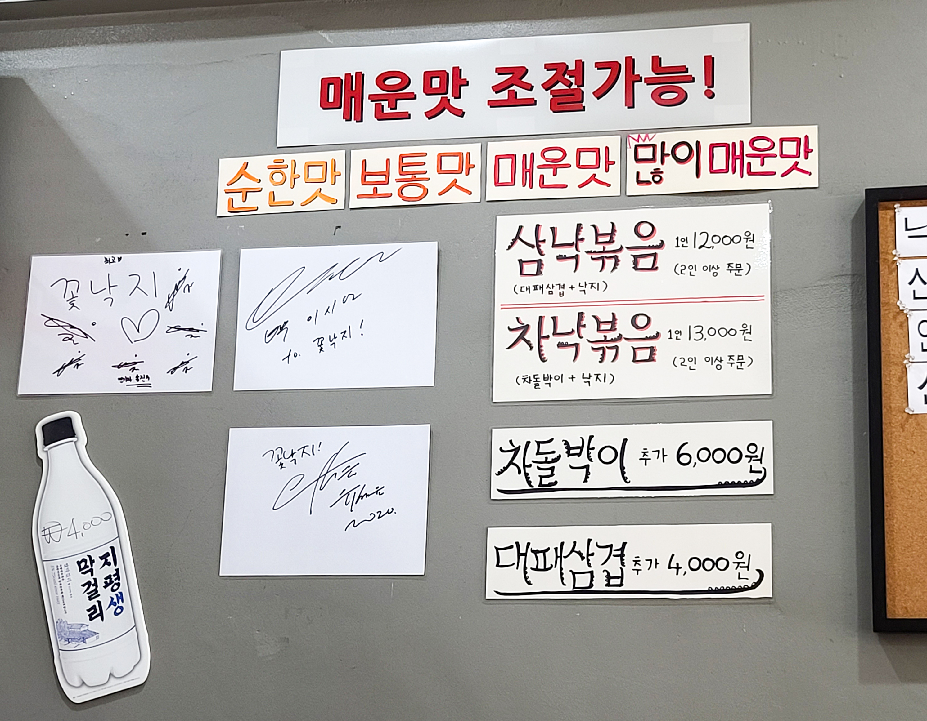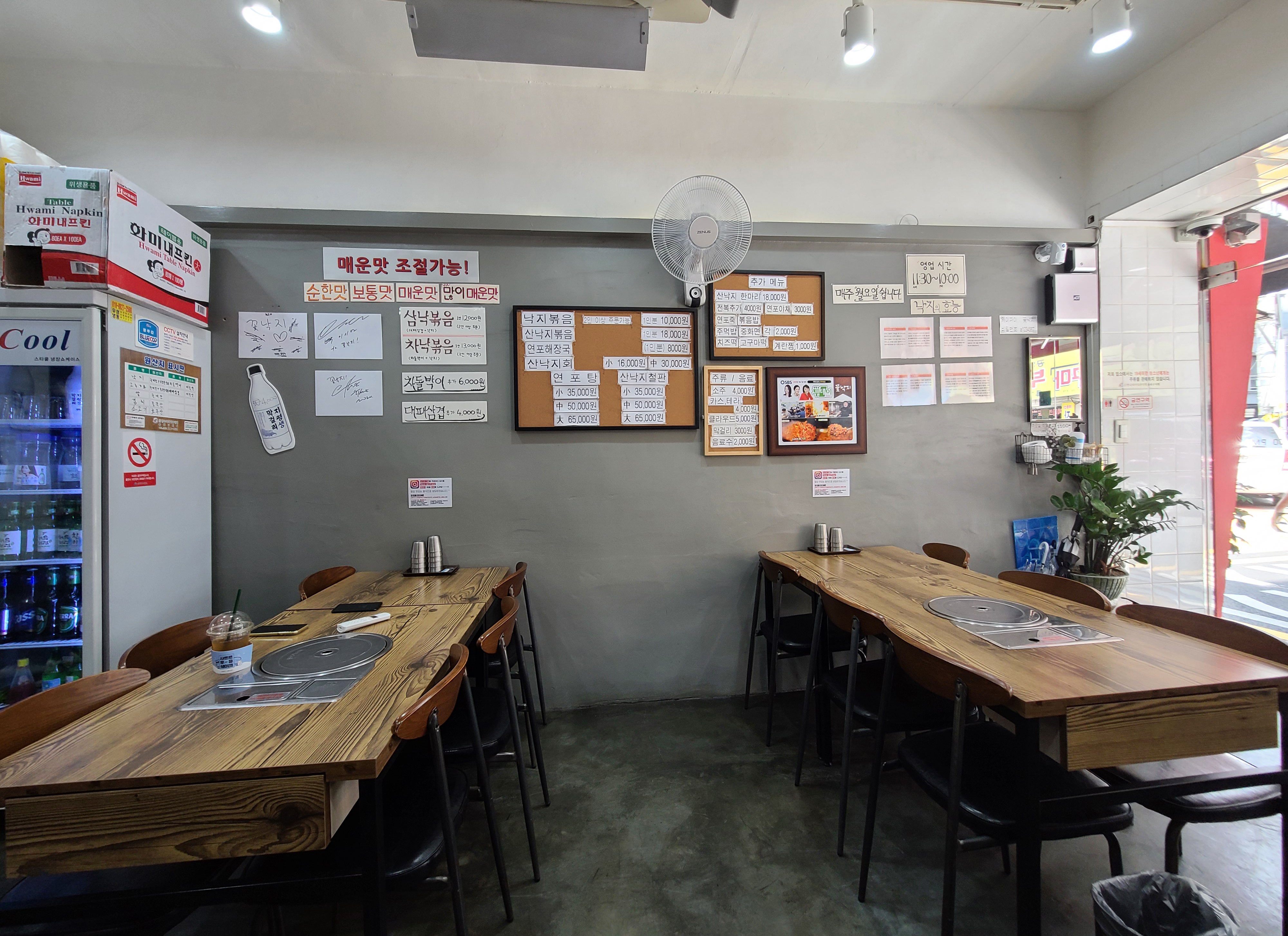 가게의 메뉴는 위와 같았습니다. 삼낙볶음, 차낙볶음, 차돌박이, 대패삼겹, 낙지볶음, 산낙지볶음, 연포해장국, 산낙지회, 연포탕, 산낙지철판 등 을 주문할 수 있었습니다. 저희는 차돌박이가 들어간 삼낙볶음 2인분을 주문했습니다.
