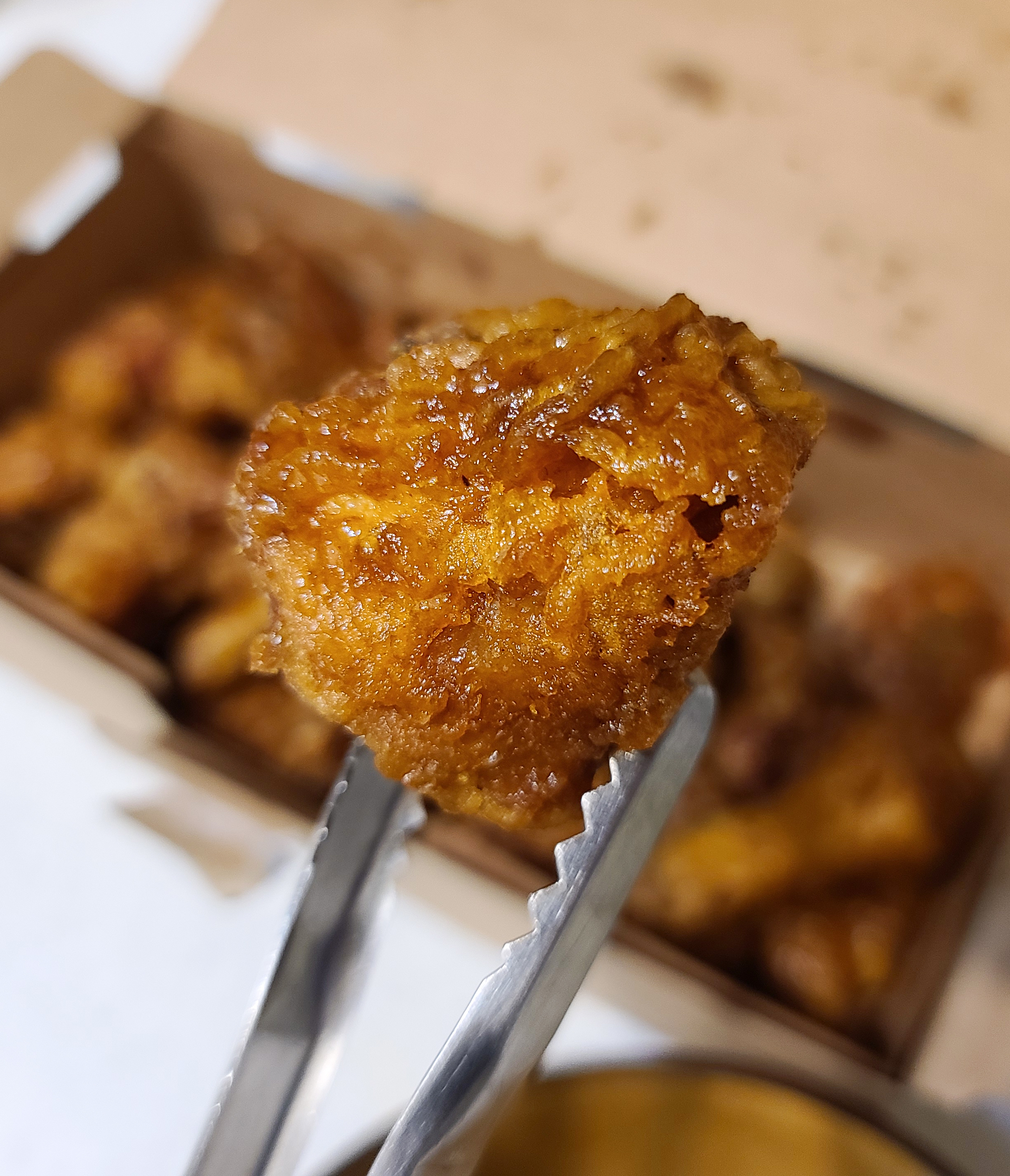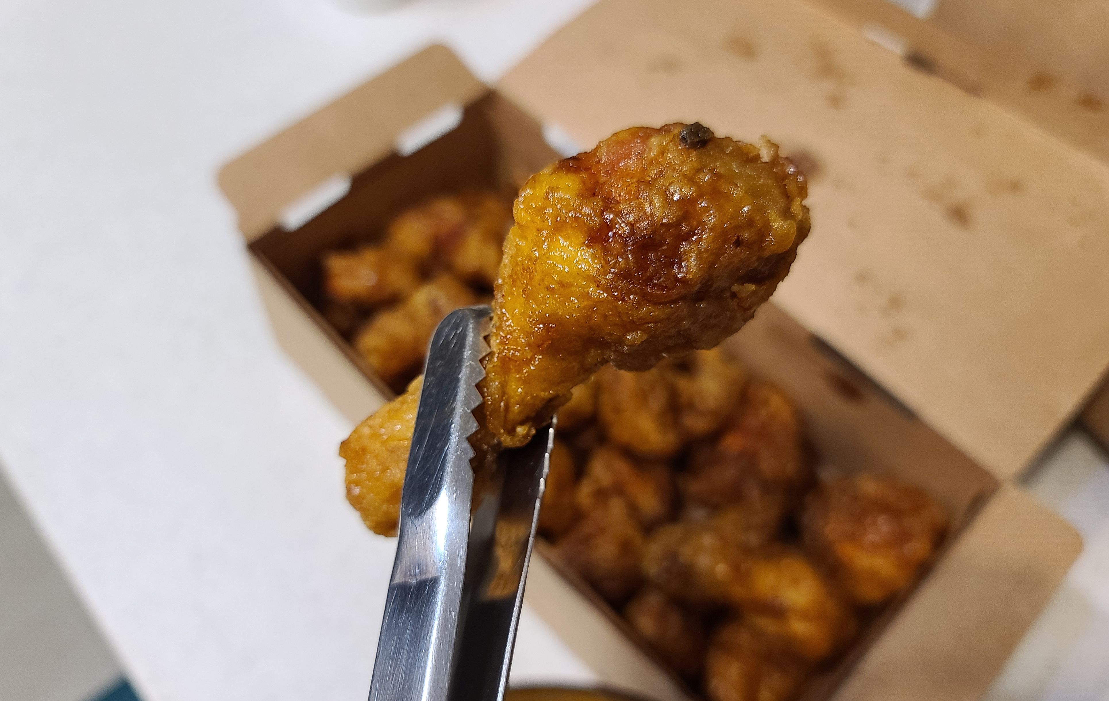 교촌치킨은 기본적으로 좀 짠맛이 강한 치킨입니다. 간장마늘 소스로 만든다고 하던데, 저 소스가 저는 좀 불호에 가깝더라고요. 짠 맛이 강하고 간장 냄새도 나서 몇 번 먹다 보면 질리더라고요. 그래서 그나마 덜 느끼려고 허니오리지날로 주문했는데, 허니오리지날도 간장 냄새가 나는 건 마찬가지더라고요.