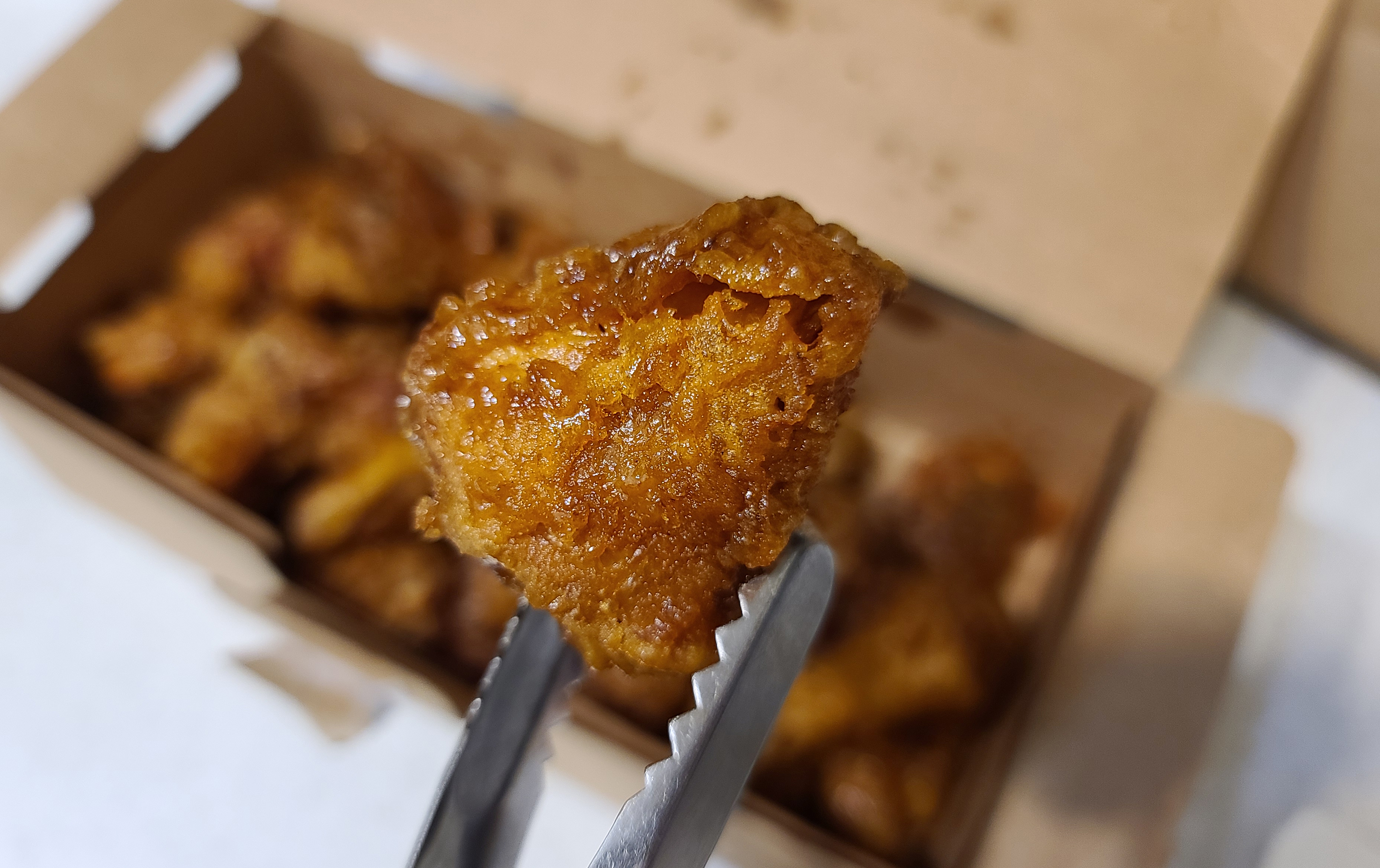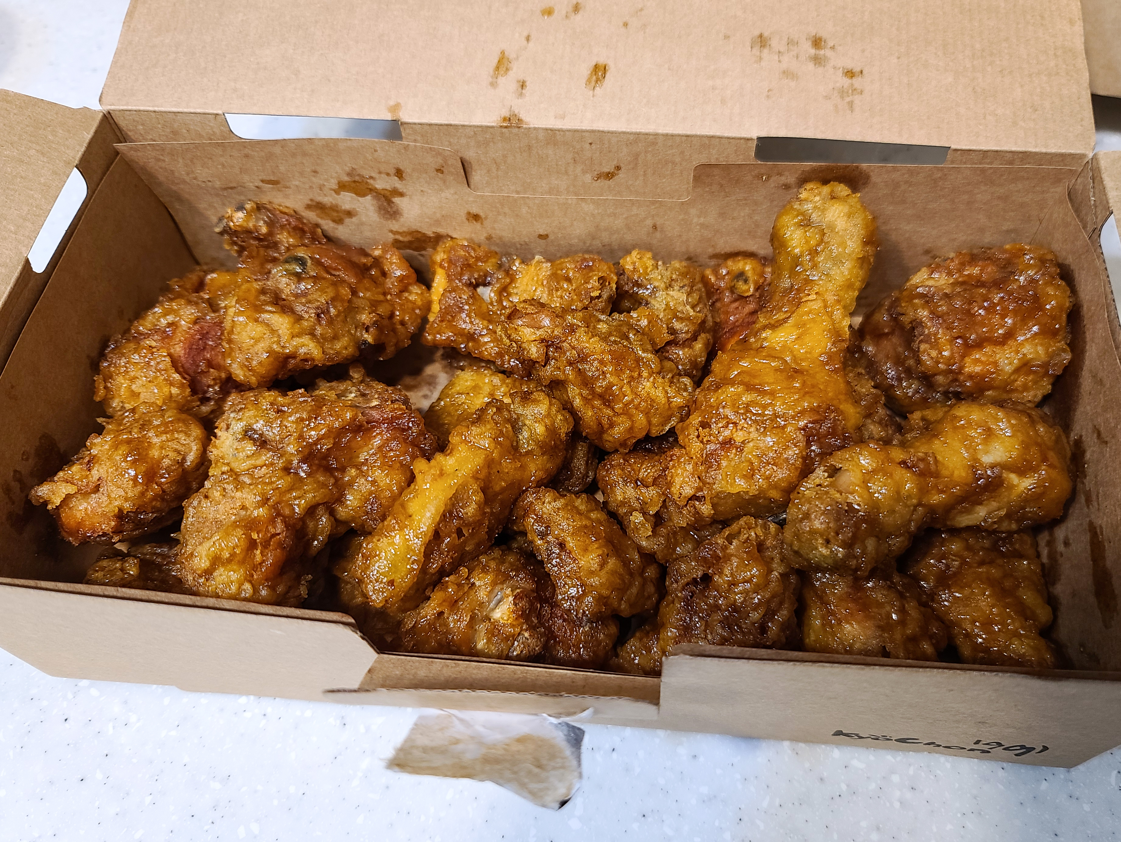 교촌치킨은 기본적으로 좀 짠맛이 강한 치킨입니다. 간장마늘 소스로 만든다고 하던데, 저 소스가 저는 좀 불호에 가깝더라고요. 짠 맛이 강하고 간장 냄새도 나서 몇 번 먹다 보면 질리더라고요. 그래서 그나마 덜 느끼려고 허니오리지날로 주문했는데, 허니오리지날도 간장 냄새가 나는 건 마찬가지더라고요.