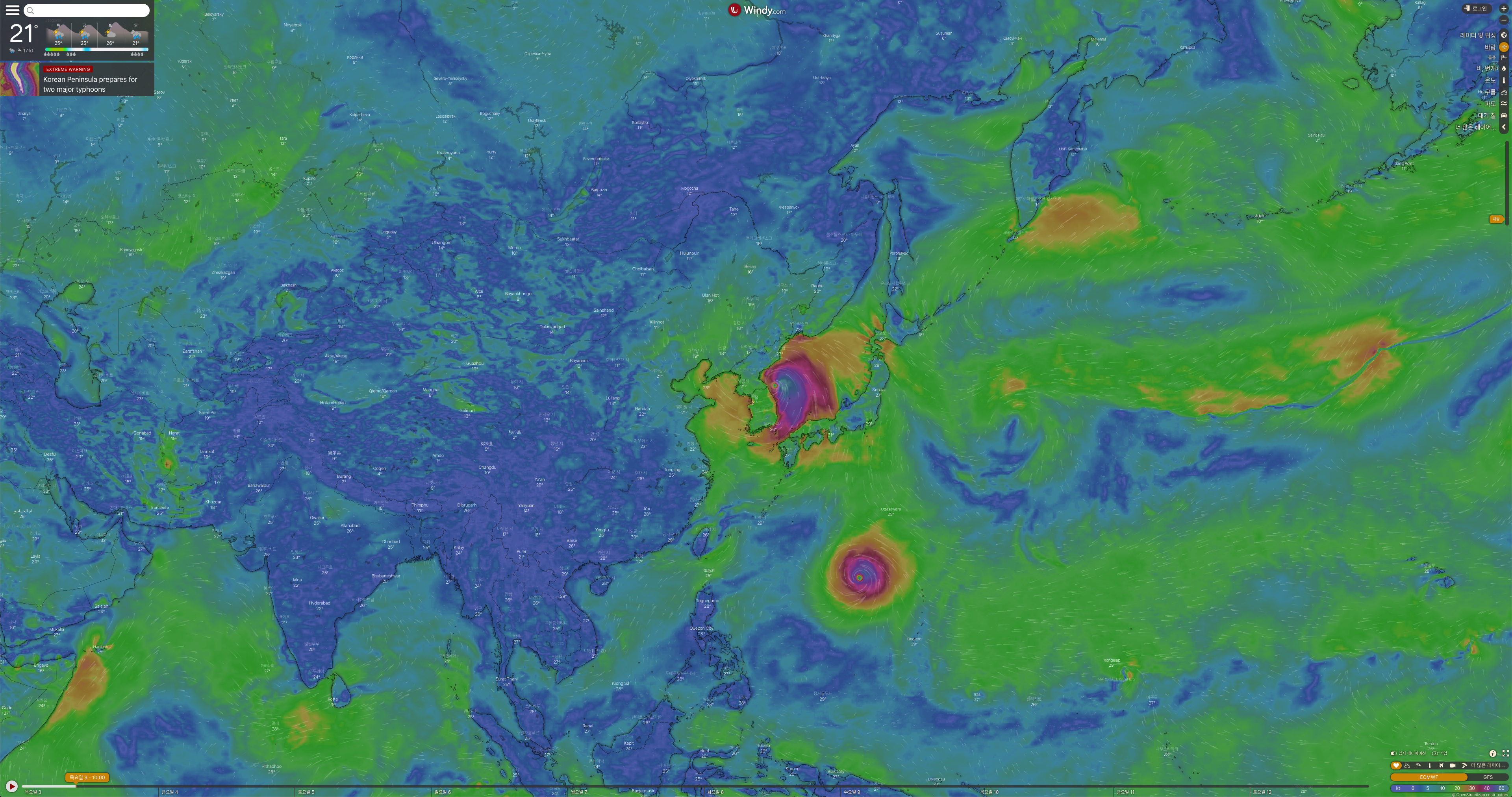 한반도에 <바비>, <마이삭>, <하이선> 까지 한반도에 영향을 주었거나, 피해를 주고 있고, 앞으로 다가올 태풍의 이동경로 및 크기를 직관적으로 보여주는 사이트가 있어서 여러분에게 소개도 해드리고, 저도 마찬가지로 정보를 얻고자 실시간 태풍의 이동경로를 보여주는 사이트 <윈디(Windy)>를 소개해드리려 합니다.