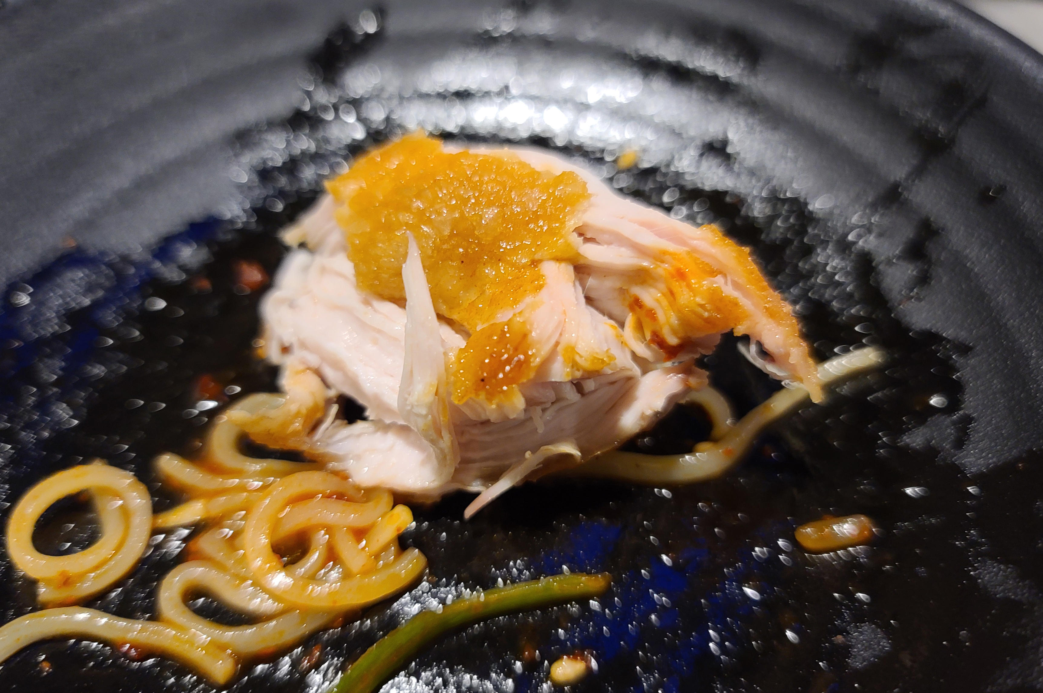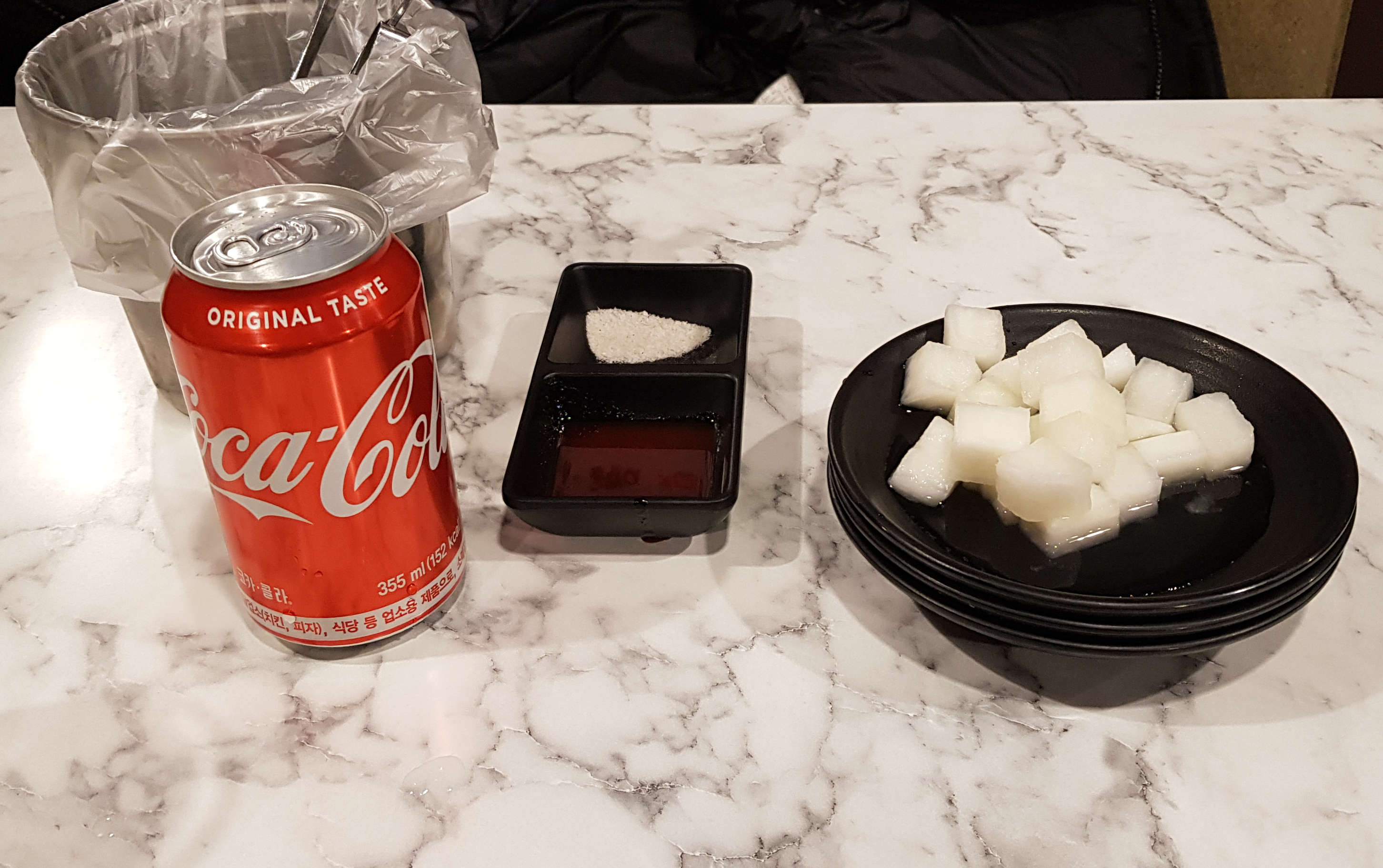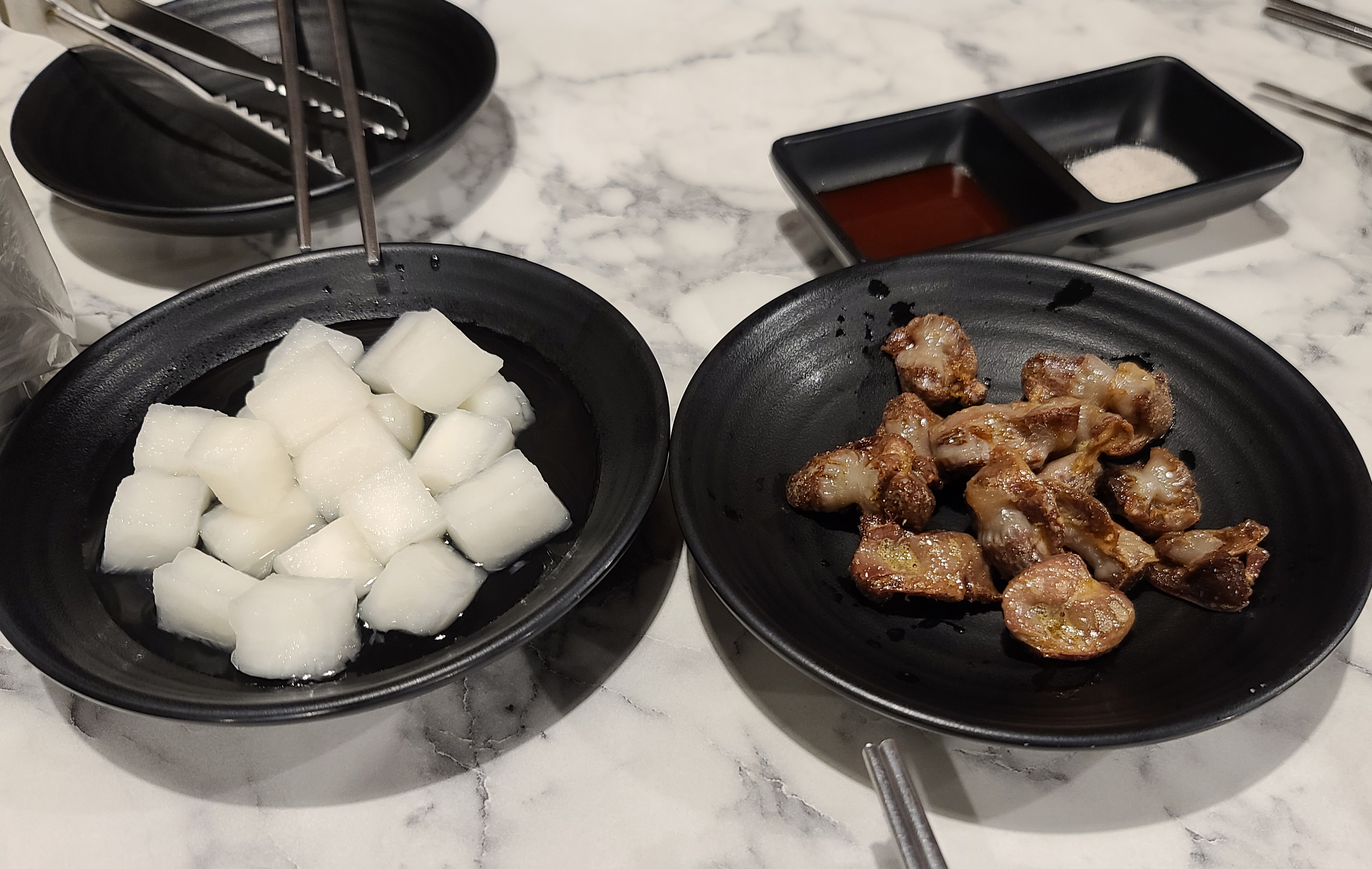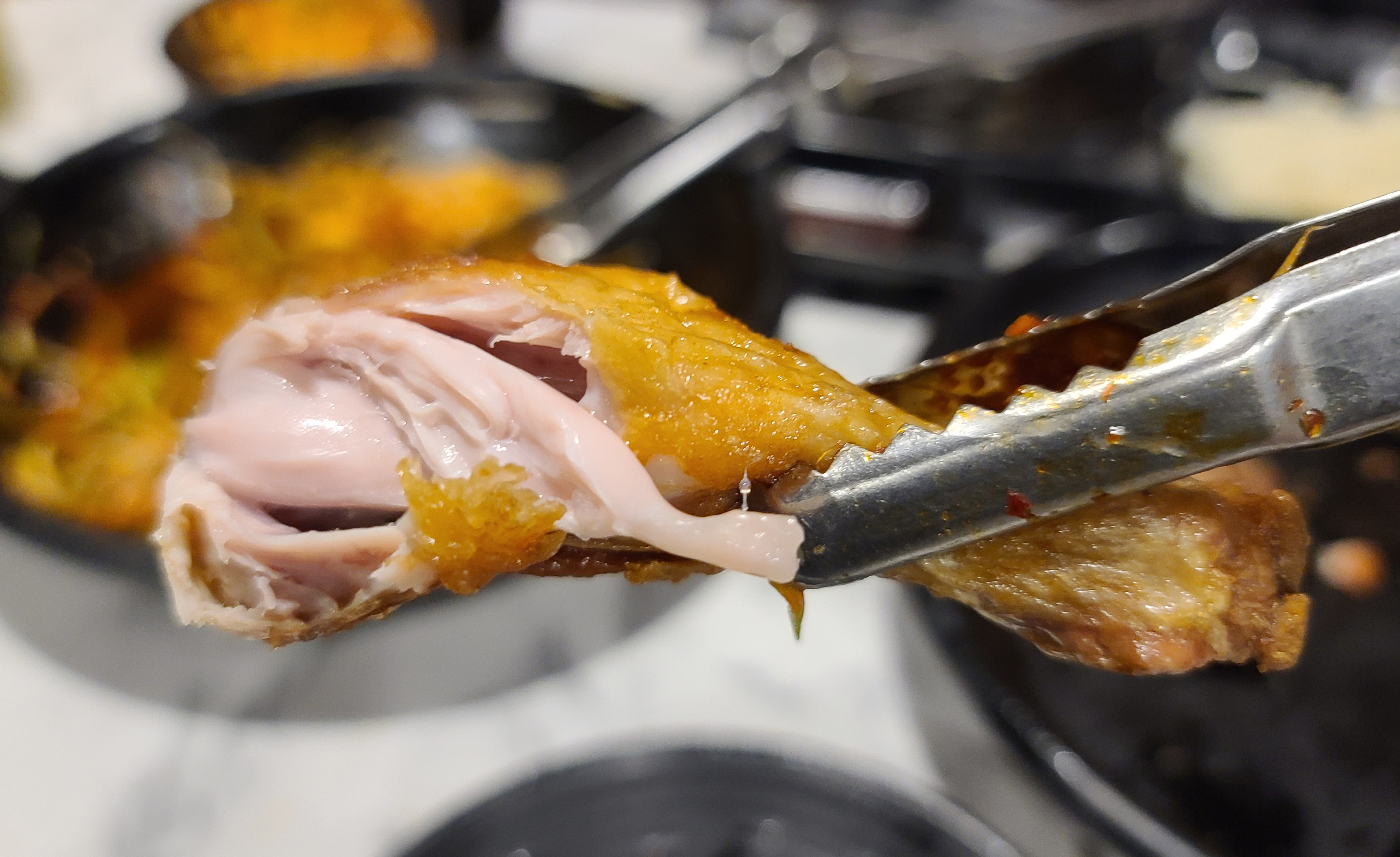 다가마통닭에서 치킨을 주문하면, 기본적으로 가게에서 직접 담금 치킨무와 닭똥집, 매운 소스와 소금이 제공됩니다. 닭똥집을 기름에 튀겨 주시는데, 이게 은근히 별미라 자꾸만 손이 가게 되는 메뉴인 것 같습니다. 추가로 6,000원에 주문할 수도 있습니다.