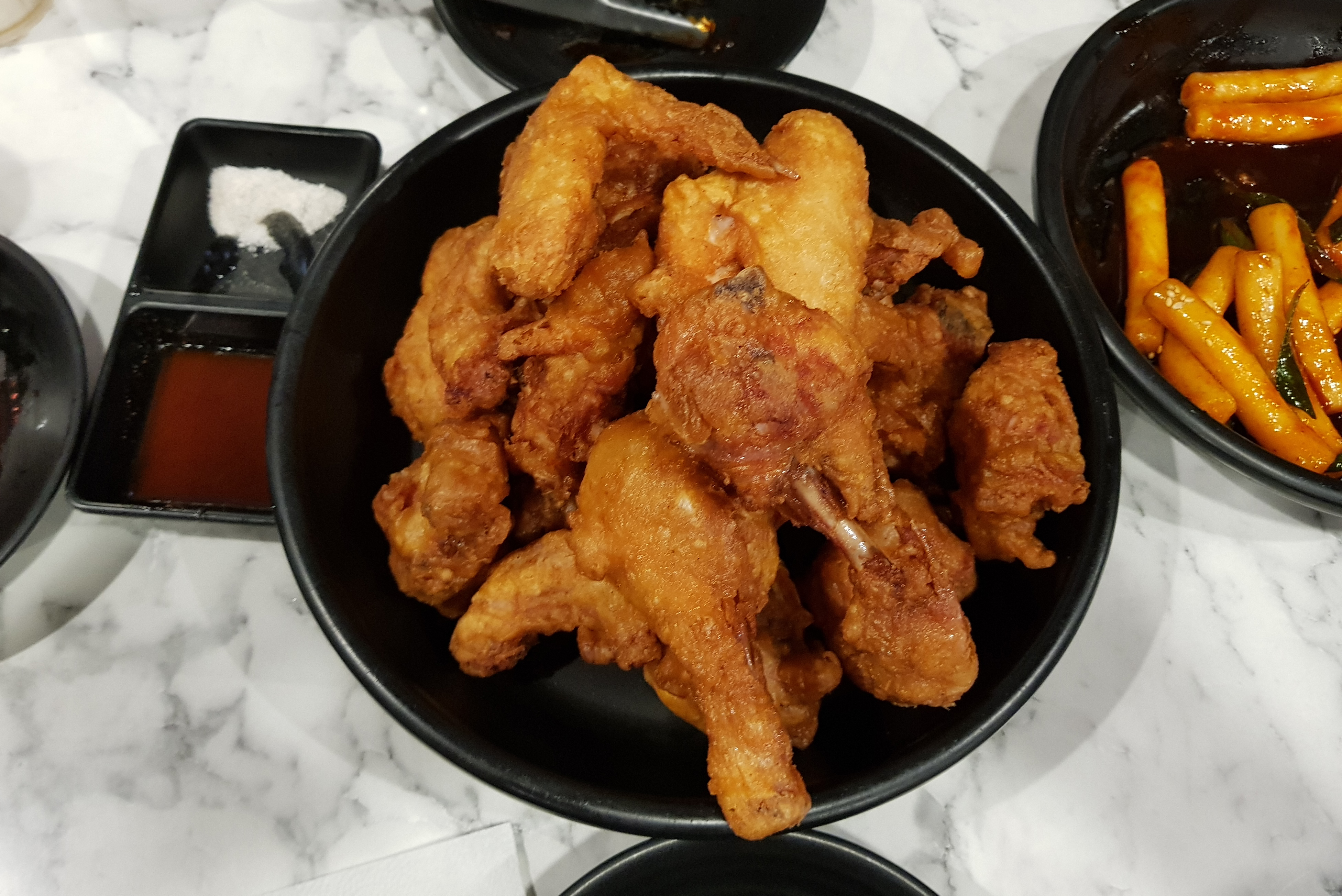 오늘 소개해드릴 메뉴는 후라이드 치킨, 기름떡볶이, 옛날통닭, 골뱅이무침 입니다. 물론 직접 돈 주고 사 먹은 메뉴인데, 워낙 여러 날에 걸쳐서 자주 방문하는 가게이다 보니, 매번 갈 때마다 포스팅할 수 없어서 모아뒀다가 한 번에 소개하는 점 양해 부탁드립니다.