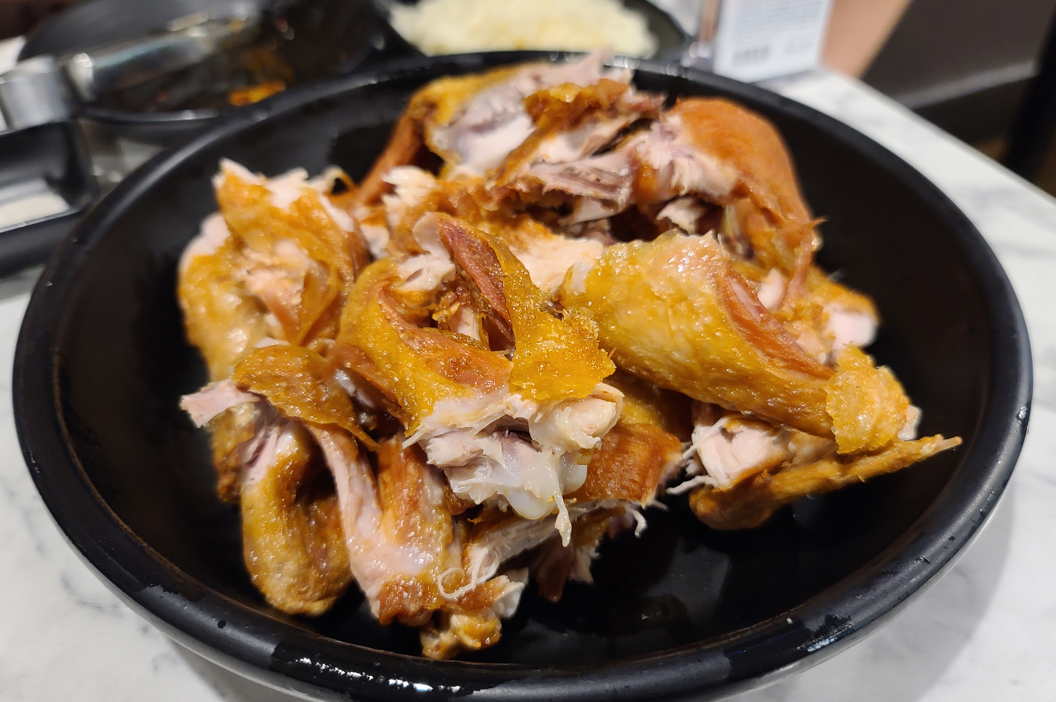 - 옛날통닭은 앞서 설명해드린 후라이드 치킨과 달리, 닭 한 마리를 튀김옷을 묻혀 통째로 튀겨낸 치킨입니다. 가게에서 먹으면 직접 손으로 먹기 좋게 찢어서 주시는데, 저는 개인적으로 이게 더 먹기 편하고 좋더라고요. 특히 미리 손질된 닭으로 주는 게 아니라, 나중에 직접 잘라서 주시니 더 맛있는 것 같더라고요. 다가마통닭 이용하시는 분은 꼭 드셔 보세요. 이 집만의 별미입니다.