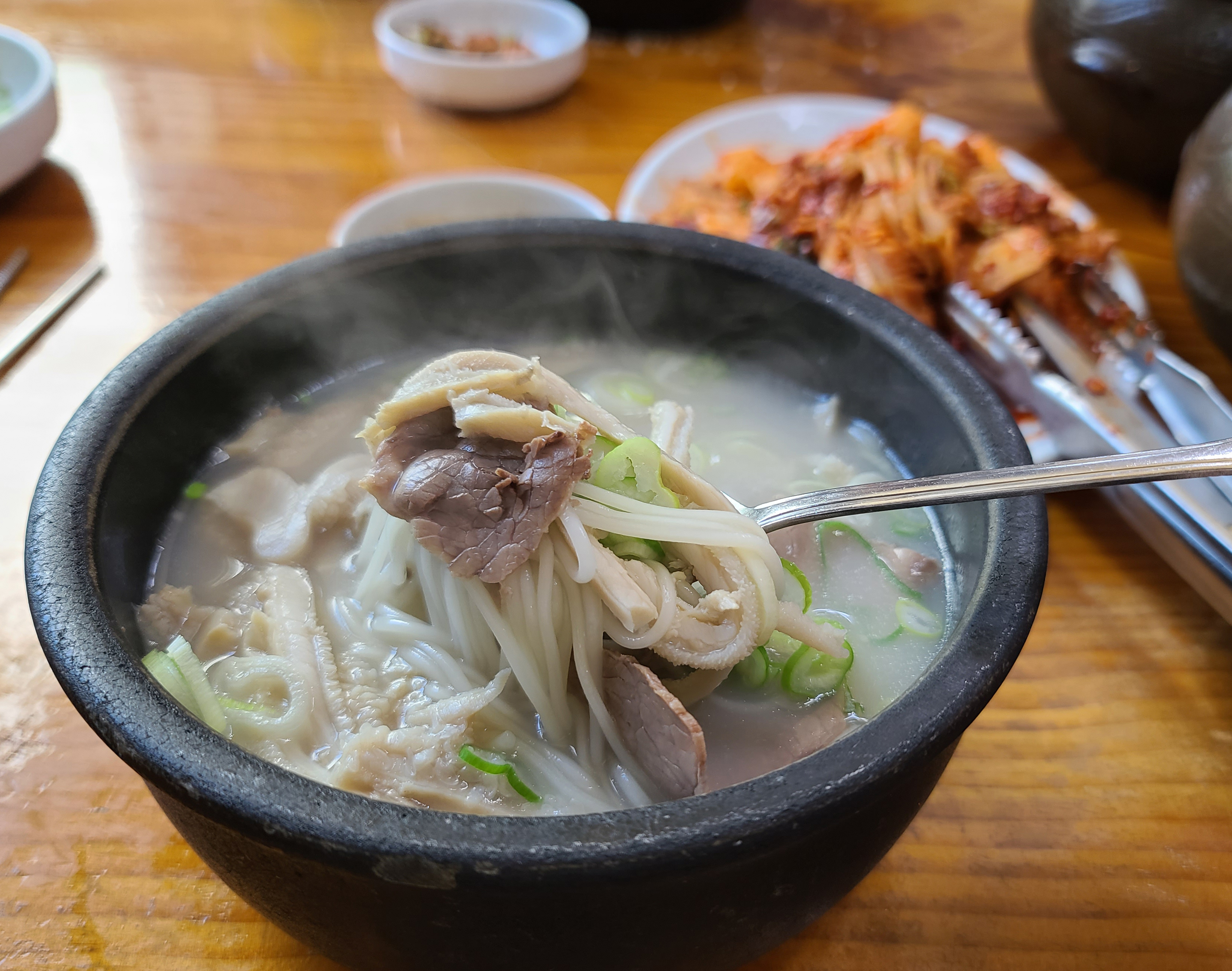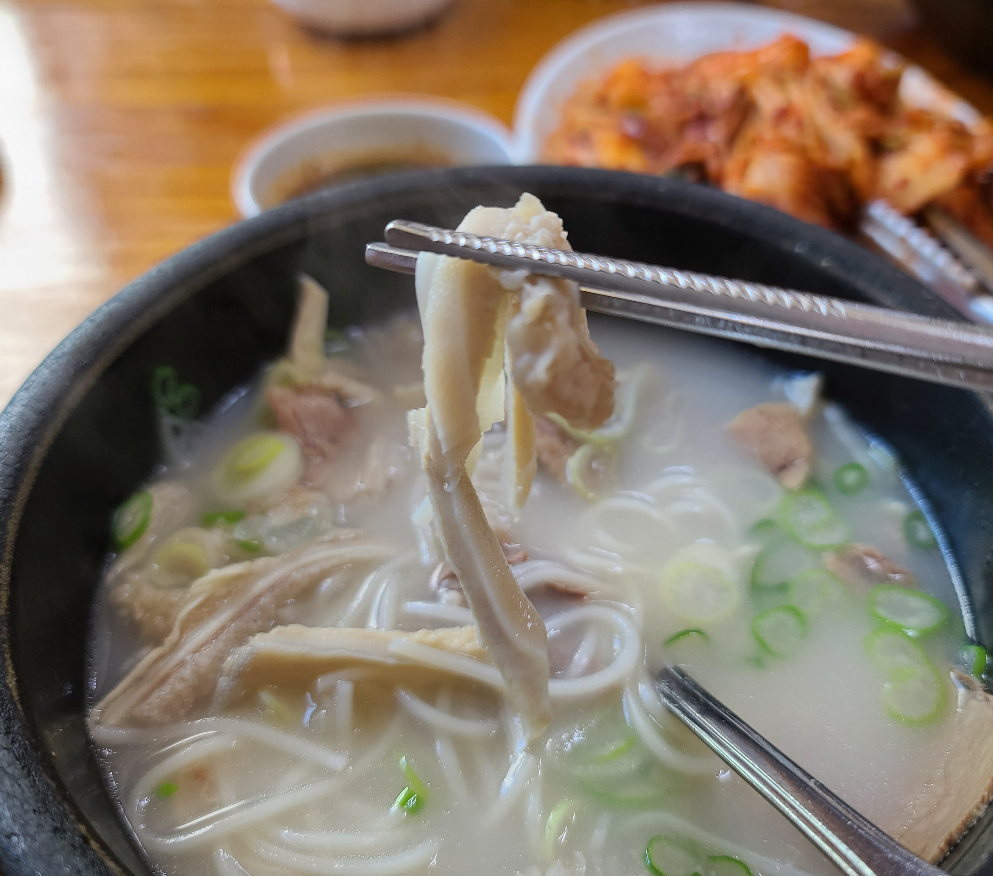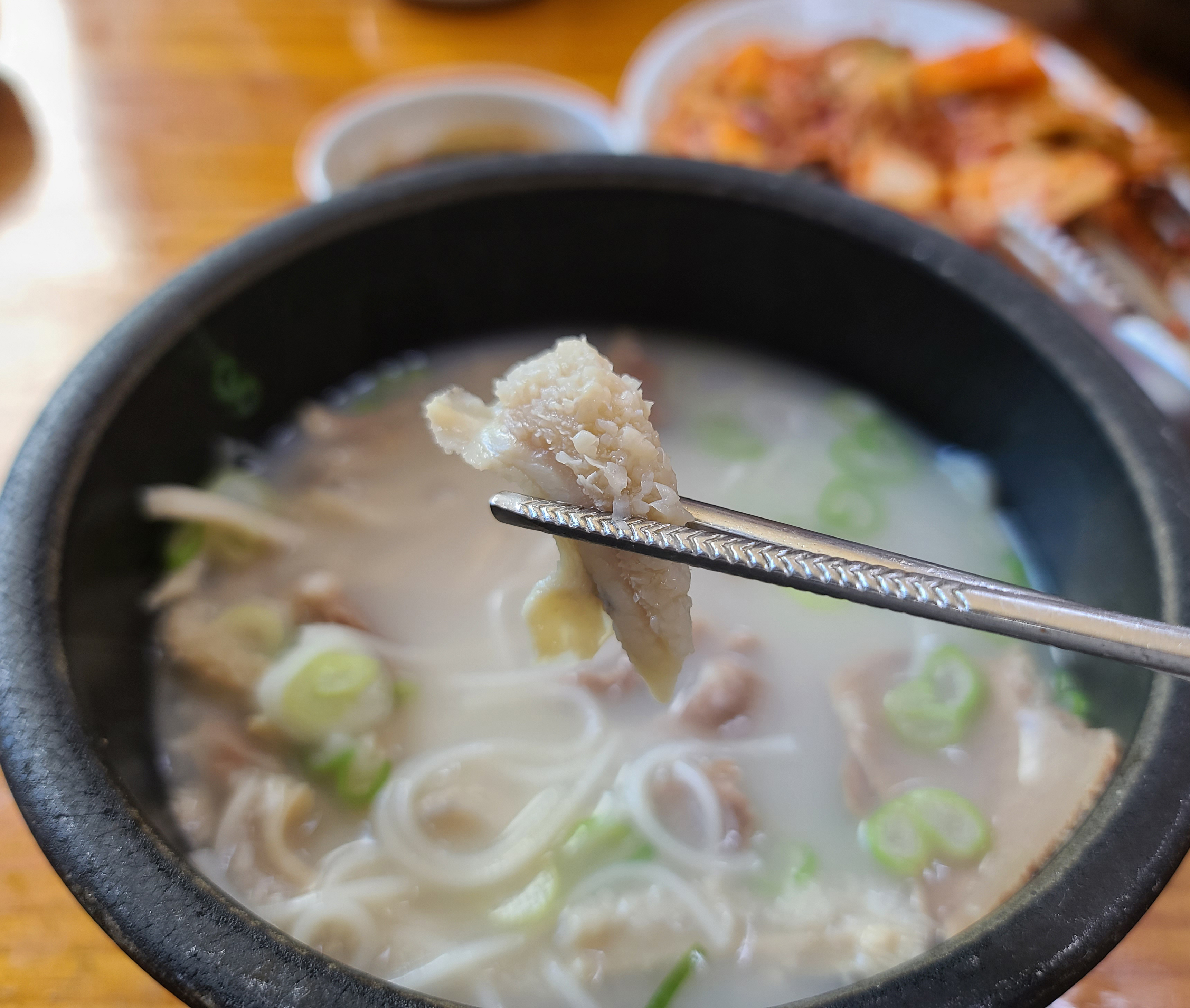 제가 주문한 본가탕은 소 양과 양지고기가 많이 들어간 설렁탕입니다. 소 양이 쫄깃쫄깃 식감이 좋아서, 저는 본가설렁탕에 방문하면 꼭 본가탕으로 주문하여 먹곤 합니다. 설렁탕 안에 소면도 들어가 있었습니다.