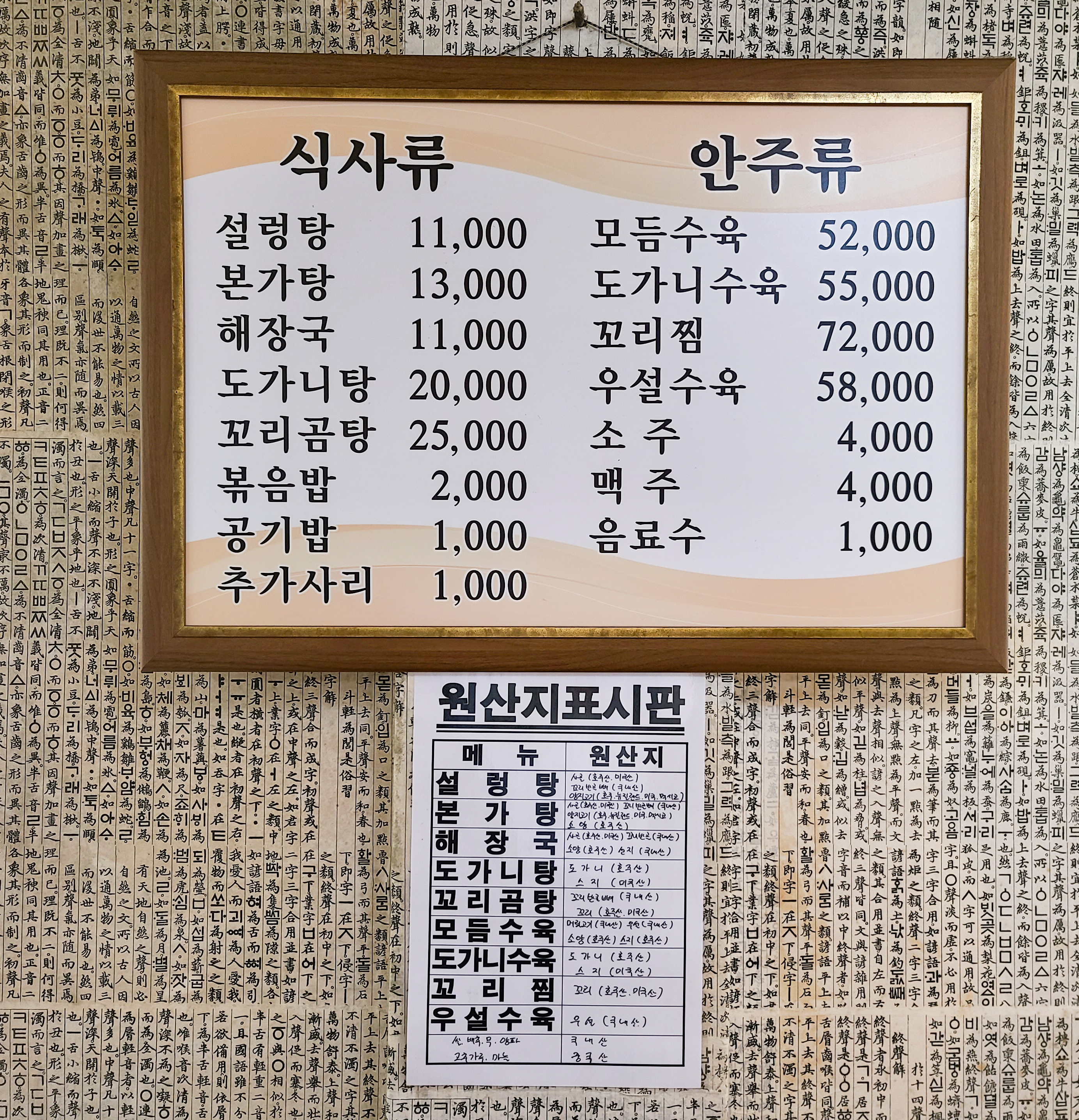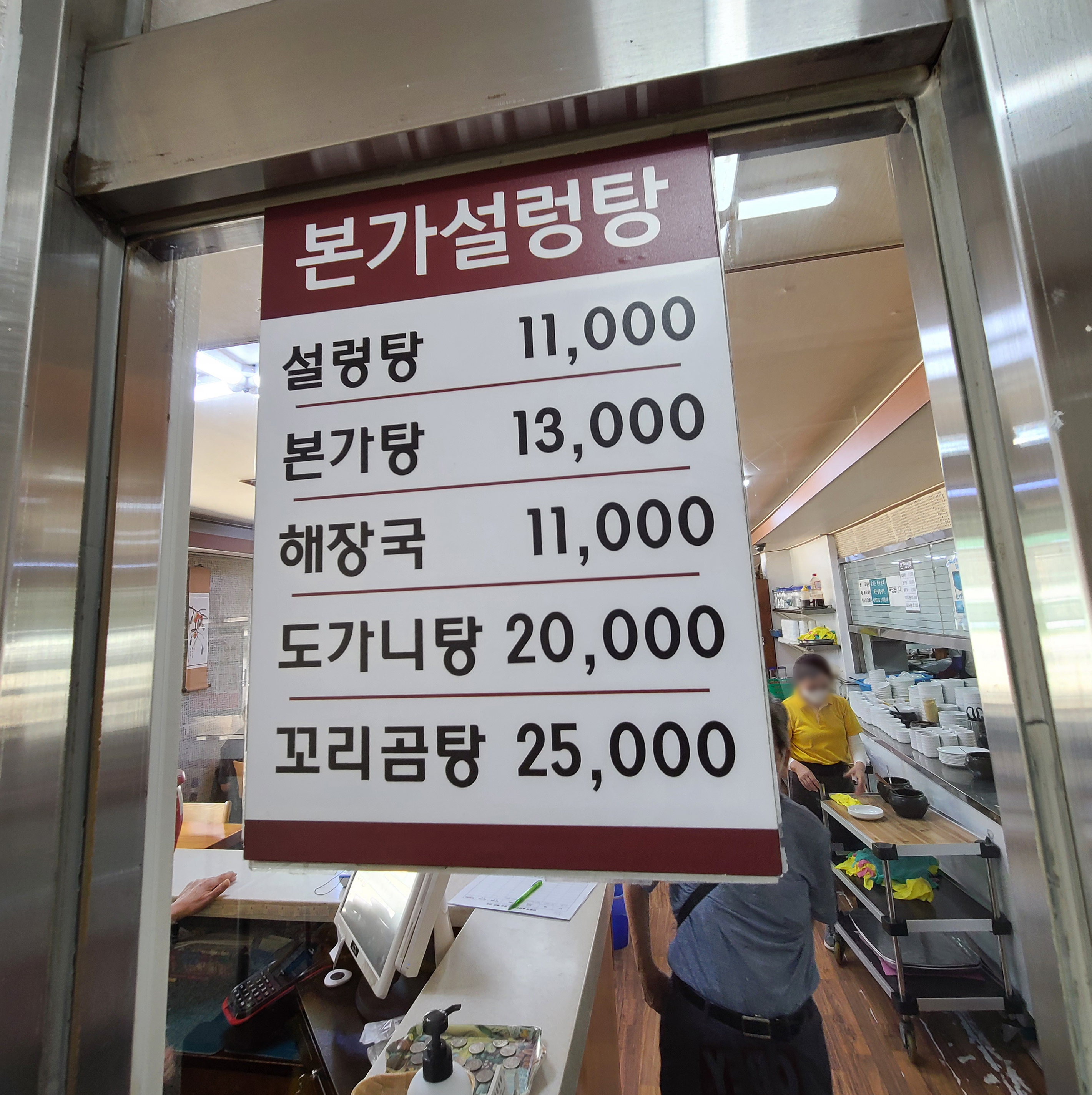 본가 설렁탕의 메뉴는 위와 같습니다. 설렁탕, 본가탕, 해장국, 도가니탕, 꼬리곰탕, 볶음밥, 모듬수육, 도가니수육, 꼬리찜, 우설수육 등 이 있었습니다. 저희는 설렁탕과 본가탕을 주문하였습니다.