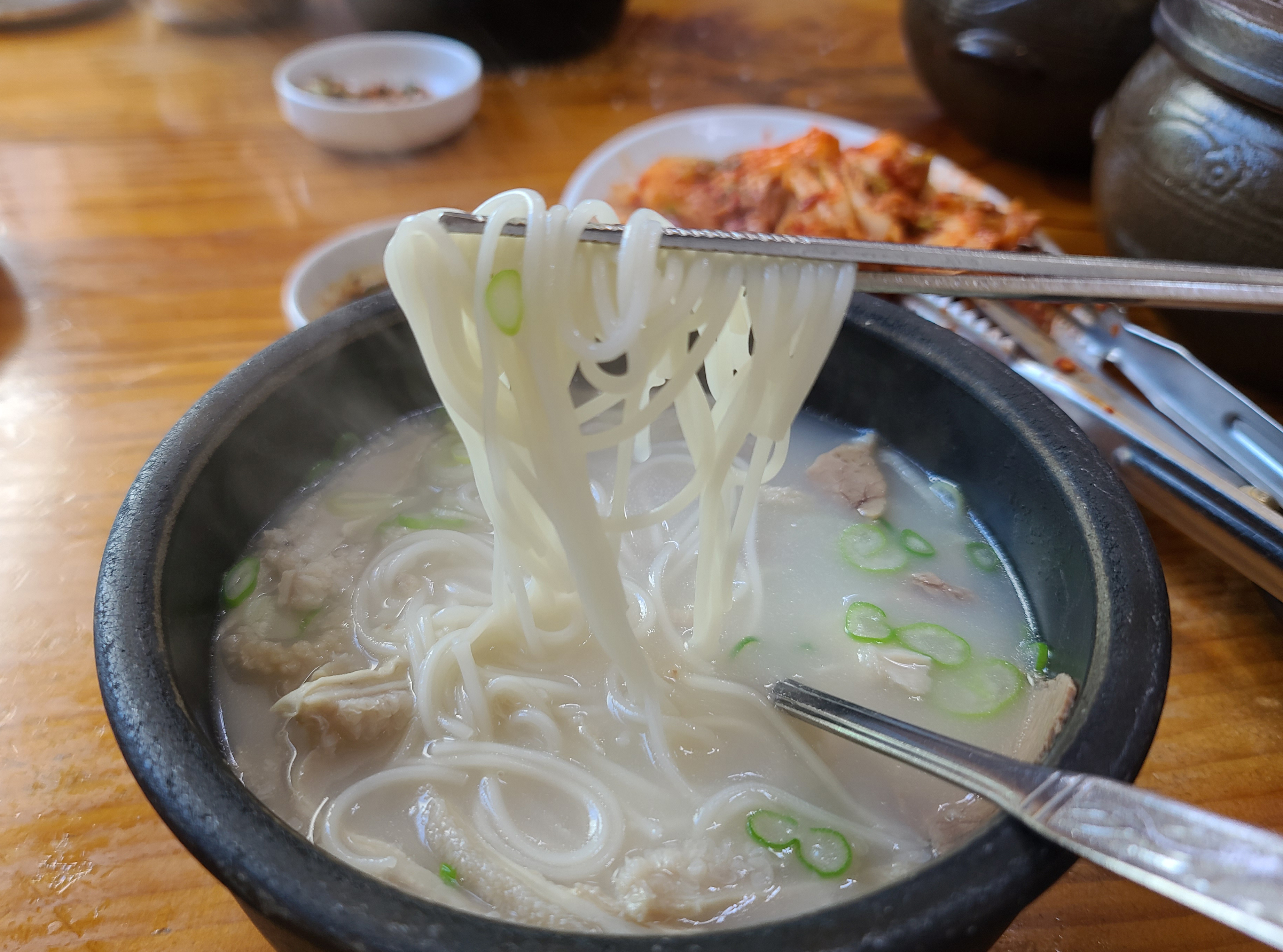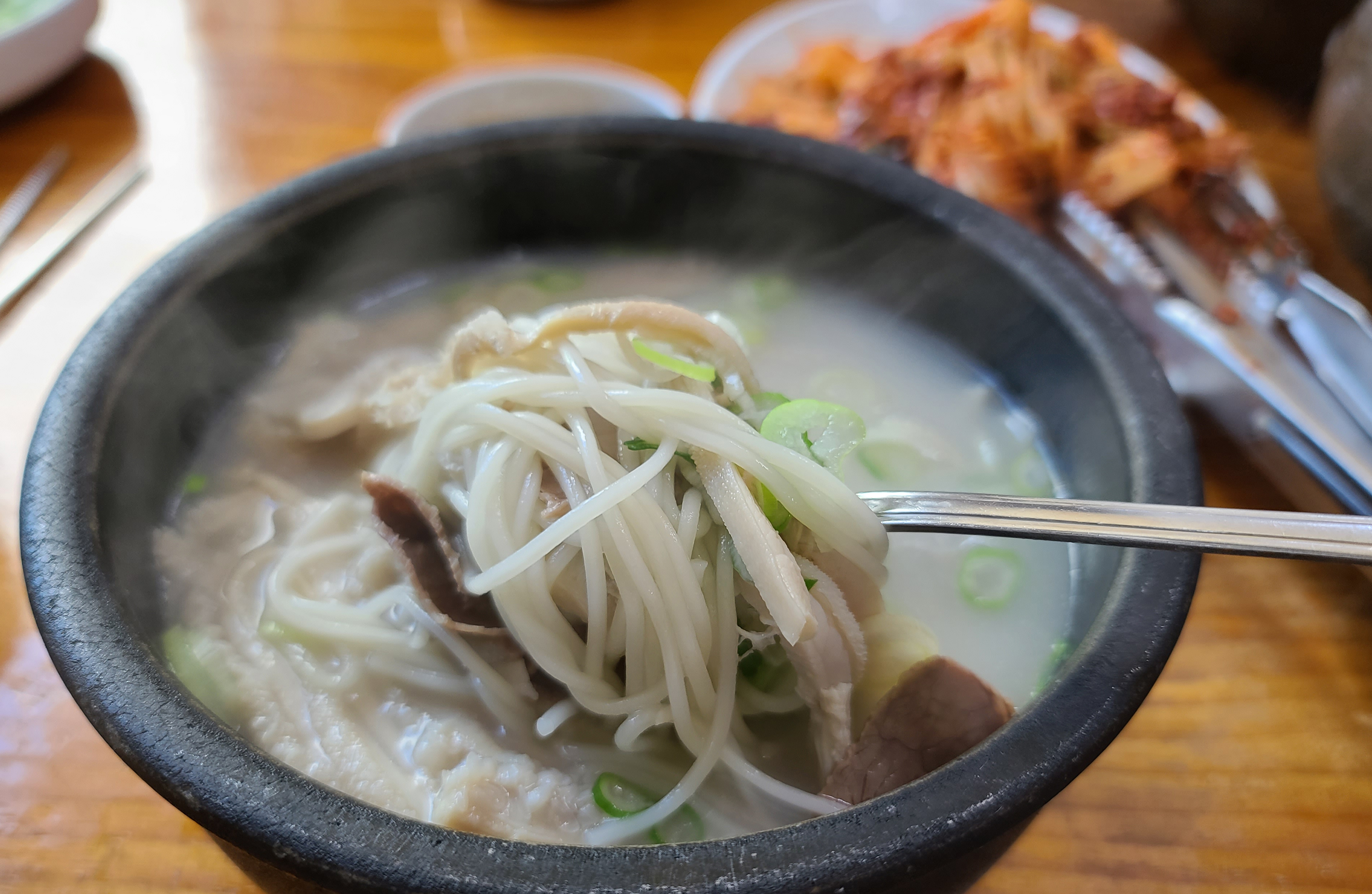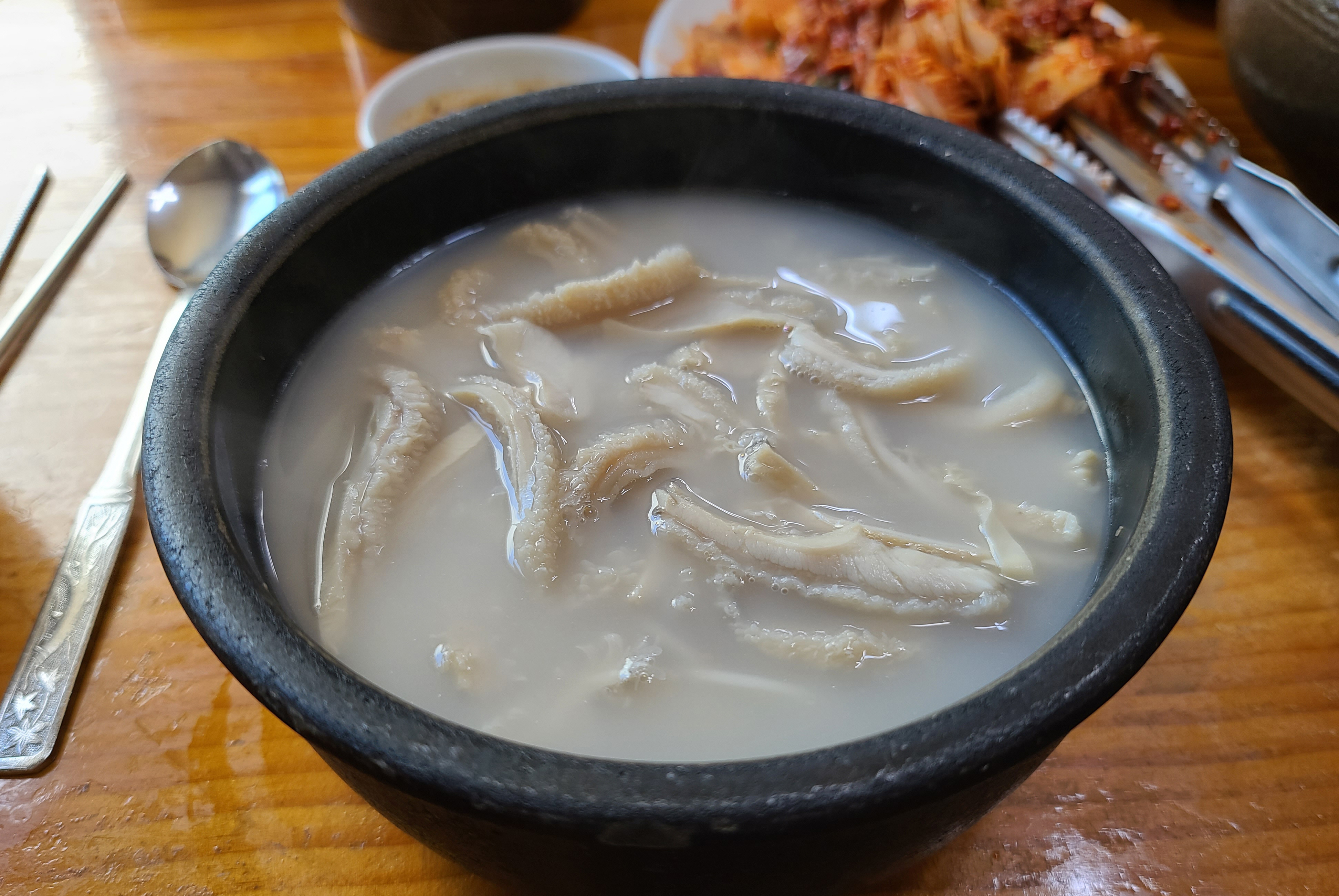제가 주문한 본가탕은 소 양과 양지고기가 많이 들어간 설렁탕입니다. 소 양이 쫄깃쫄깃 식감이 좋아서, 저는 본가설렁탕에 방문하면 꼭 본가탕으로 주문하여 먹곤 합니다. 설렁탕 안에 소면도 들어가 있었습니다.