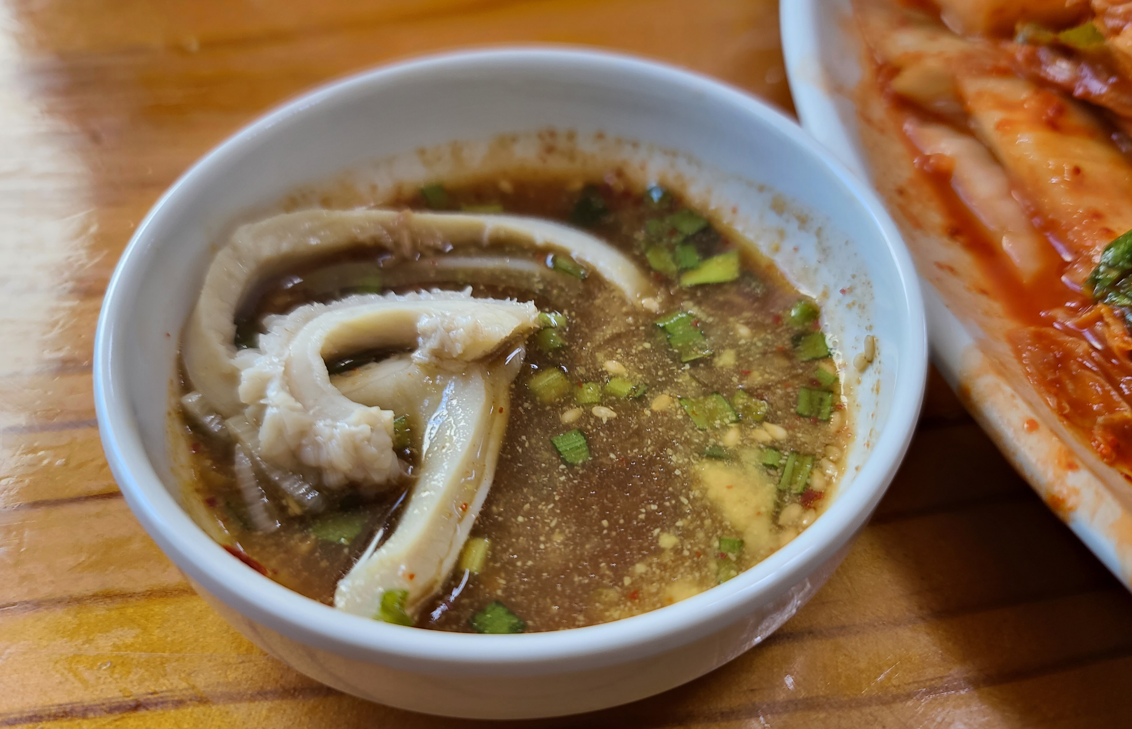 본가탕의 소 양은 이렇게 겨자를 푼 간장 양념장에 찍어 먹으면 되었죠. 쫄깃쫄깃한 소 양을 새초롬한 양념장과 곁들이니 자꾸만 당기는 그런 매력이 있습니다. 제가 오래전에 이용했을 때에 비하면 가격이 많이 올랐지만, 그래도 맛있어서 인근의 주민들이나 소문을 듣고 많이들 방문하시는 것 같습니다.