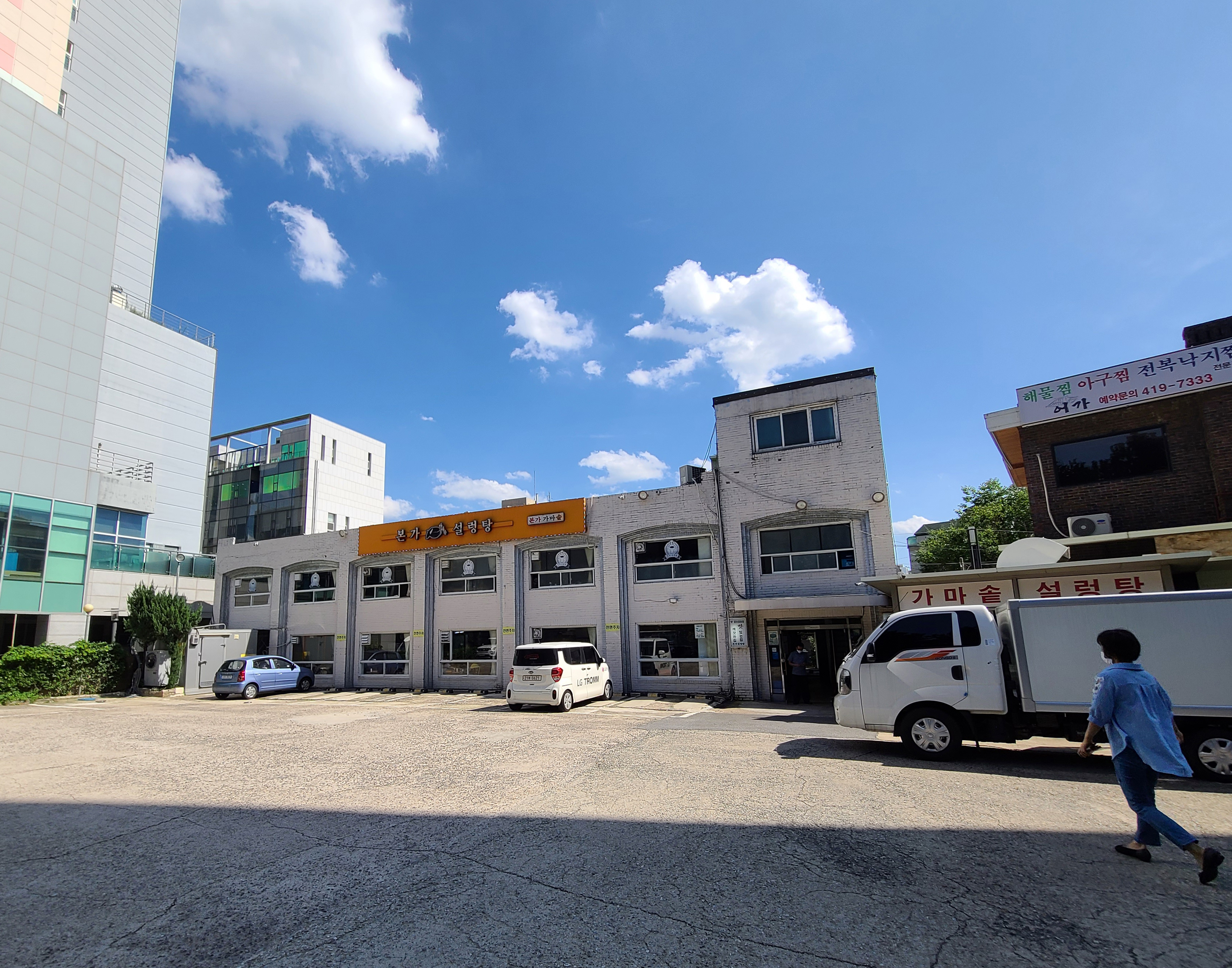 석촌동 본가설렁탕 가게는 널찍한 주차장이 마련되어있어 주차가 용이했으며, 영업시간은 평일 08:00~22:00 까지, 주말 및 공휴일은 07:30~ 22:00 까지 영업 중인 가게였습니다. 저희는 주차를 마친 뒤 가게로 향했습니다.