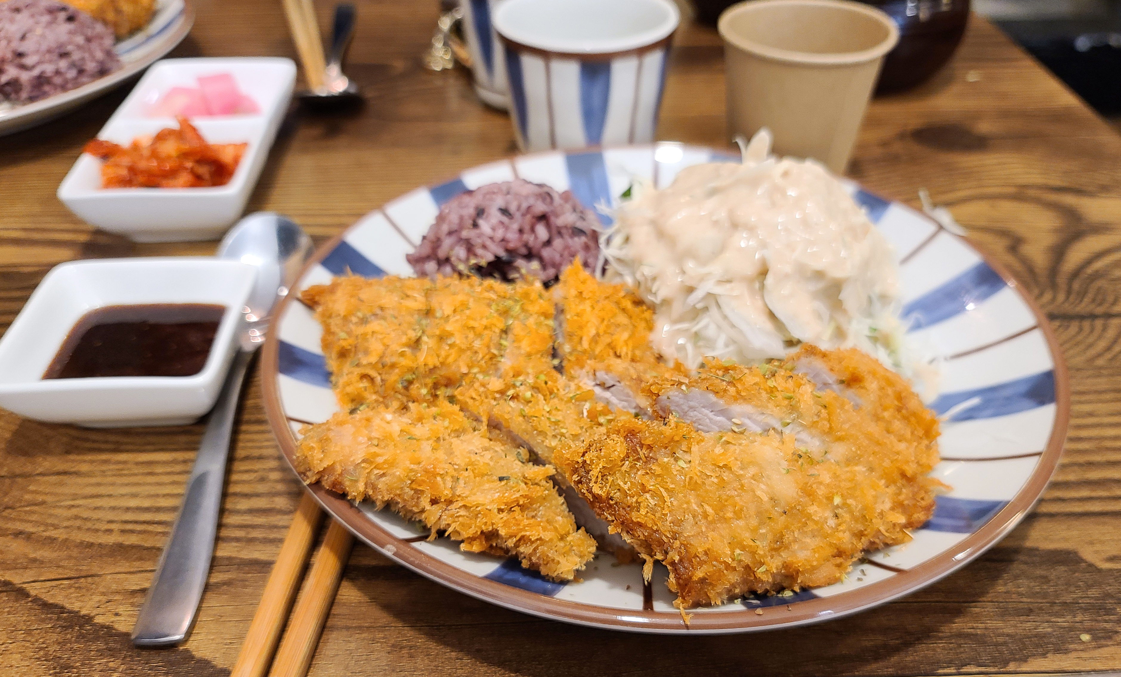 이전에 어느 돈가스집에 갔을땐 돈까스 두께도 너무 얇고, 튀겨진 정도도 과하게 튀겨져 딱딱한 느낌을 받은 곳이 있었거든요. 그런데 이 곳은 그런 불만 하나도 없는 가게였습니다. 치킨까스와 바꿔서도 먹었는데, 치킨까스는 닭가슴살의 식감을 잘 살려 먹기 좋았습니다. 이 날은 각자 계산을 하여 돈까스 곱빼기 가격인 10,000원을 지불하였습니다. 관심 있으신 분은 이용해보시는 것을 추천드리며, 교통편이 좋은 편은 아니지만, 이용해볼 만한 가치는 있다고 생각합니다.
