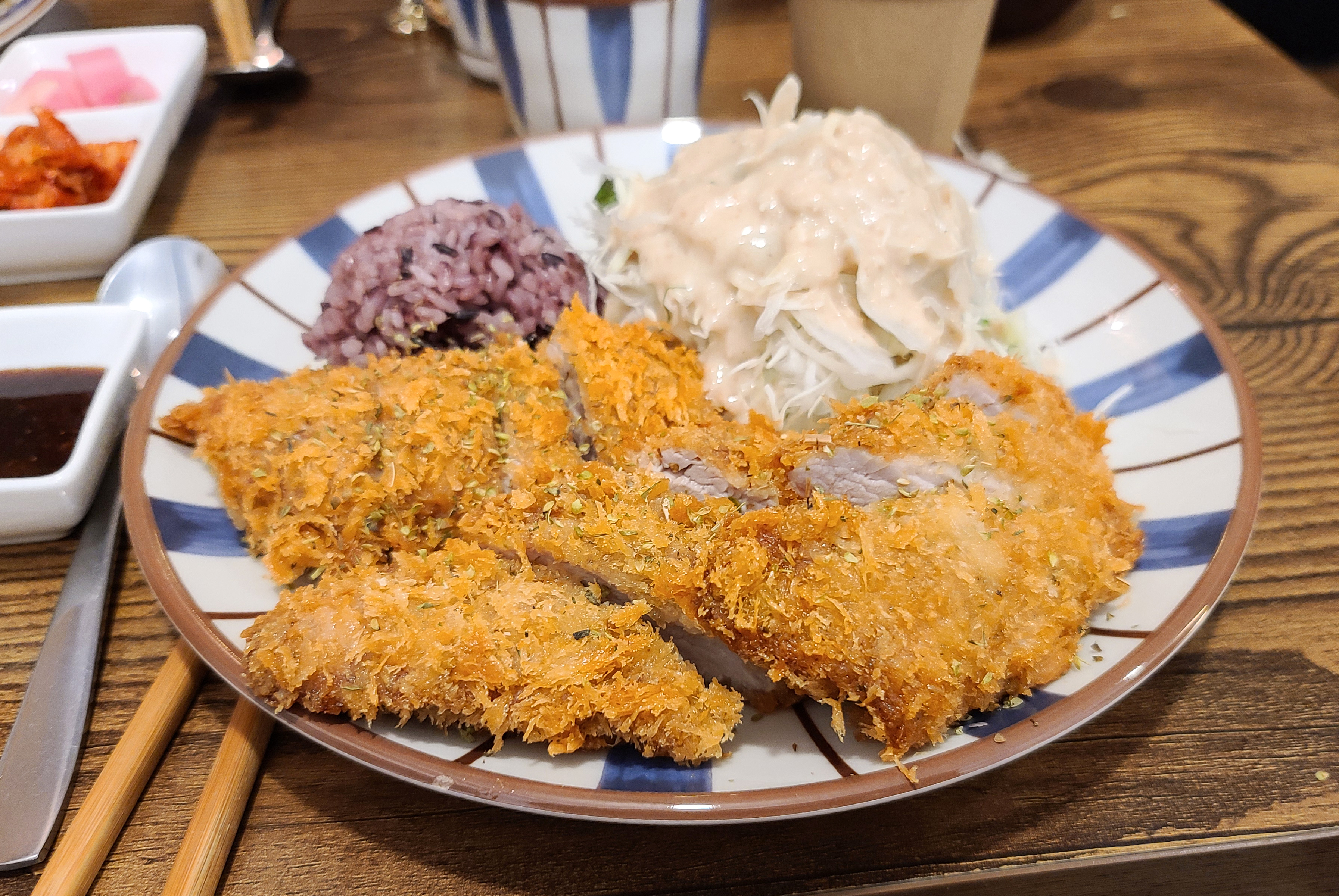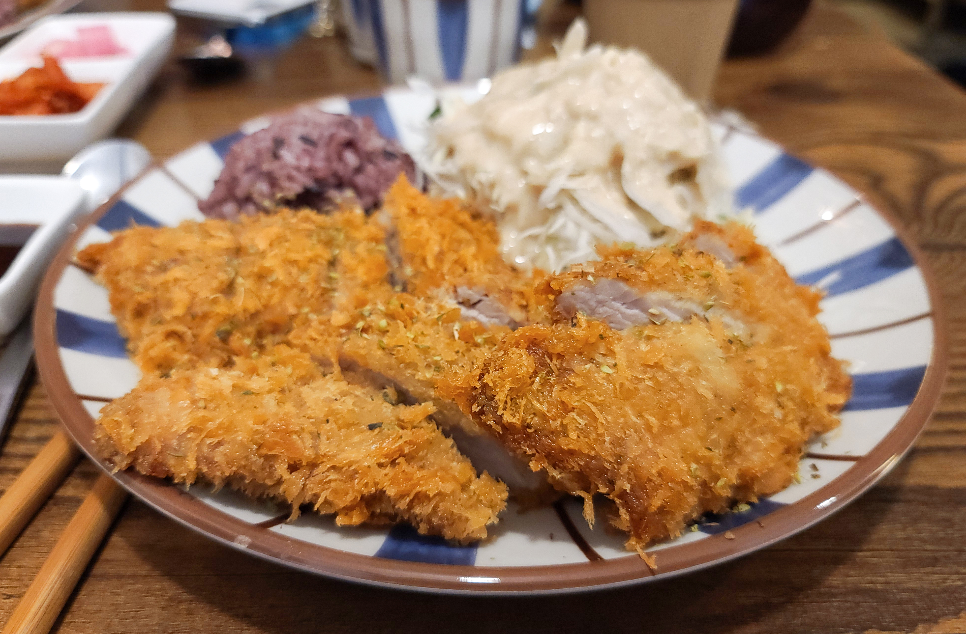 이전에 어느 돈가스집에 갔을땐 돈까스 두께도 너무 얇고, 튀겨진 정도도 과하게 튀겨져 딱딱한 느낌을 받은 곳이 있었거든요. 그런데 이 곳은 그런 불만 하나도 없는 가게였습니다. 치킨까스와 바꿔서도 먹었는데, 치킨까스는 닭가슴살의 식감을 잘 살려 먹기 좋았습니다. 이 날은 각자 계산을 하여 돈까스 곱빼기 가격인 10,000원을 지불하였습니다. 관심 있으신 분은 이용해보시는 것을 추천드리며, 교통편이 좋은 편은 아니지만, 이용해볼 만한 가치는 있다고 생각합니다.