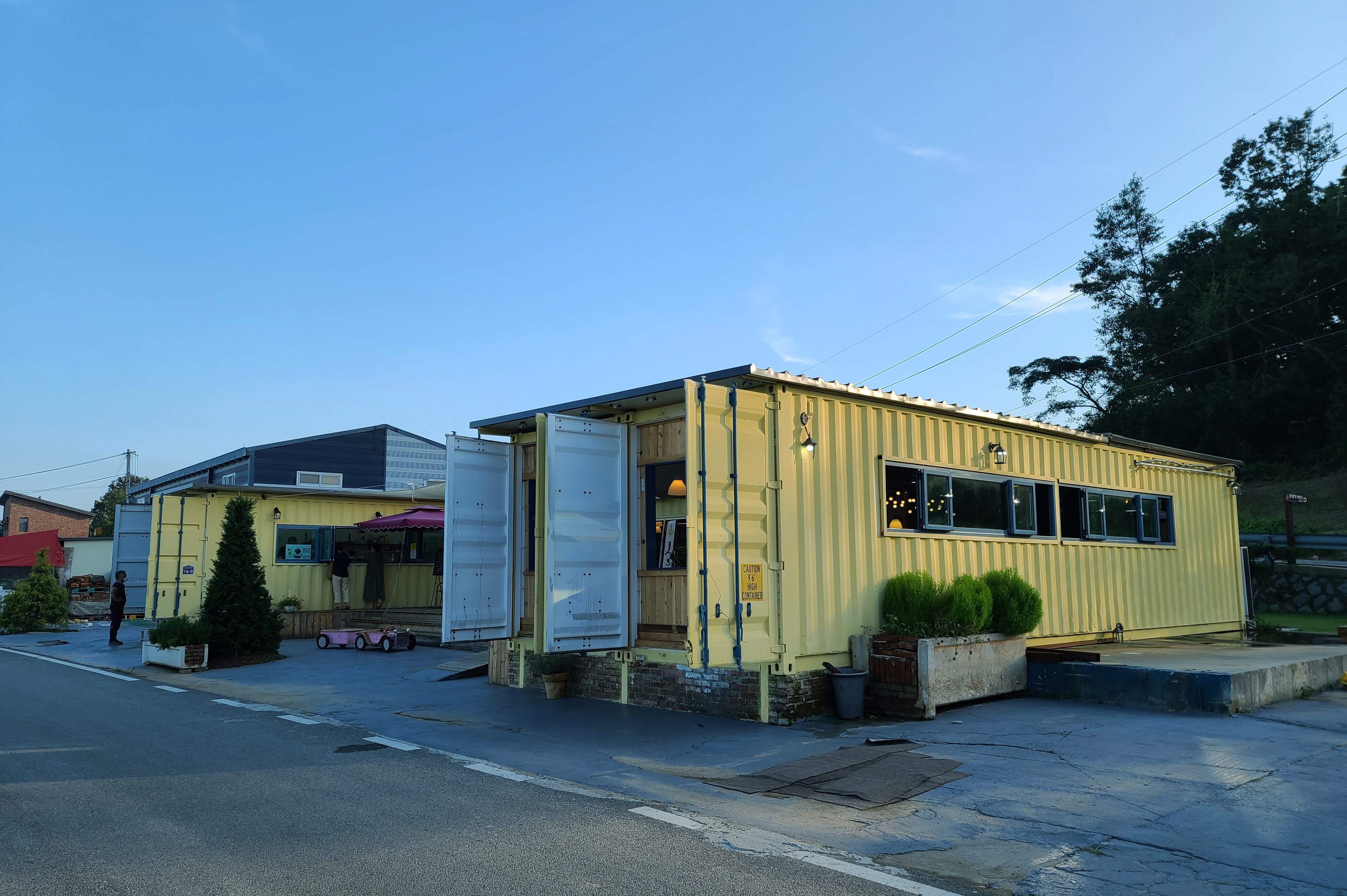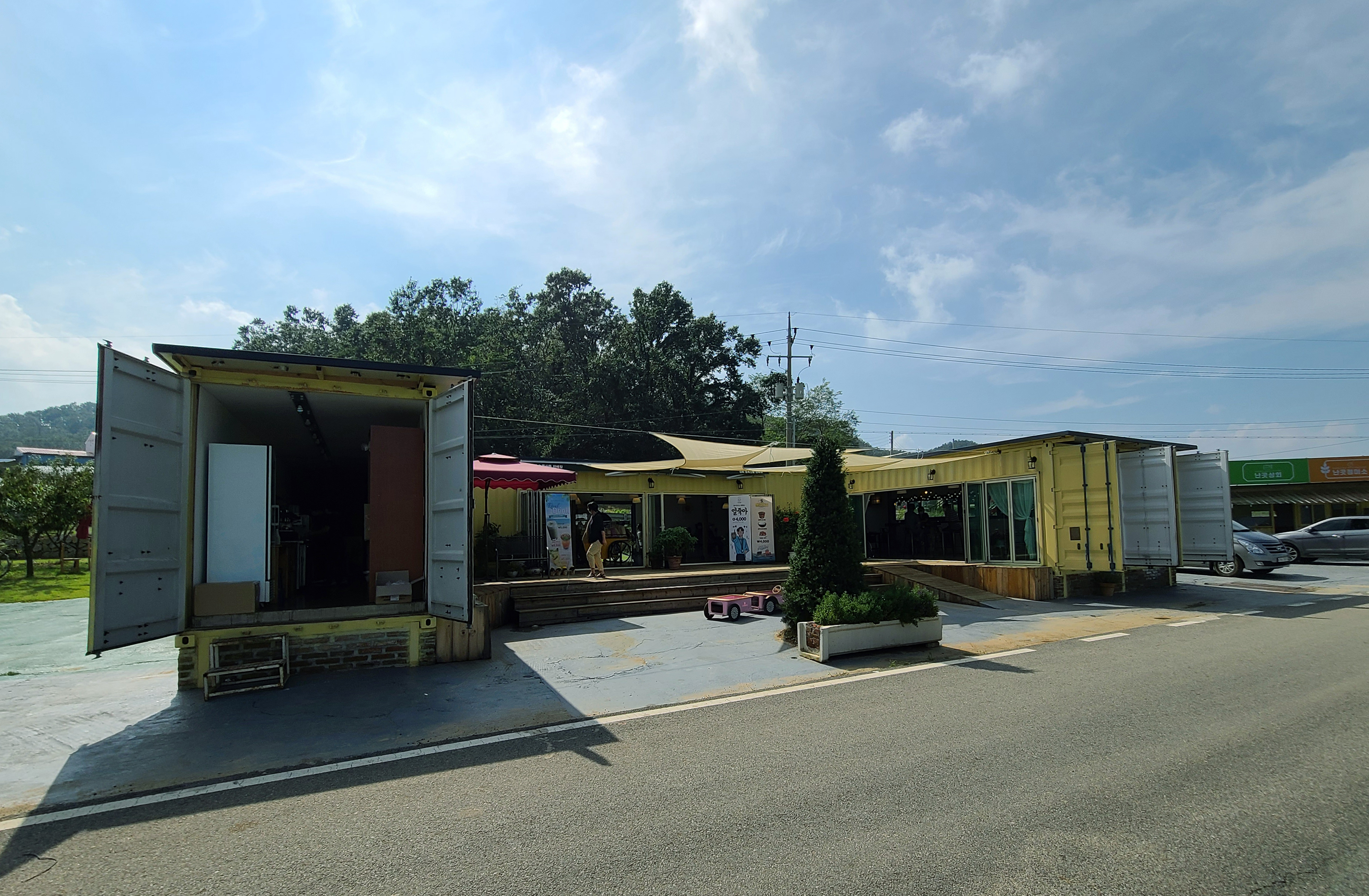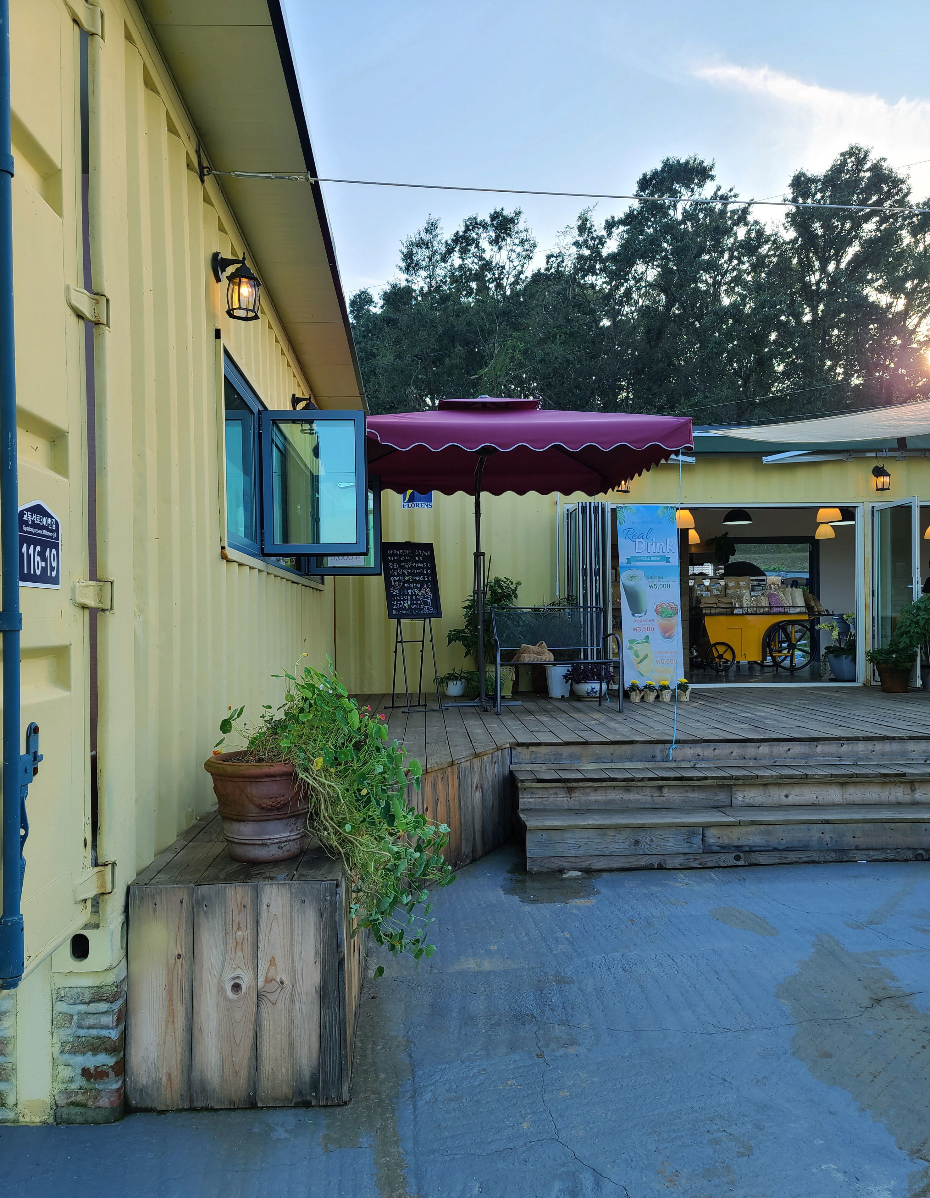 난곳카페는 컨테이너를 살린 인테리어가 돋보이는 곳이었는데, 가게에는 파스텔 톤의 페인트를 사용해 따뜻한 느낌을 잘 살려주었습니다. 가게 곳곳에는 강화 섬에서 직접 재배한 식자재로 만든 특산품도 판매 중이었습니다.