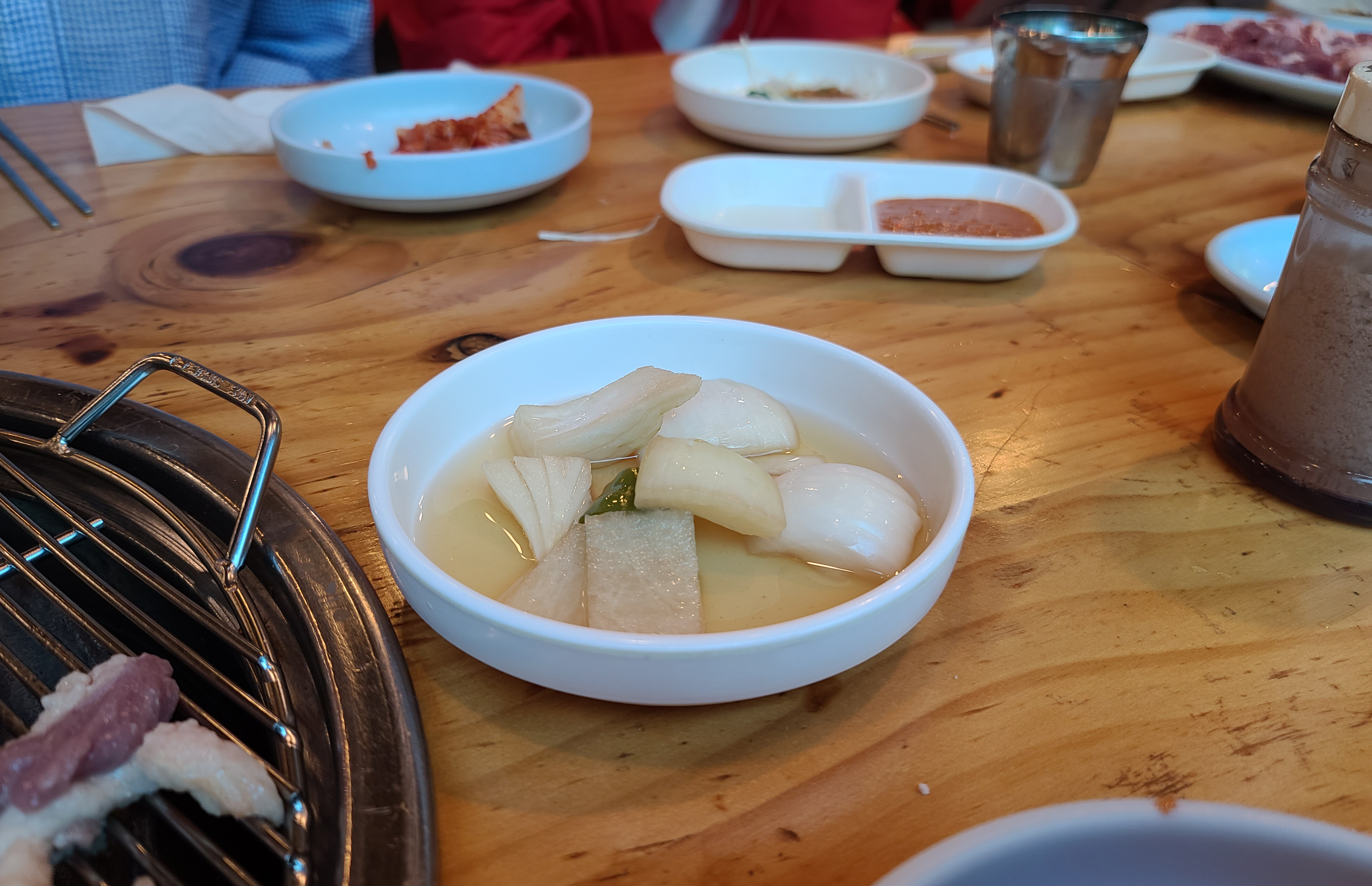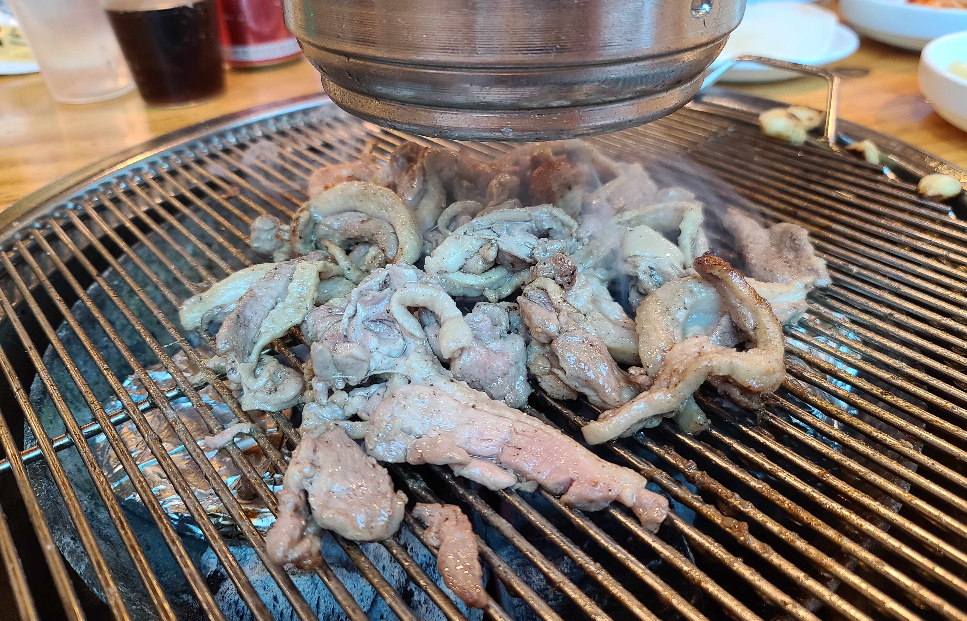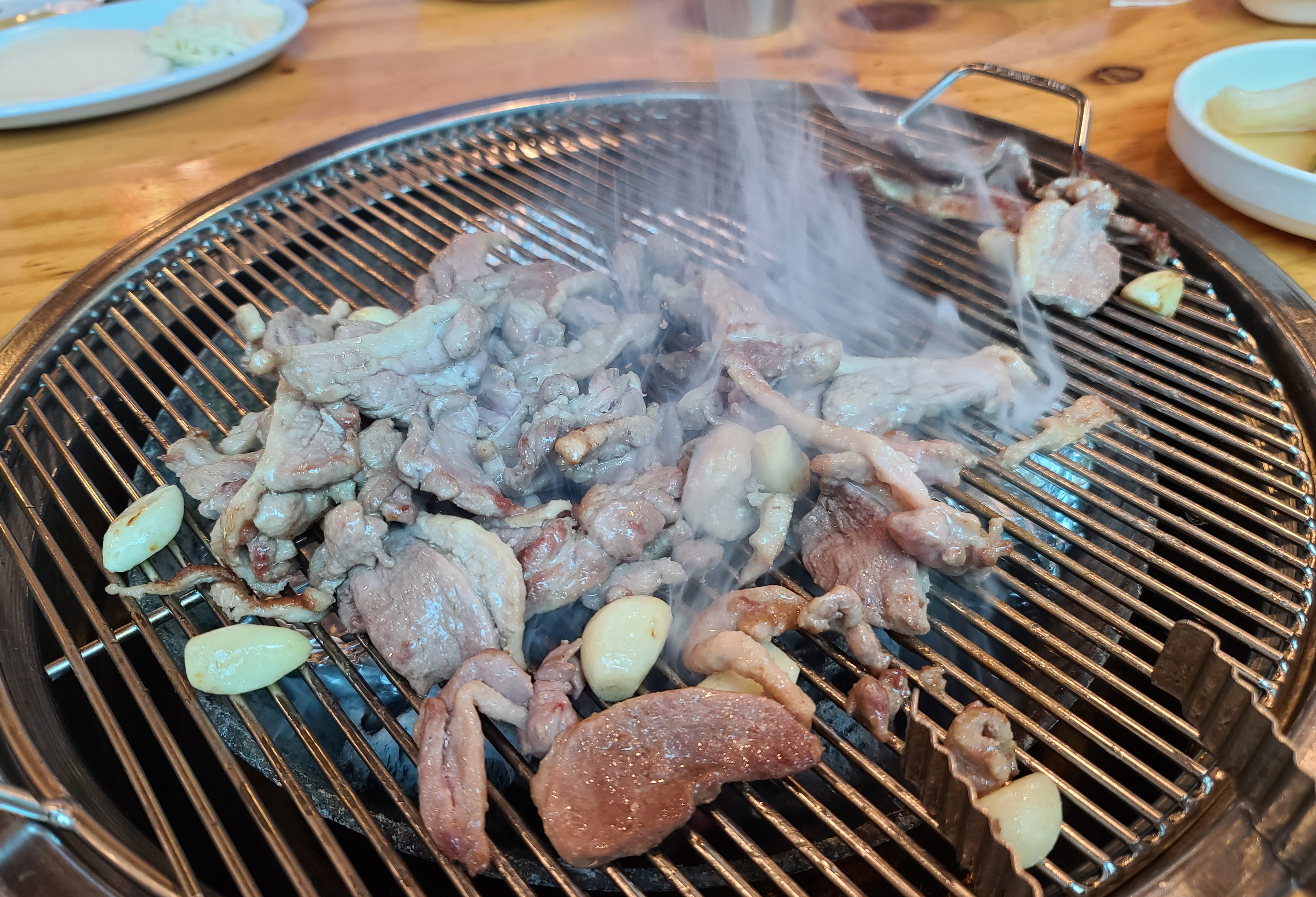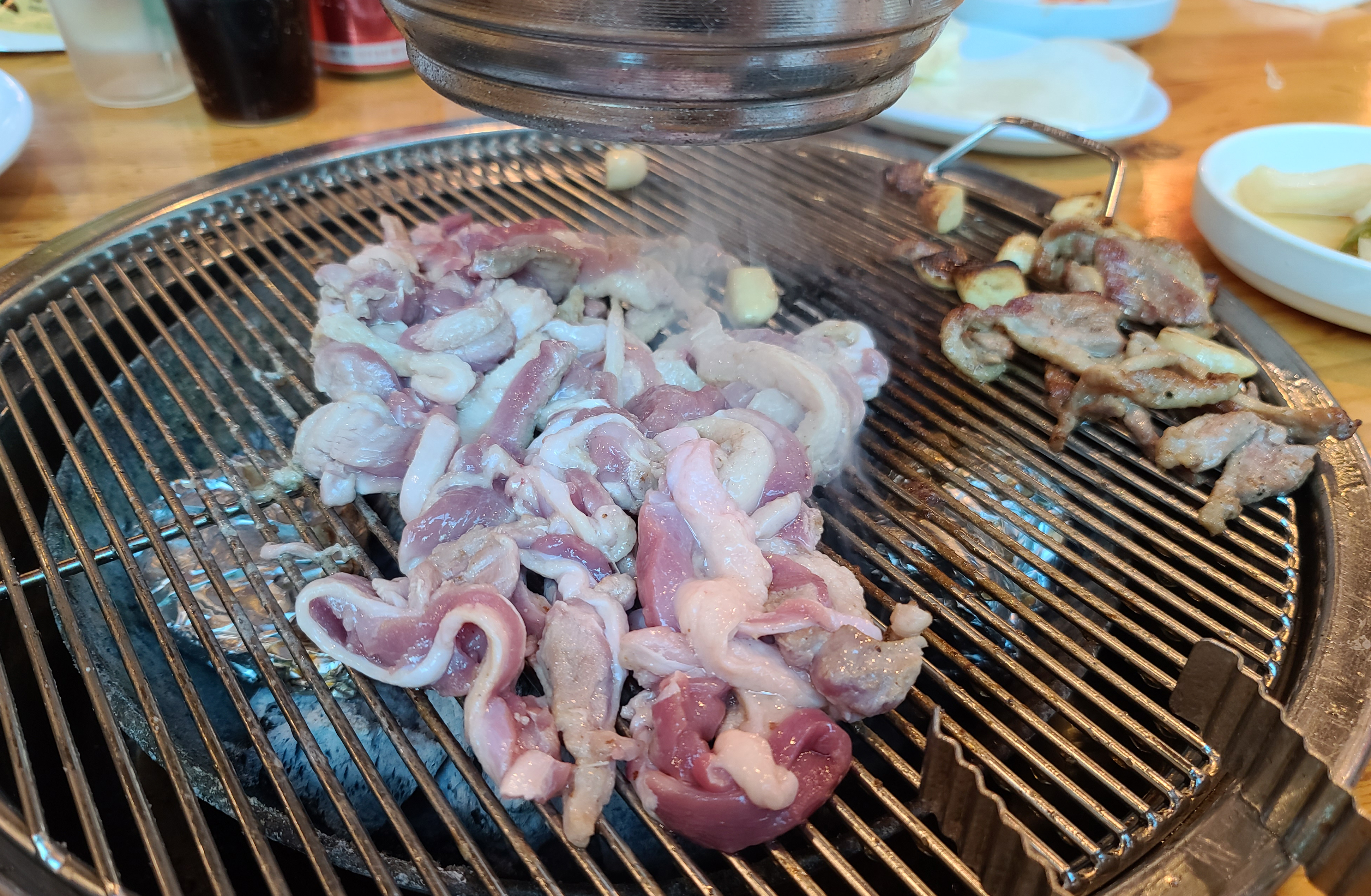 오리는 위 사진처럼 소금으로 간을 약간 해준 다음, 기호에 따라 마늘이랑 같이 구워주면 괜찮았습니다. 숯불에 굽는 오리구이라 향도 더 좋았고, 훈연하지 않아서 부담감 없이 먹을 수 있었습니다.