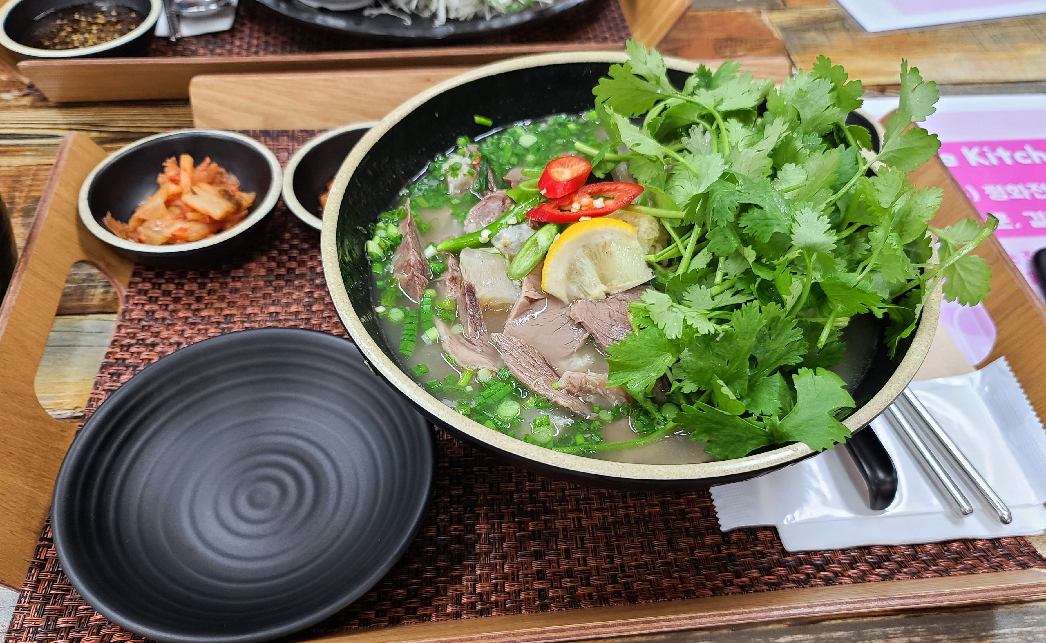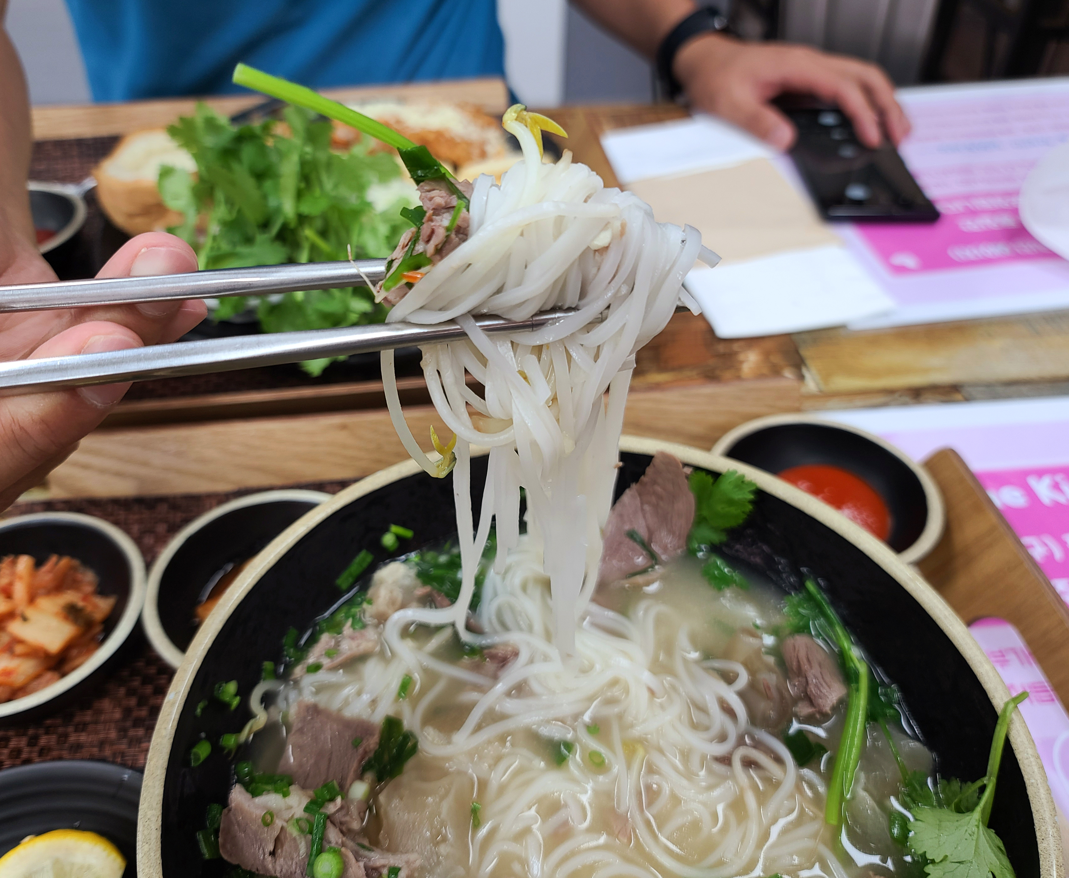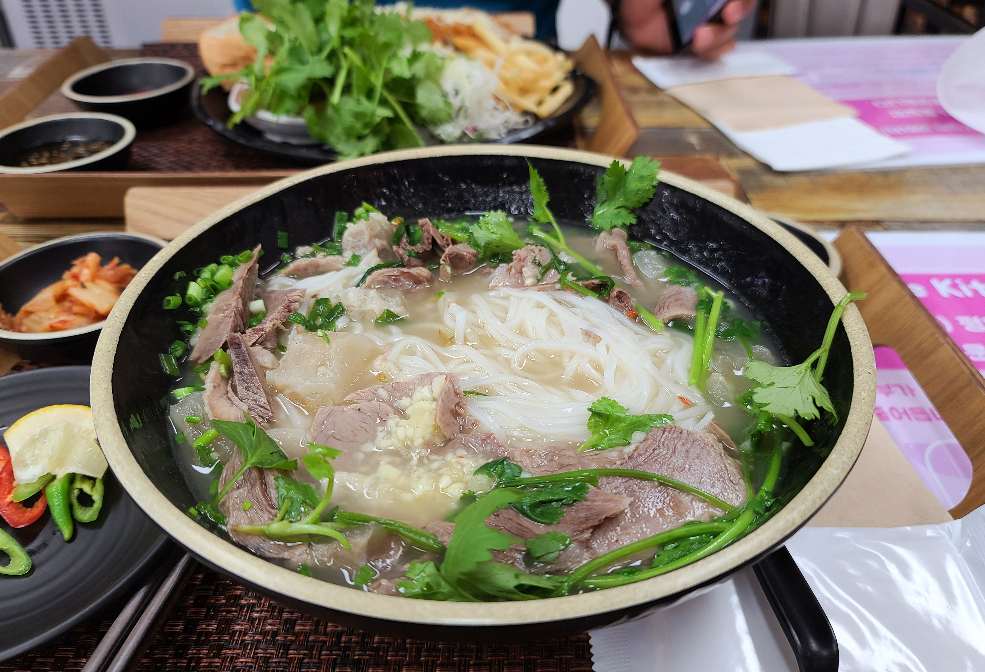 양지 사태 쌀국수는 고수도 듬뿍 올려주고, 쌀국수 국물이 특히 맛있었습니다. 고기의 양도 상당히 많이 들어있어 배불리 먹을 수 있다는 게 특징입니다. 저는 원래 쌀국수를 즐겨먹지 않는데, 이상하게(?) 사장님 가게 쌀국수는 맛있어서 주문하게 되더라고요.(ㅋㅋ)