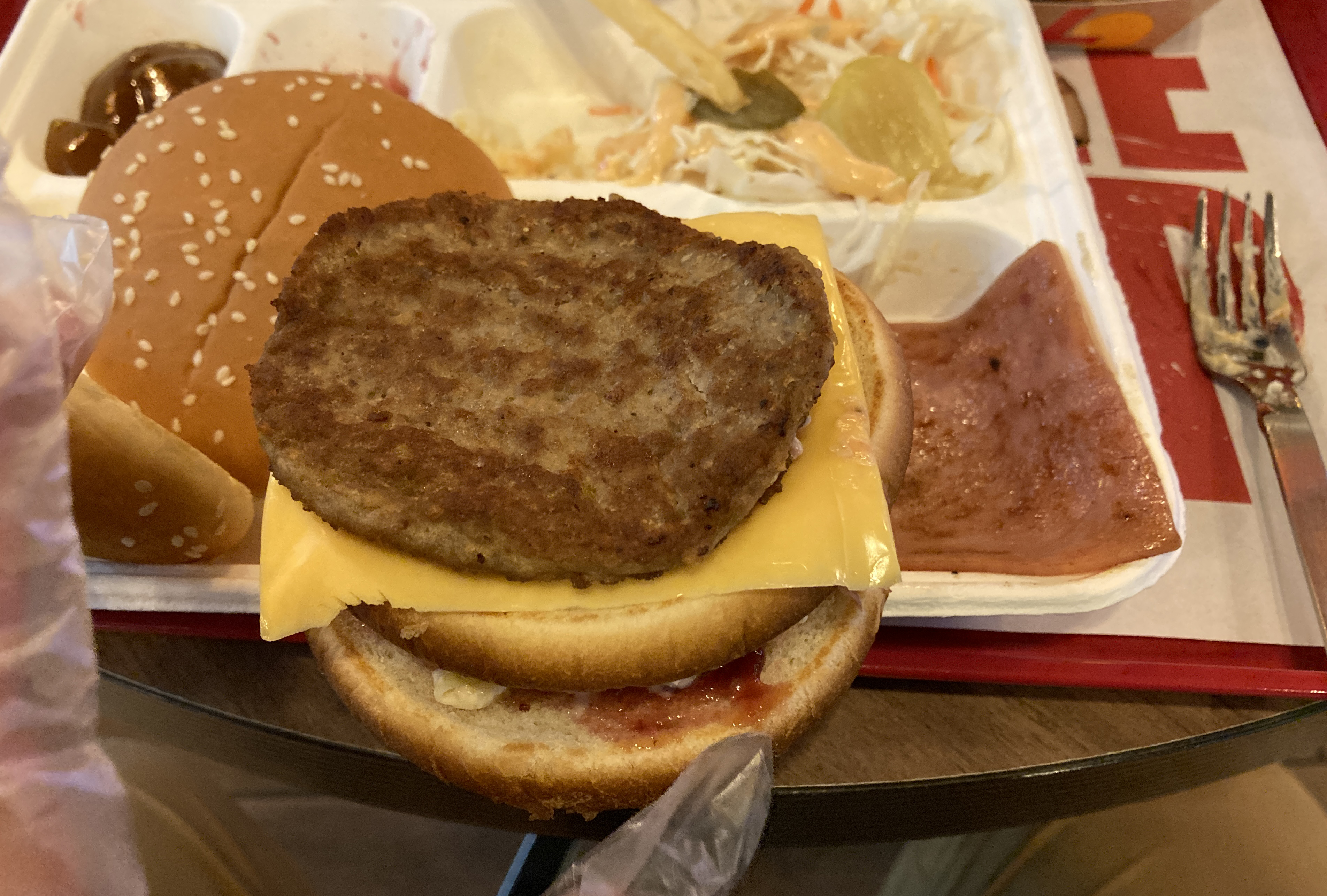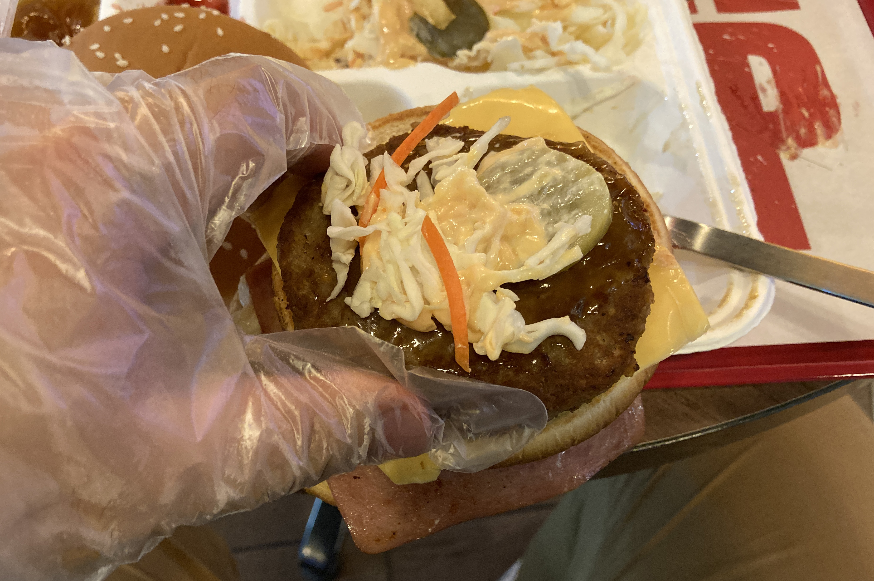 결국 어찌어찌해서 롯데리아의 너겟과 밀리터리 버거를 다 먹기는 했는데, 가격 대비 맛도 별로였고 재료의 질도 썩 좋지 않았던지 밤새 소화가 잘 안되어서 속이 안 좋더라고요. 호기심에 먹어봤지만 절대 추천하고 싶지 않고요. 차라리 이 돈으로 완성된 편의점 햄버거 2~3개는 사 먹을 수 있겠더라고요.(그렇게 먹지도 않겠지만..ㅋㅋ)