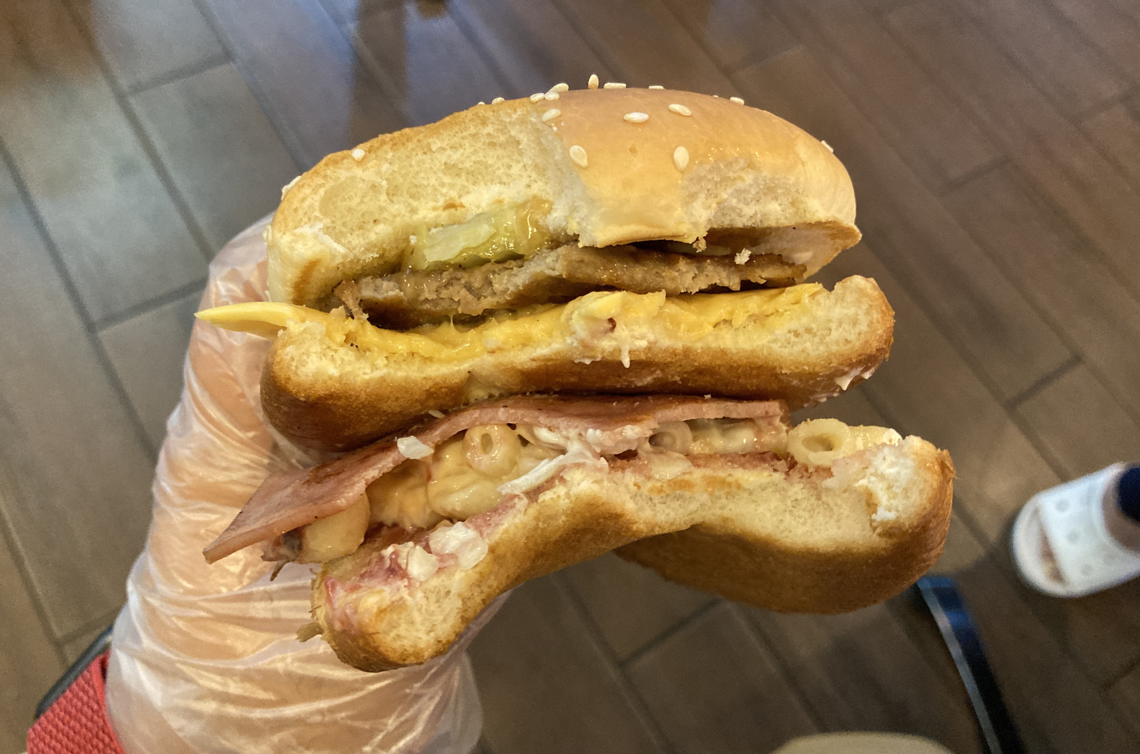 나름 수제버거로 직접 재료들을 조합해 만들어먹는 햄버거였는데, 재료를 넣는 방법에 따라 여자친구, 상병, 이등병, 말년병장 레시피가 있었습니다. 저는 배고픈 이등병 레시피를 따라 했고, 친구는 여자친구버거와 상병버거를 만들었죠.
