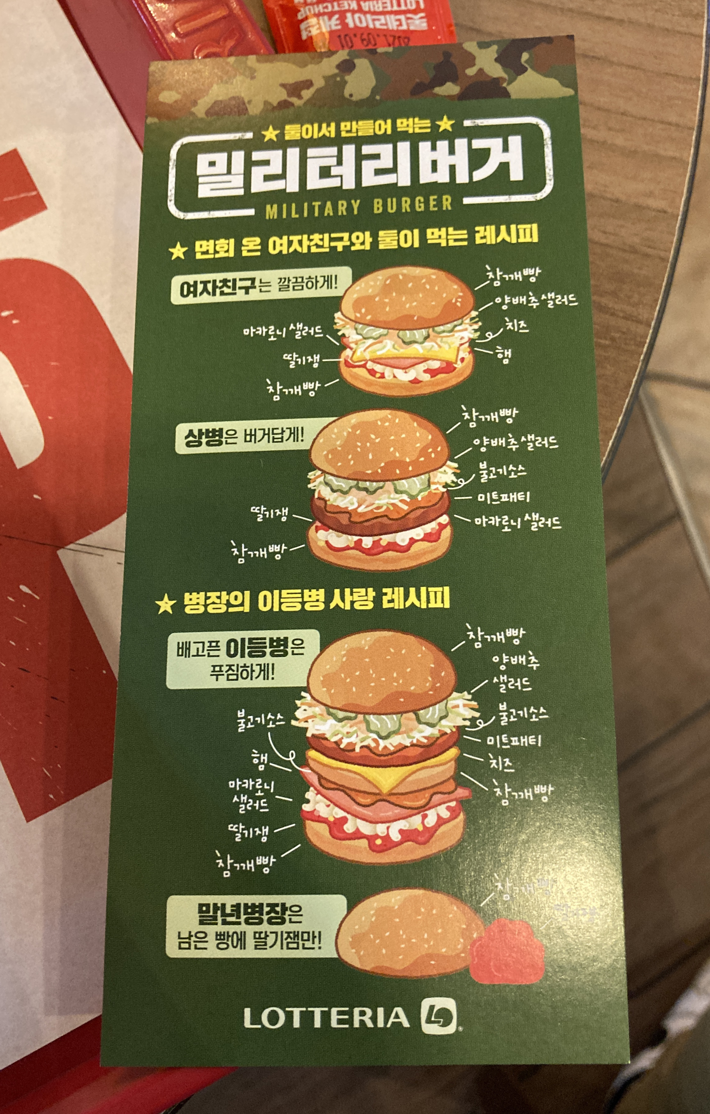 요즘 '가짜 사나이'의 인기로 롯데리아에서 밀리터리 버거라는 메뉴를 출시하여 판매하고 있습니다.