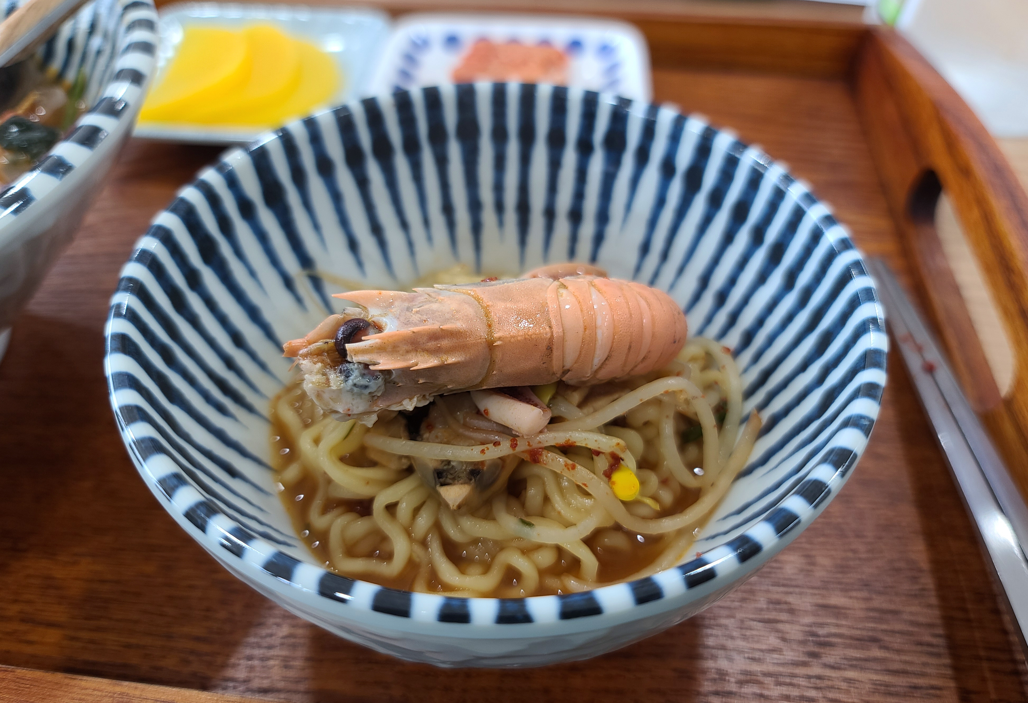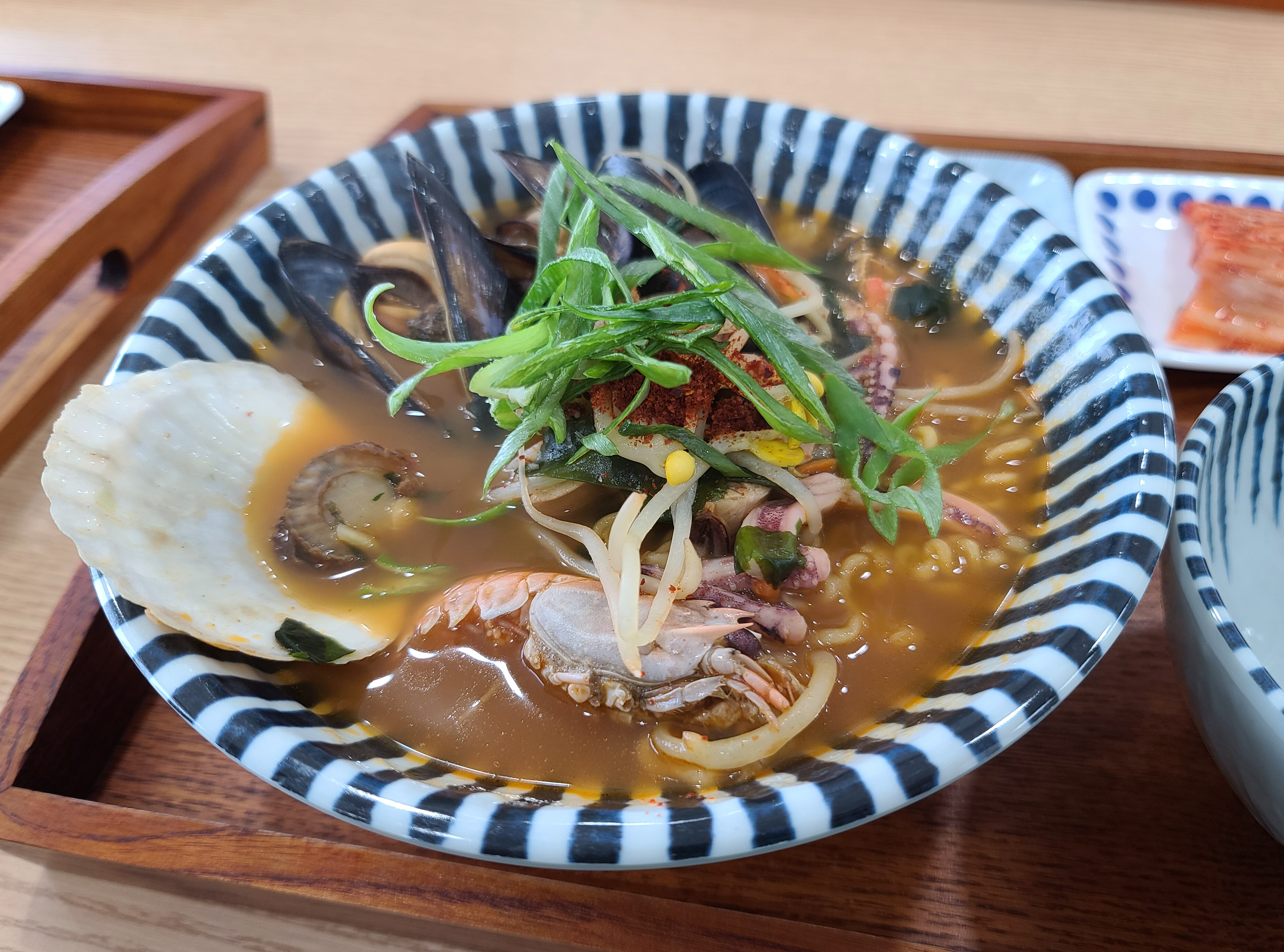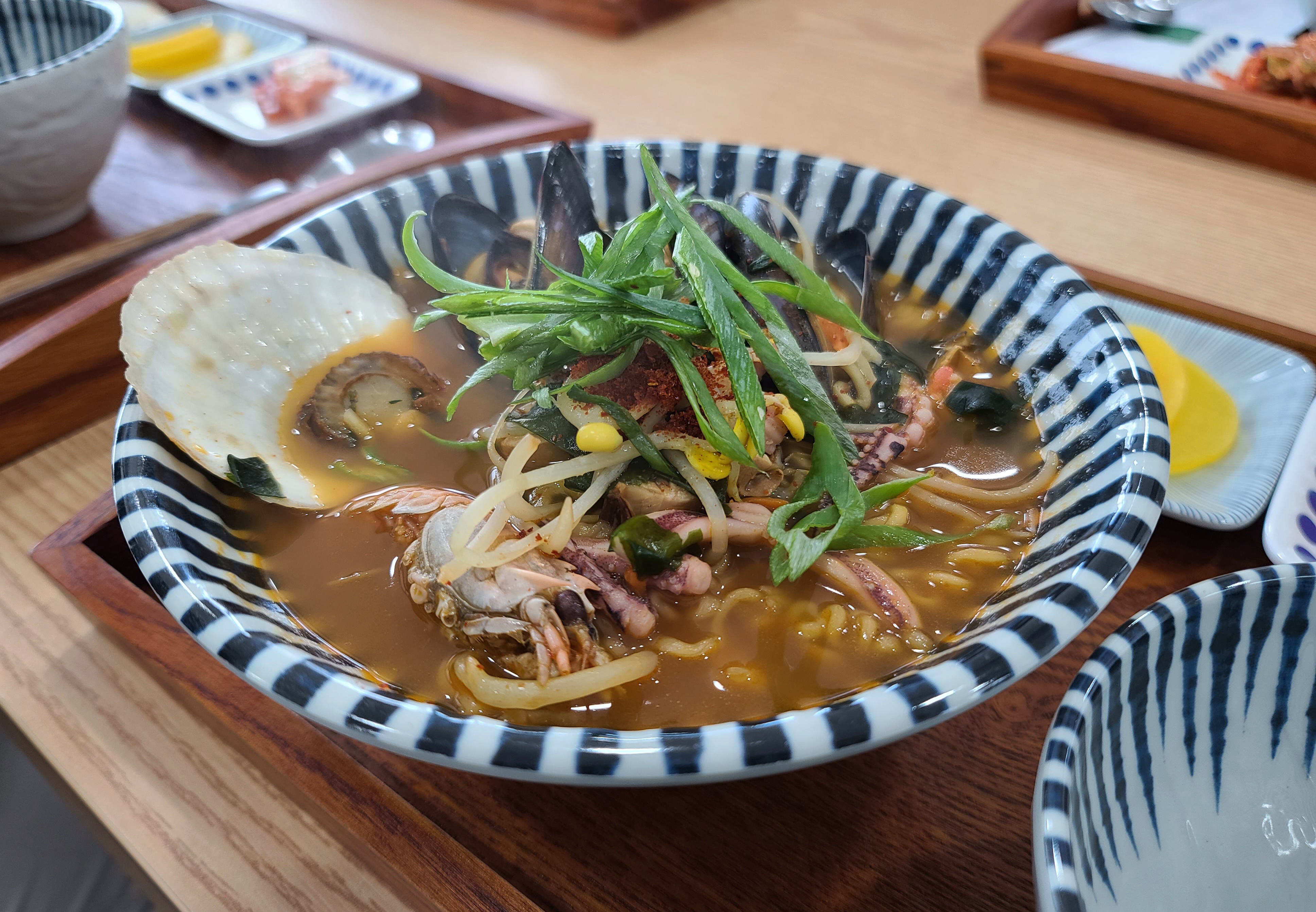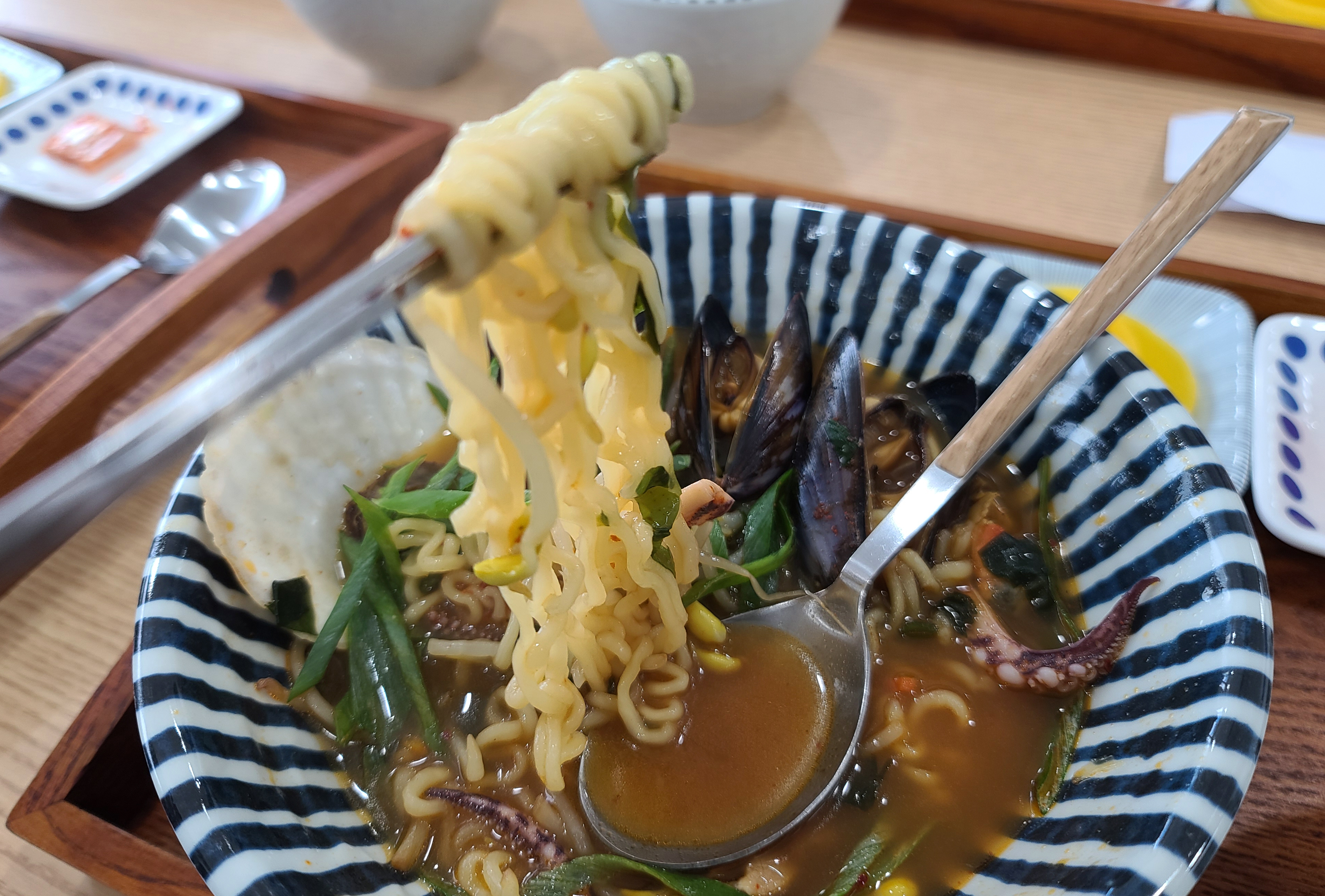 보통 음식점에서는 더 맵고 칼칼하게 끓이는데, 생각보다 부드러운 국물이 조금 아쉬웠지만 라면 자체는 먹을만했습니다. 해산물도 다양하게 들어있고, 허기진 상태에서 방문해서 그런지 다 맛있게 느껴질 시간이었거든요. 엄청 맛있다거나 한 건 아닌데, 해녀가 직접 잡아온 해산물로 만든 음식이라고 하니 아무래도 더 신선하고 좋겠죠??