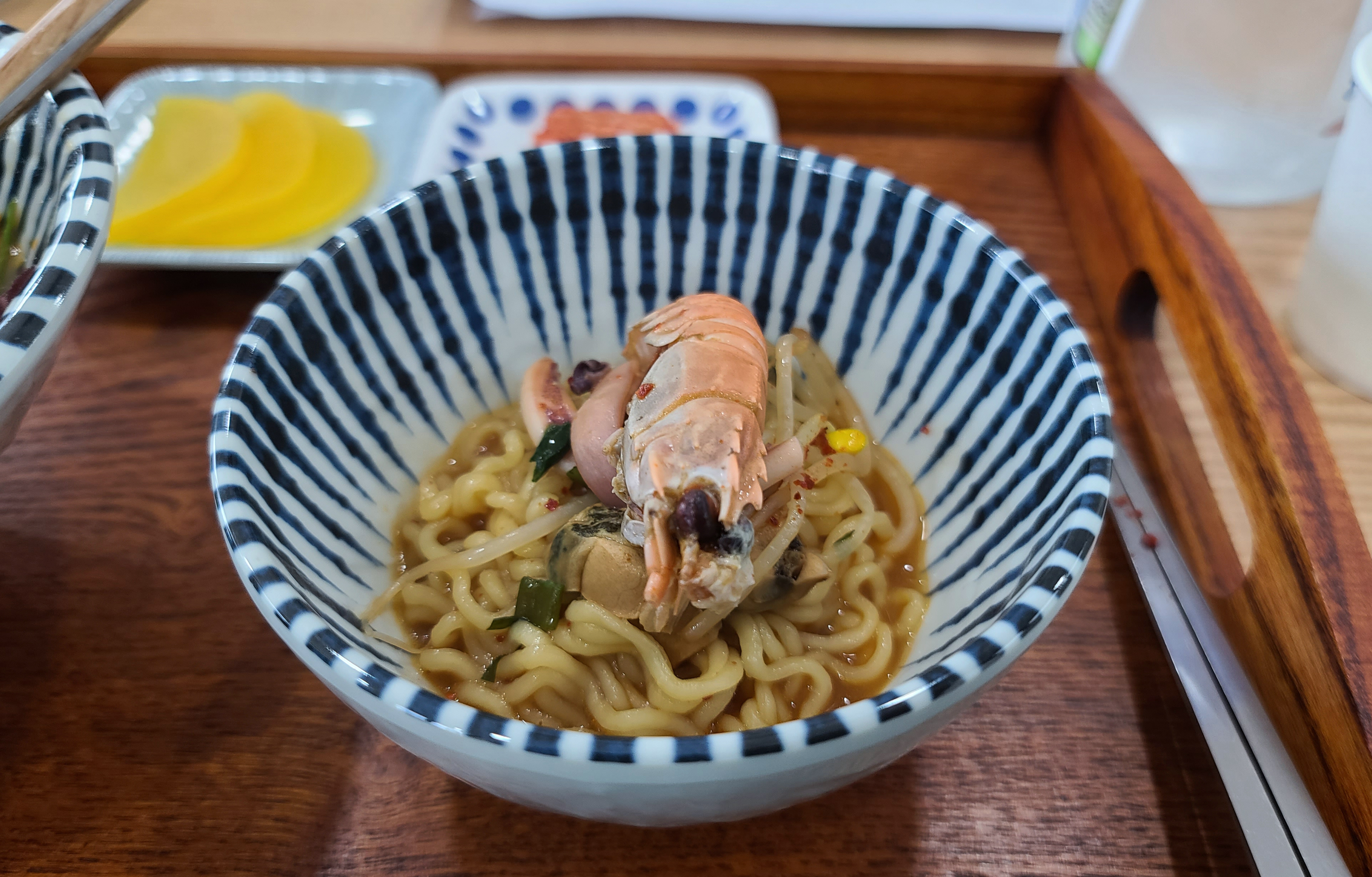 보통 음식점에서는 더 맵고 칼칼하게 끓이는데, 생각보다 부드러운 국물이 조금 아쉬웠지만 라면 자체는 먹을만했습니다. 해산물도 다양하게 들어있고, 허기진 상태에서 방문해서 그런지 다 맛있게 느껴질 시간이었거든요. 엄청 맛있다거나 한 건 아닌데, 해녀가 직접 잡아온 해산물로 만든 음식이라고 하니 아무래도 더 신선하고 좋겠죠??