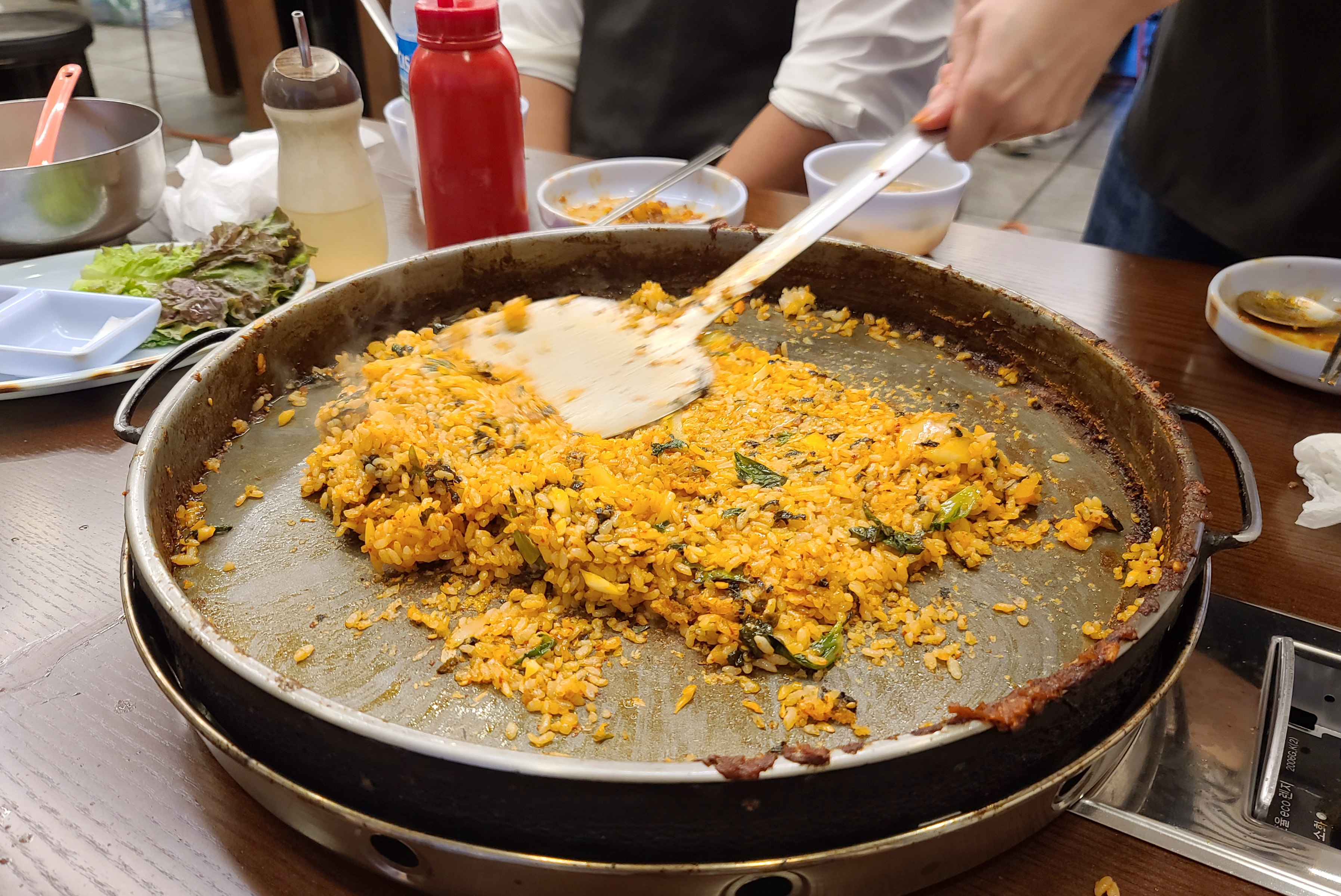 볶음밥은 처음에만 볶아주고, 나머지는 손님이 직접 볶을 수 있게 했습니다. 함께 간 지인이 볶음밥을 마저 볶아주어서 제가 "요즘 음식점에서 볶음밥을 하트(♡) 모양으로도 만들어주더라" 그랬더니, 직접 하트 모양으로 만들어주셨습니다. (ㅋㅋ)