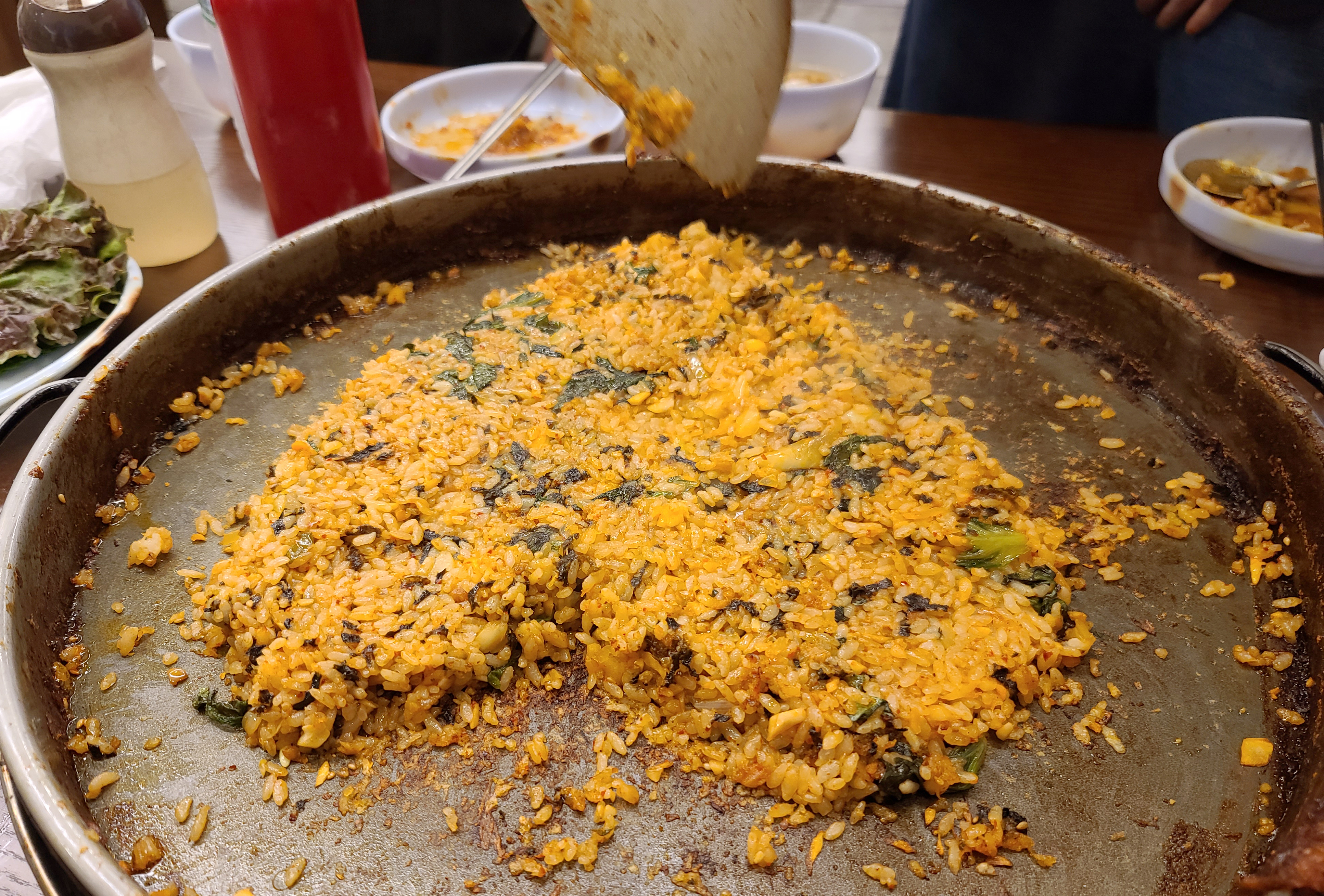볶음밥은 처음에만 볶아주고, 나머지는 손님이 직접 볶을 수 있게 했습니다. 함께 간 지인이 볶음밥을 마저 볶아주어서 제가 "요즘 음식점에서 볶음밥을 하트(♡) 모양으로도 만들어주더라" 그랬더니, 직접 하트 모양으로 만들어주셨습니다. (ㅋㅋ)