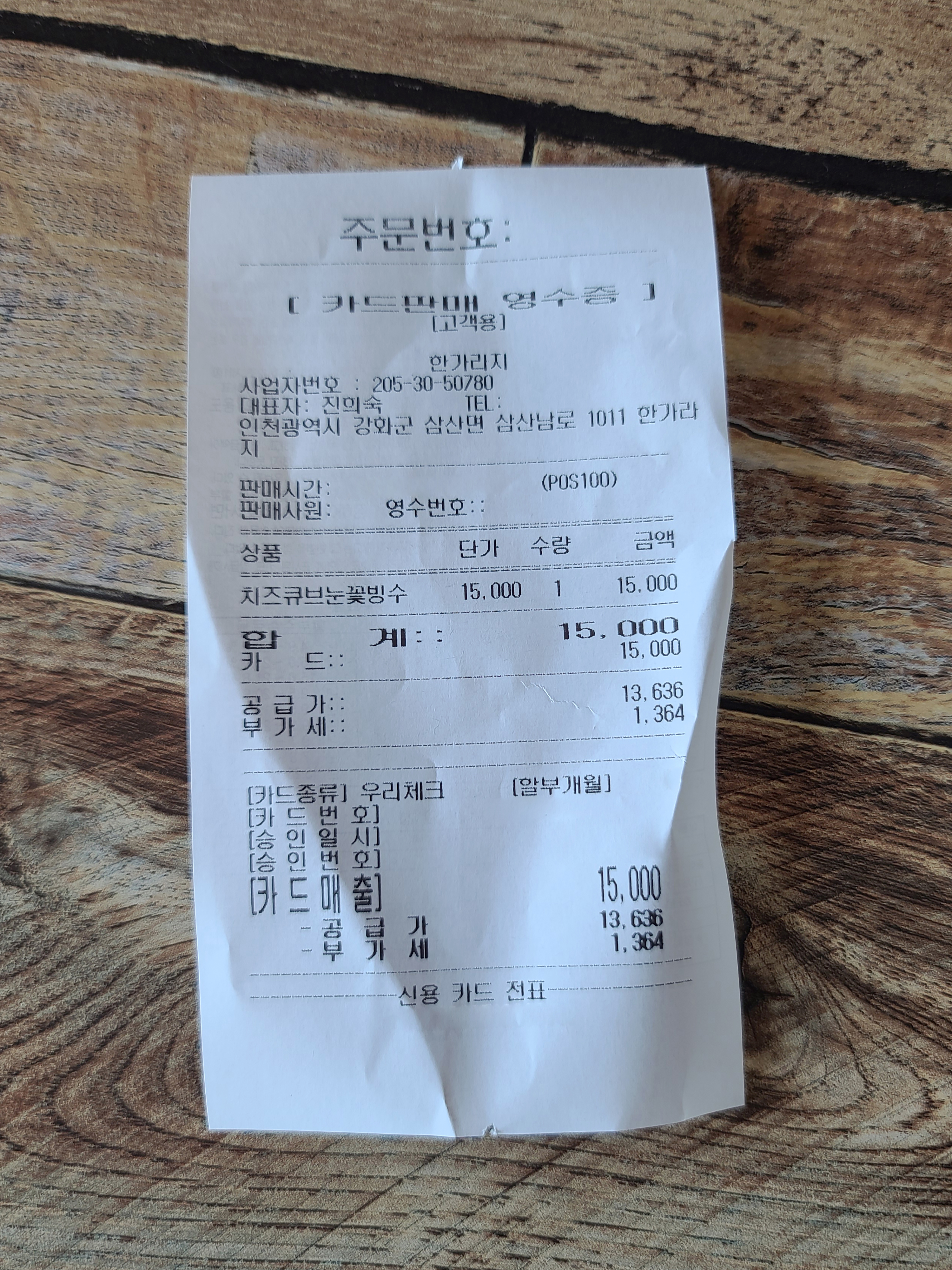 석모도 한가라지 카페는 'T맵 추천'에 의해 우연히 방문하게 된 가게입니다. 코스모스 길에서 사진을 너무 열정적으로 찍었던지 당이 떨어져서(?), 팥빙수라도 하나 먹고 가기로 하였죠. 가게에는 다양한 메뉴를 판매하고 있었는데, '생애 최고의 맛 리얼치즈 빙수!' 라는 말에 대체 생애 최고의 맛은 어떤 맛일지 궁금하여 리얼 치즈빙수로 주문하였습니다. (리얼치즈빙수의 금액은 15,000원으로 조금 비싼 편이었습니다.)
