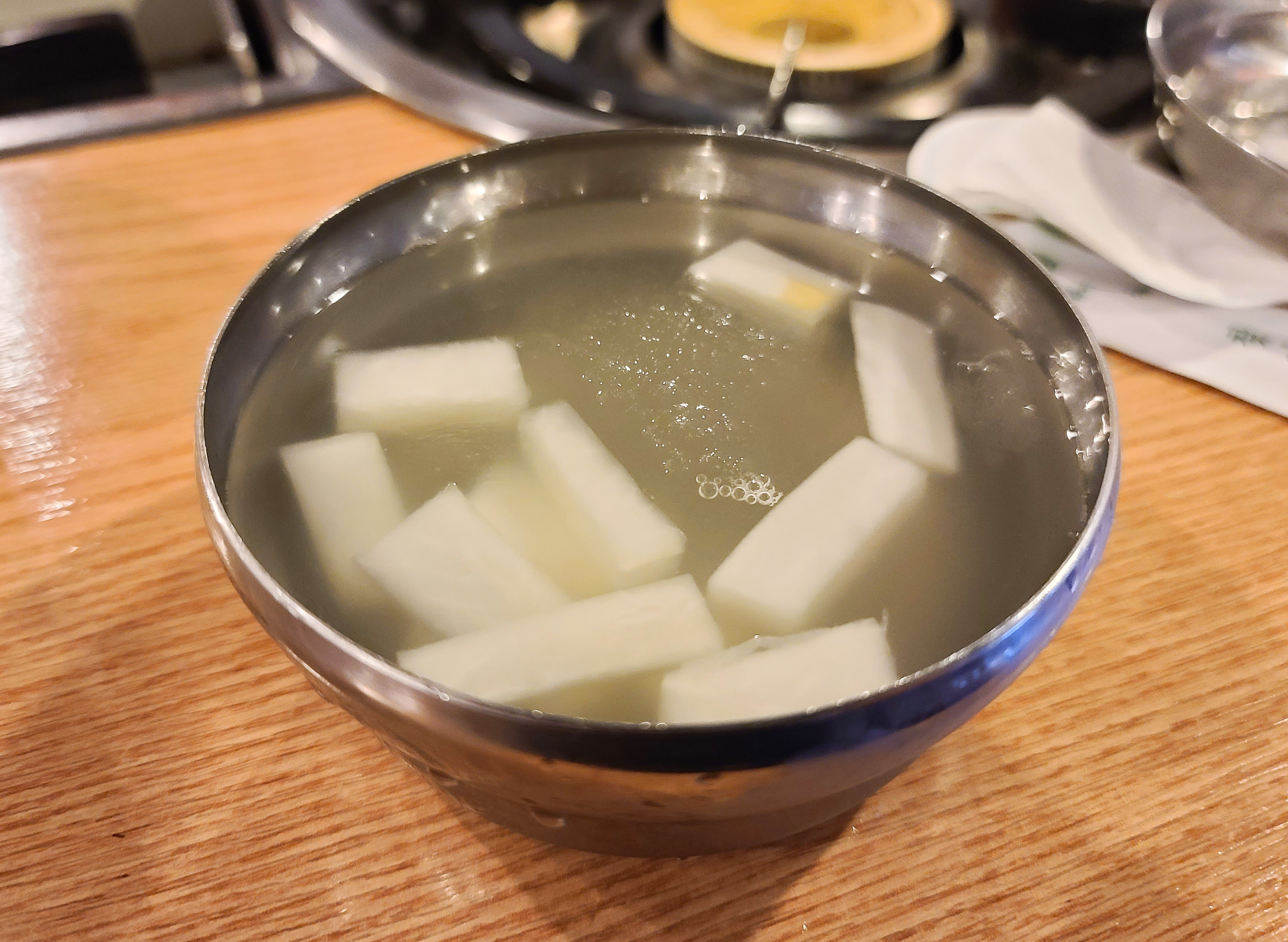 곱창은 기본적으로 동치미와 상추가 함께 제공되었으며, 별도로 주문하지 않았는데 쿨피스도 서비스로 나오는 것 같더라고요. 조금 기다리니 주문한 순대곱창이 준비되었고,