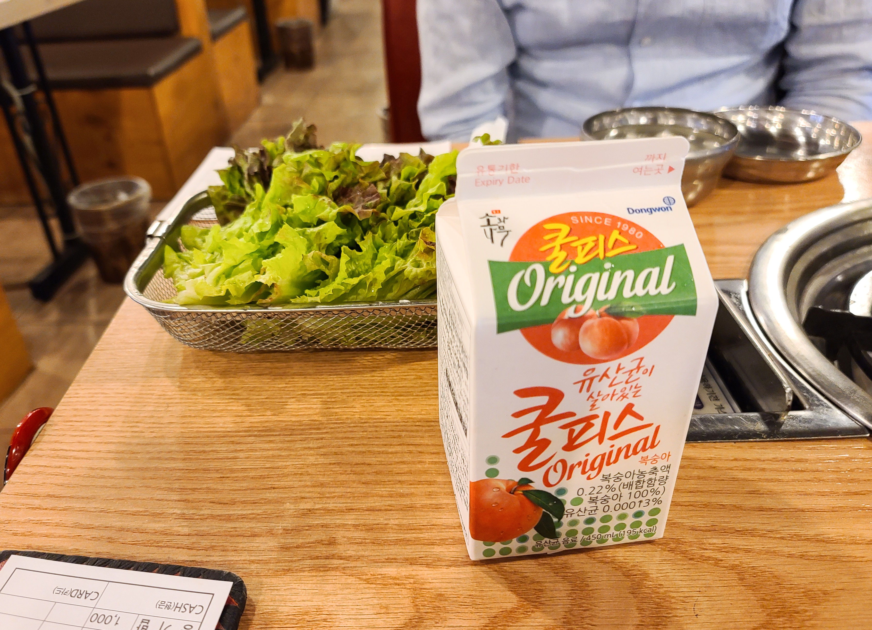 곱창은 기본적으로 동치미와 상추가 함께 제공되었으며, 별도로 주문하지 않았는데 쿨피스도 서비스로 나오는 것 같더라고요. 조금 기다리니 주문한 순대곱창이 준비되었고,