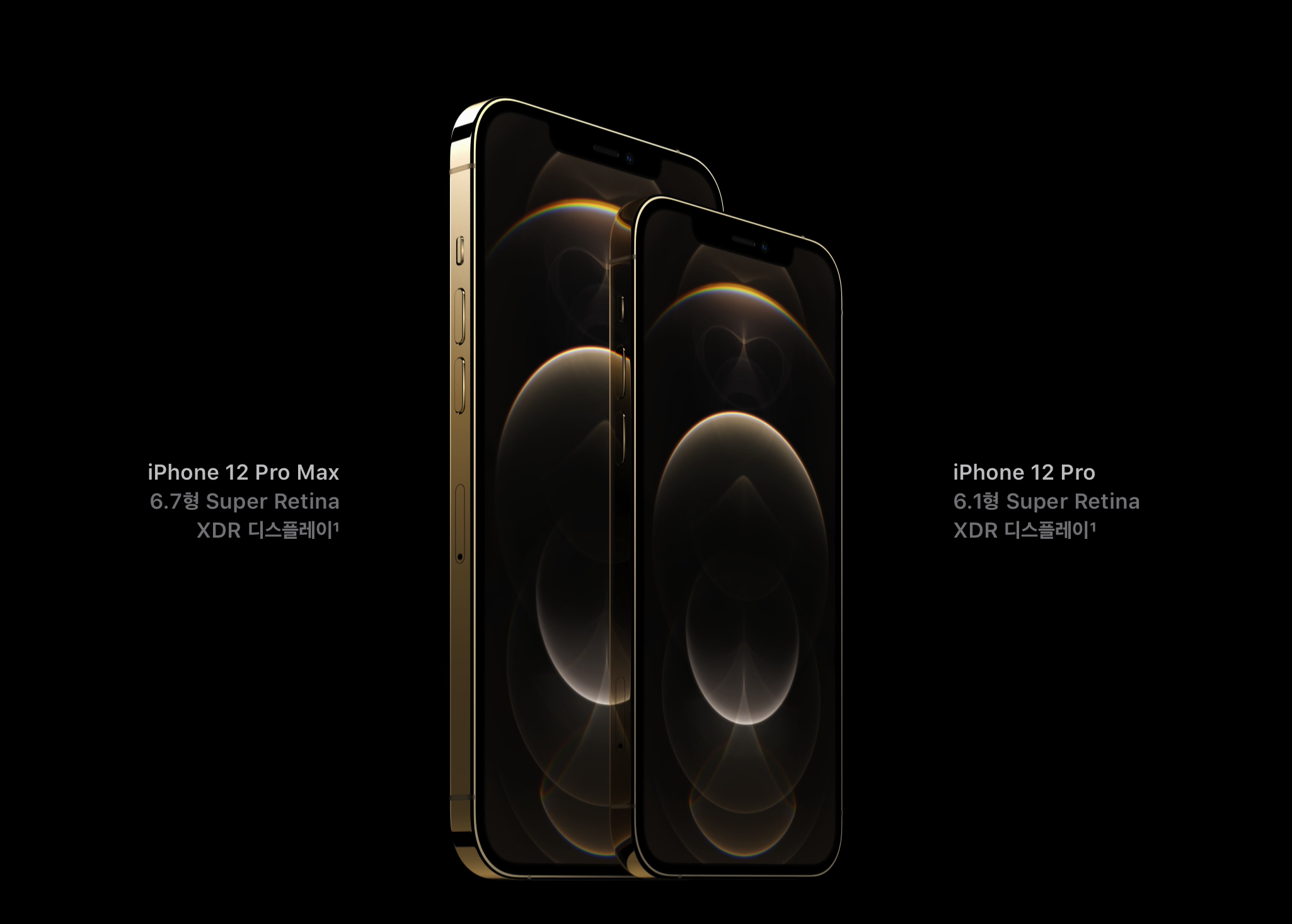 새로운 아이폰 12 프로와 프로맥스는 각각 6.1형 6.7형 슈퍼 레티나 XDR 디스플레이를 지원하고 있습니다.