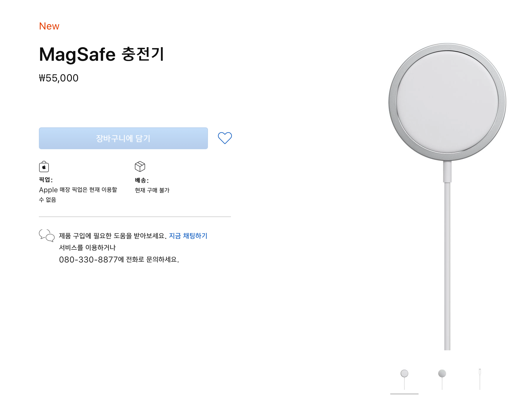 새로 소개된 맥세이프의 소개도 빠질 수 없죠. 자석을 이용한 맥세이프 충전은 더 빠르고 안전하게 15W 충전이 가능하다고 합니다. 충전기의 가격은 55,000원 입니다. (아이폰 12 Pro와 동일)