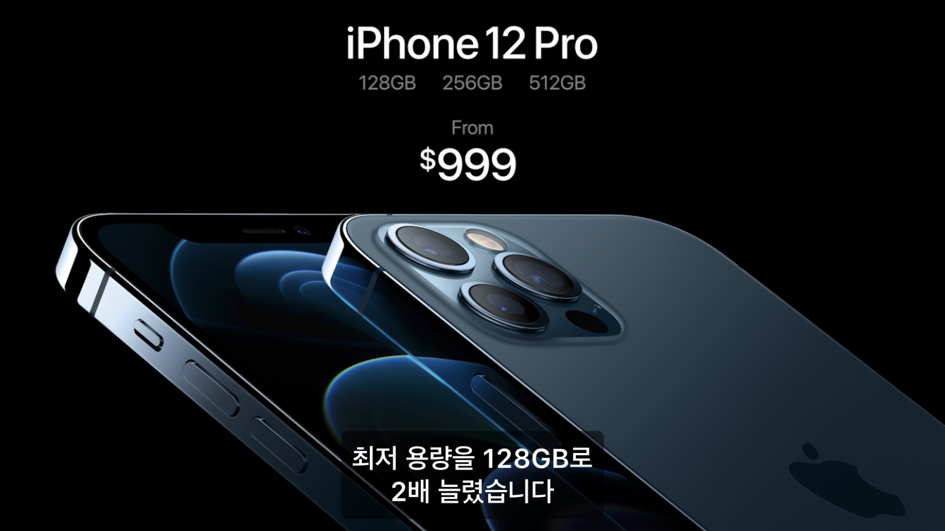 아이폰 12 Pro 와 아이폰 12 Pro Max 의 가격은 각각 1,350,000원, 1,490,000원으로 출시될 예정입니다. 스마트폰의 용량은 128GB, 256GB, 512GB 로 출시됩니다.