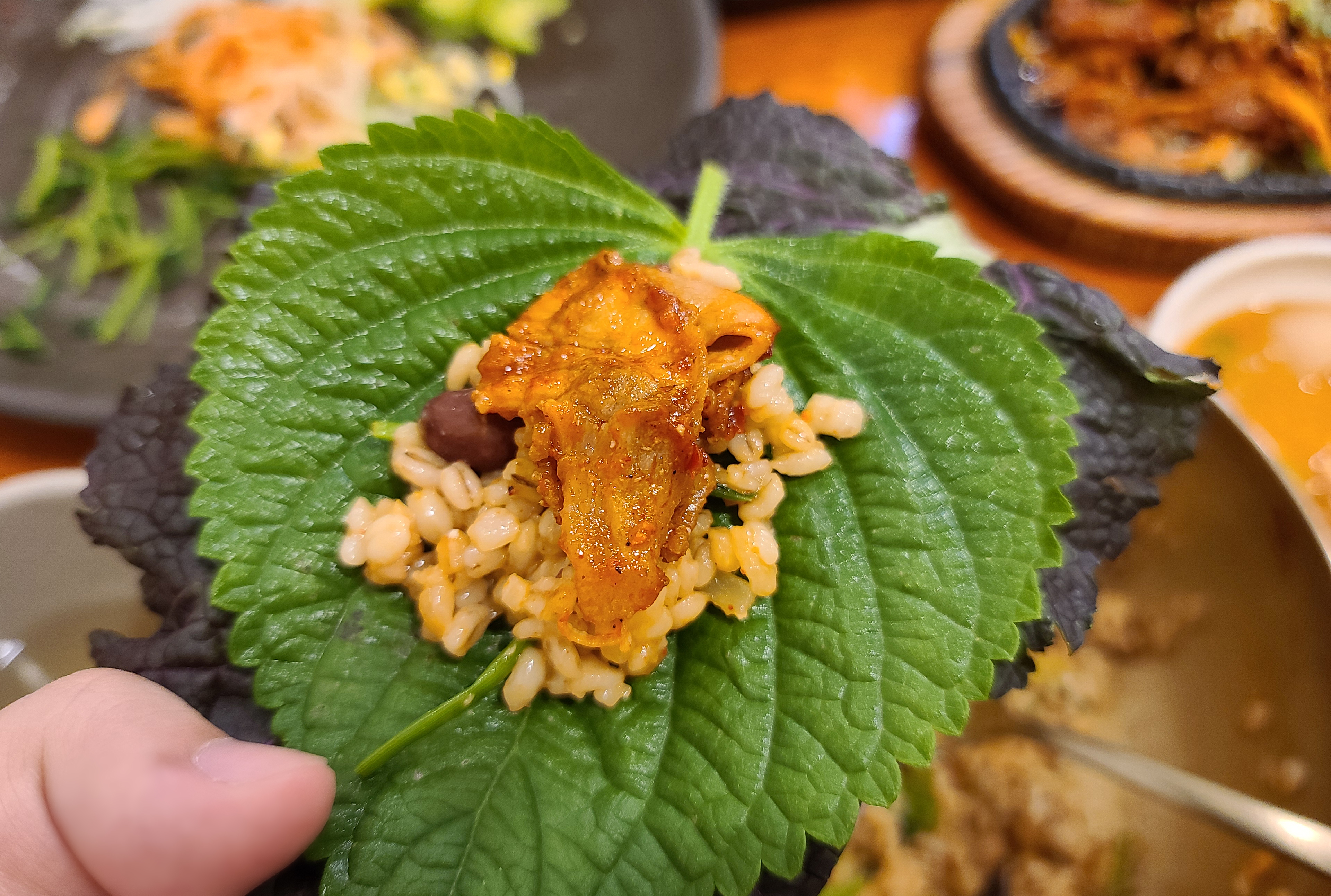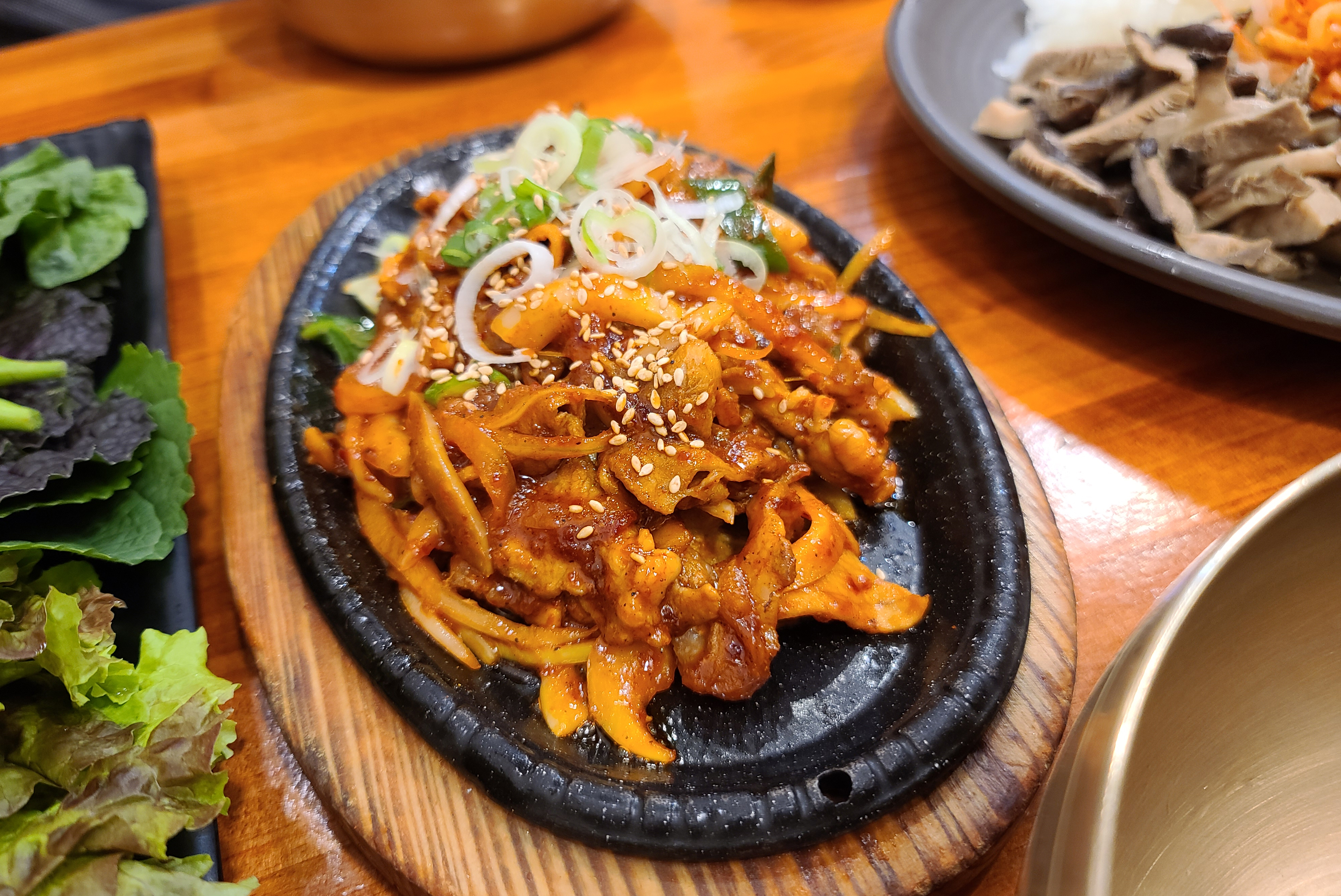 청국장 외에도 떡갈비와 제육볶음을 함께 먹었는데, 떡갈비와 제육볶음도 나름 맛이 괜찮았습니다. 그래도 저는 두 가지 메뉴 중에 고르라면 제육볶음이 있는 자연채 쌈정식을 주문하라고 권해드리고 싶습니다.(ㅋㅋ)
