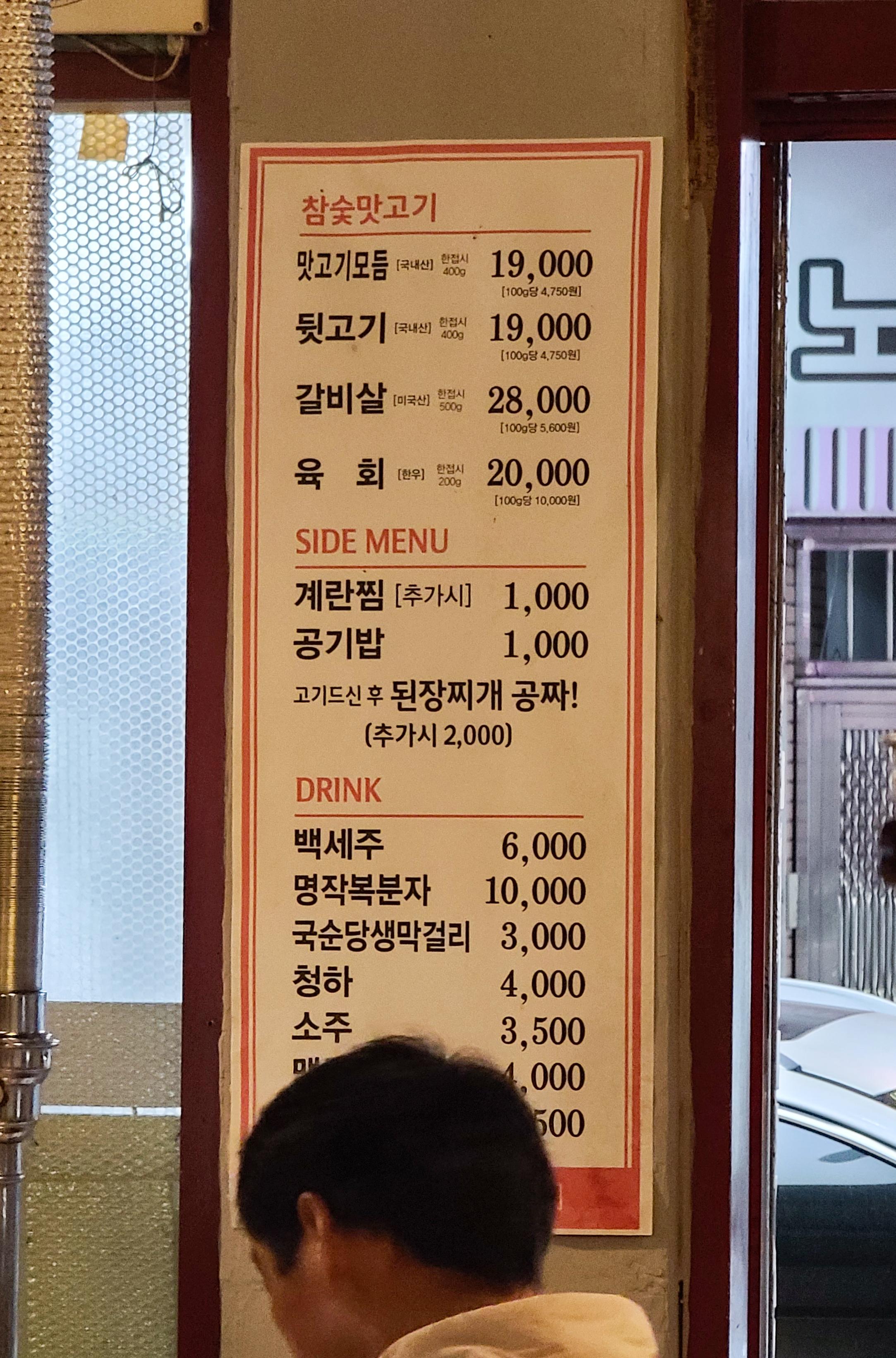 900가참숯맛고기의 메뉴는 위와 같습니다. 맛고기모듬, 뒷고기, 갈비살, 육회, 계란찜, 공기밥이 있었고, 된장찌개는 고기 주문 시 서비스로 제공되었습니다. 대부분 메뉴가 2만 원 정도 해서 크게 부담스럽지 않았고, 저희는 이 날 뒷고기, 맛고기, 음료수, 공기밥을 주문해서 먹었습니다.