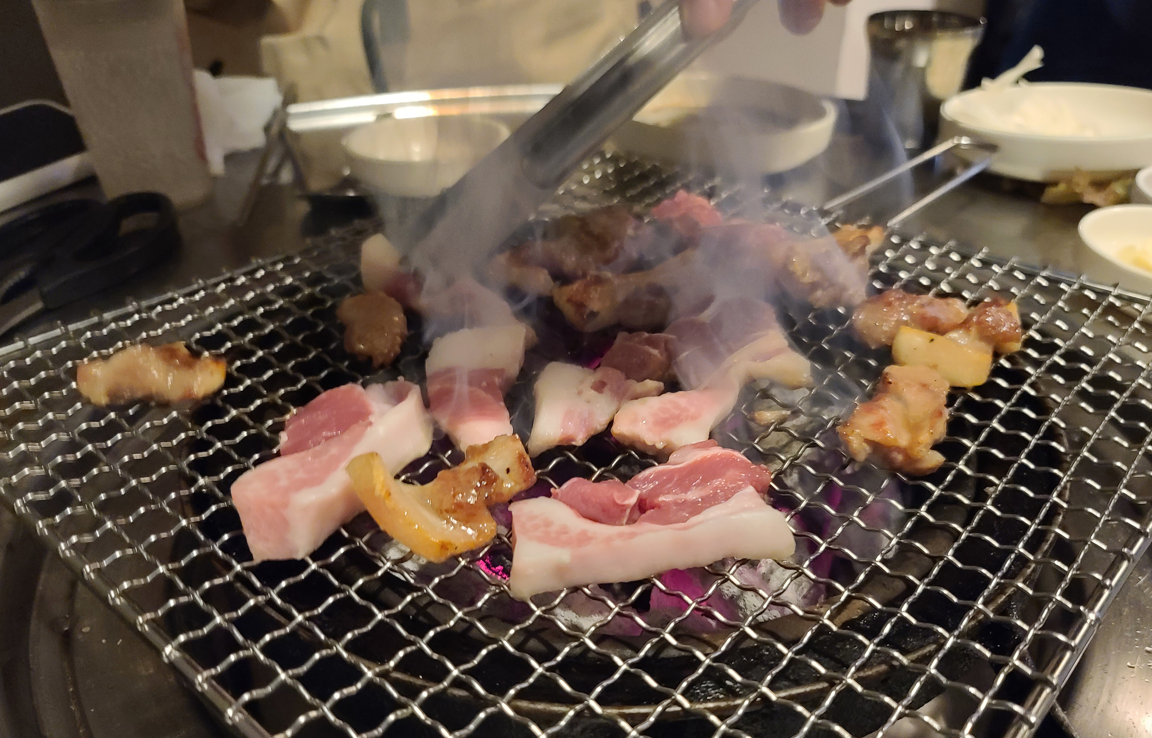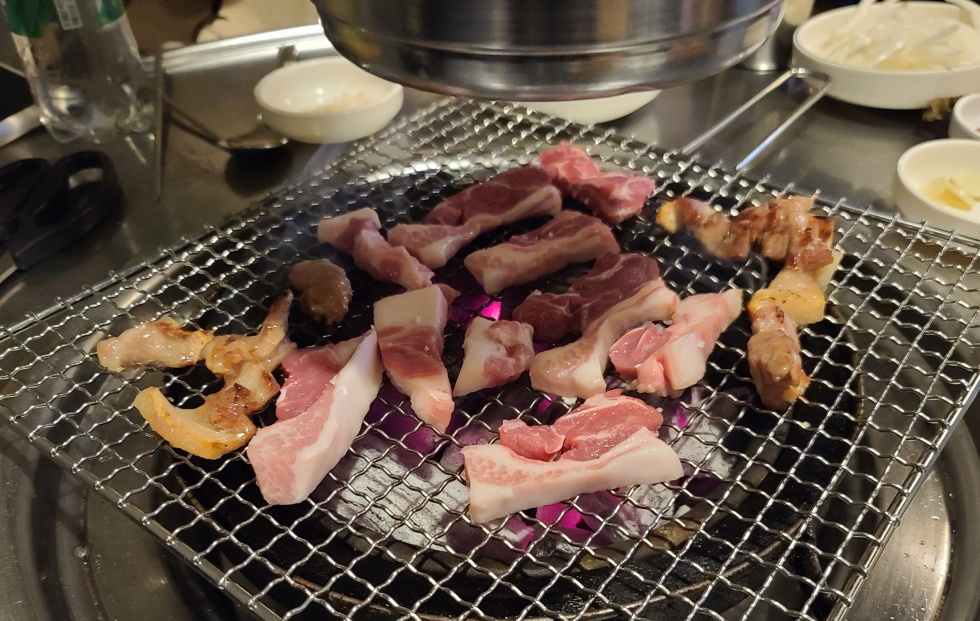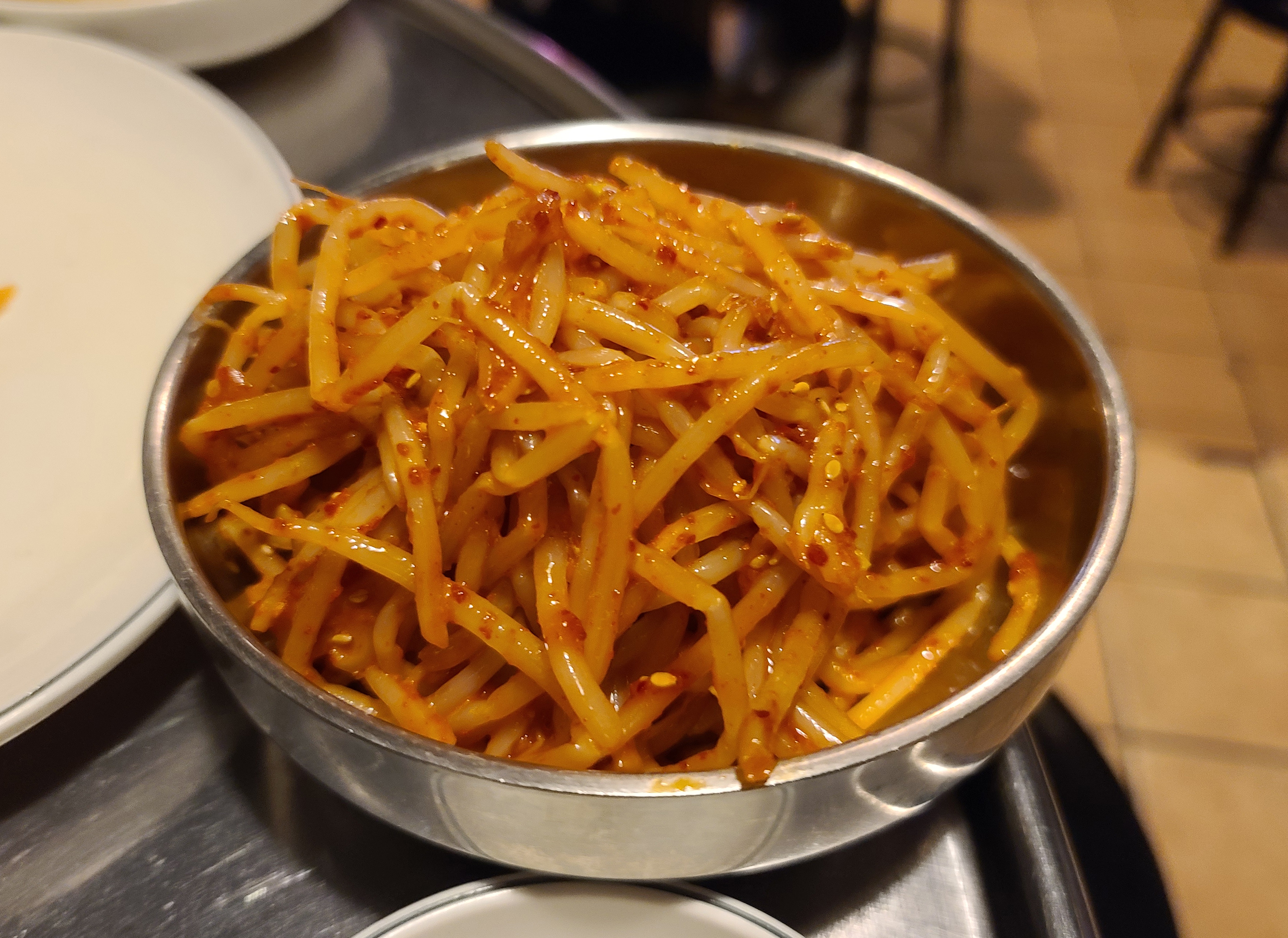 이 날 친구가 고기를 구워줘서, 덕분에 편하게 사진을 찍을 수 있었습니다. 곁들이는 메뉴로 달걀찜과, 김치전, 콩나물무침이 나왔습니다. 특히 콩나물무침은 단짠단짠 한 양념을 콩나물에 무쳐서 아삭아삭 하면서도 고기의 느끼함을 잡아주어 맛있게 먹을 수 있었습니다.