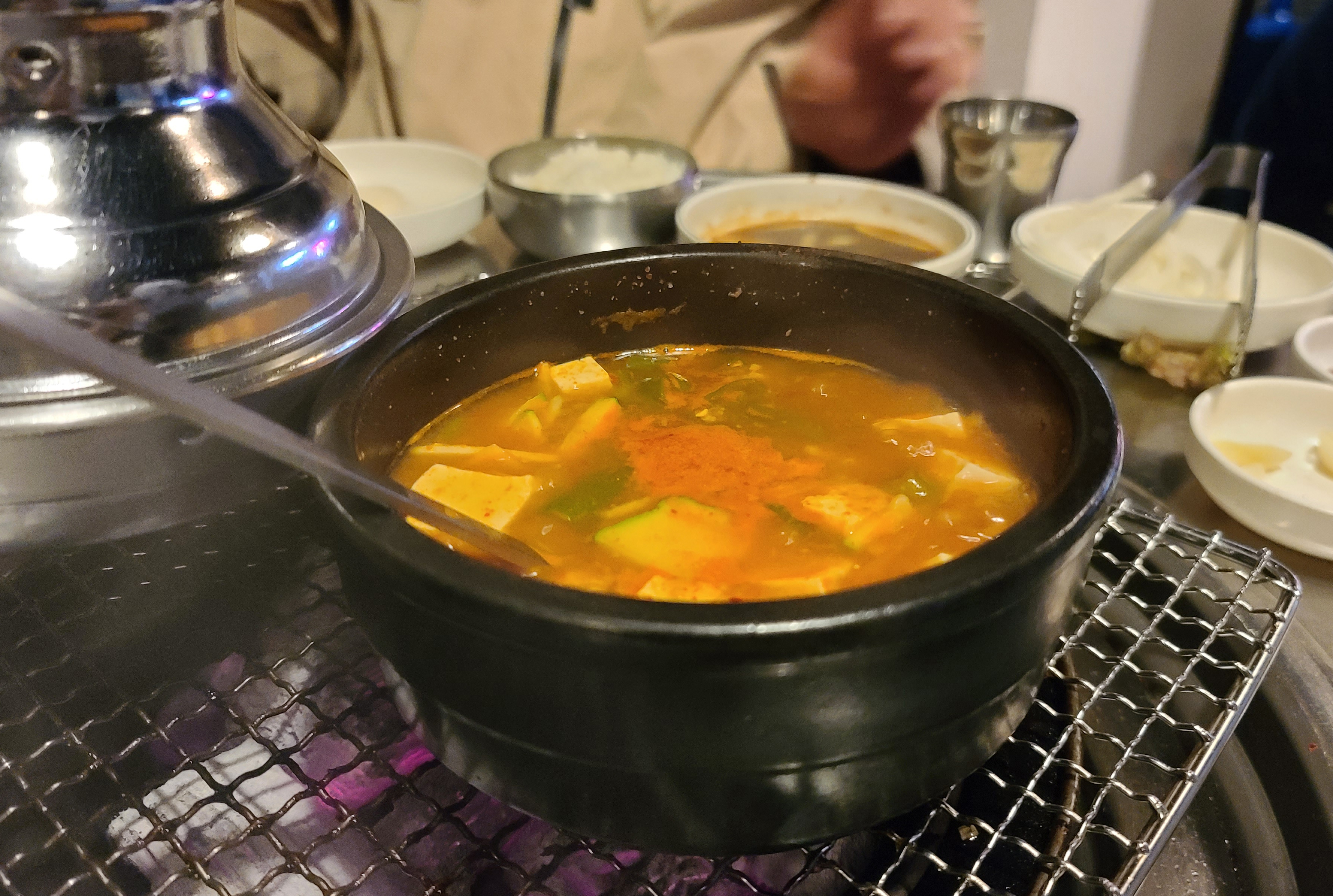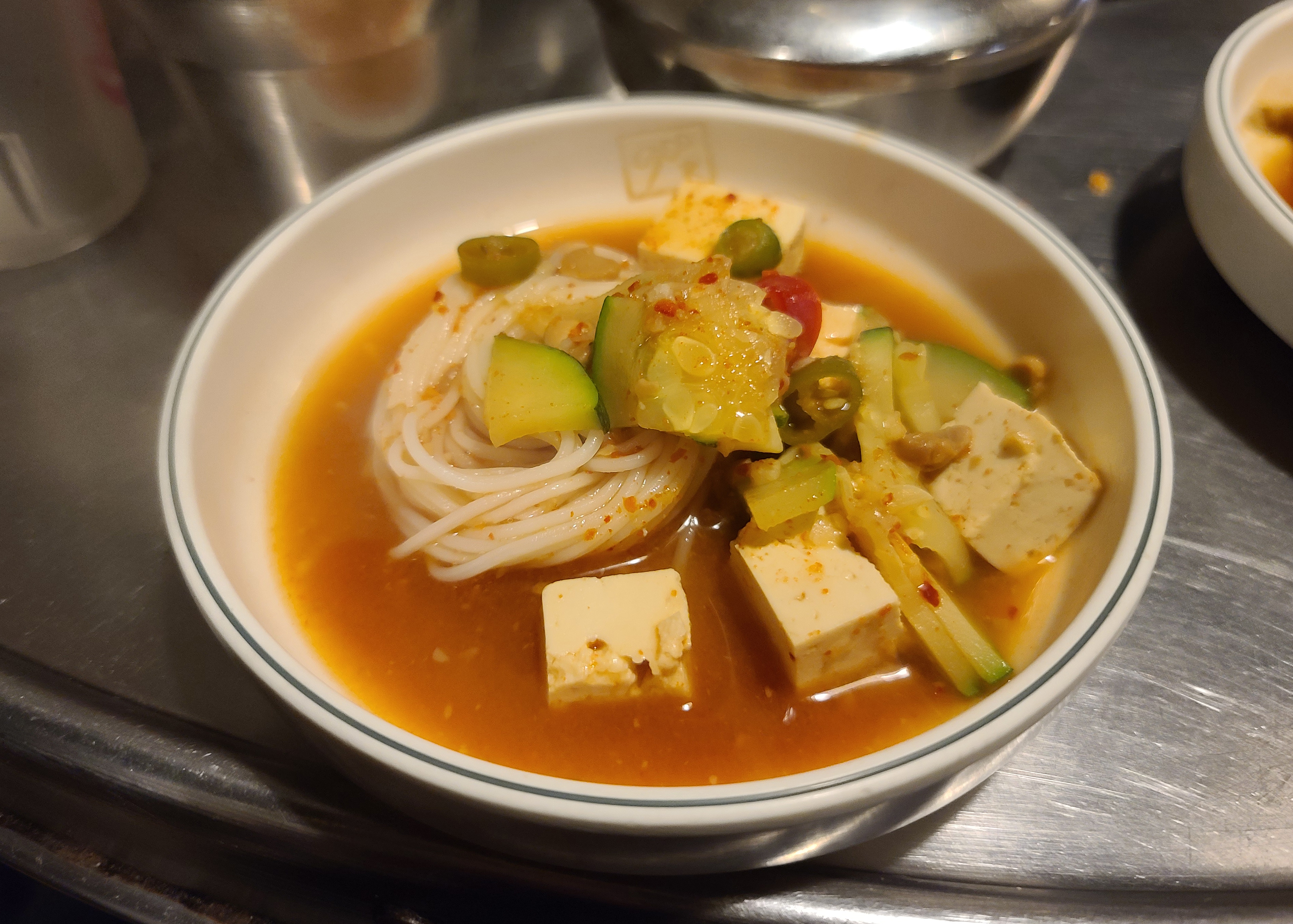 끝에 식사로 된장찌개에 공기밥을 주문하여 먹었는데, 칼칼하게 끓여낸 된장찌개는 호박과 고추로 맛을 내었고, 두부도 송송 썰어 넣어 맛이 좋았습니다. 함께 준 소면을 된장에 말아서 먹었고, 공기밥에 먹으니 한 공기 금세 사라지더라고요.
