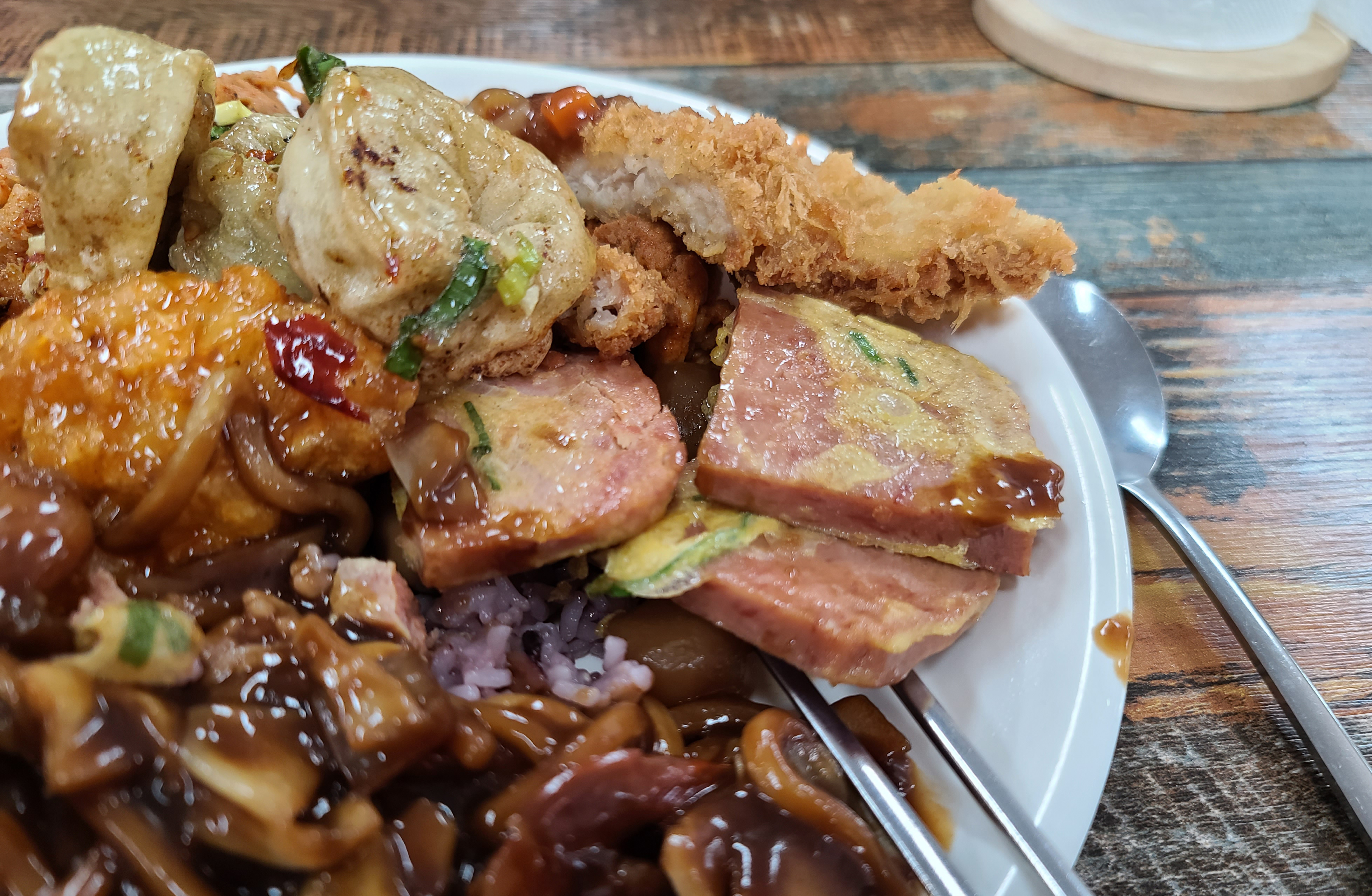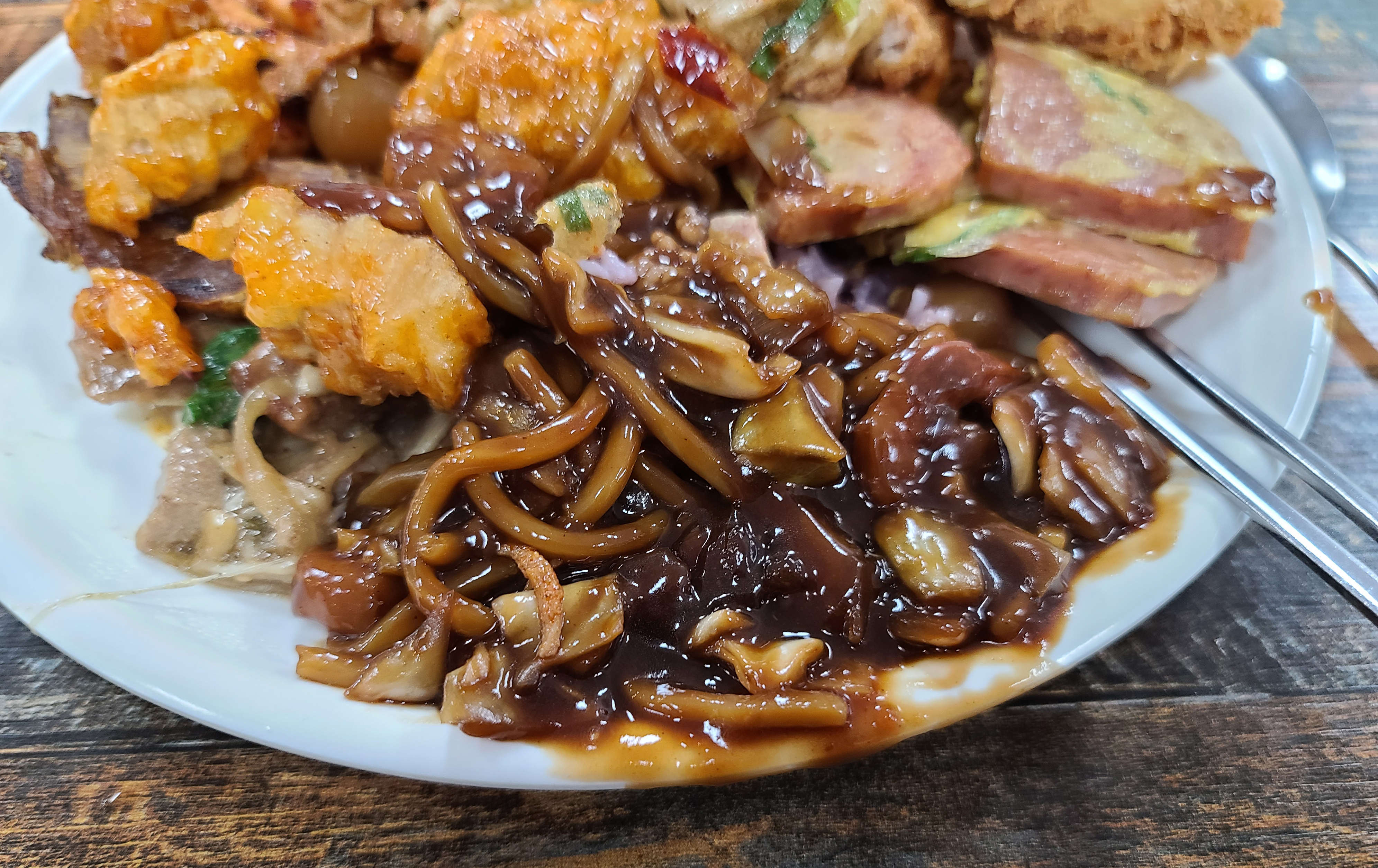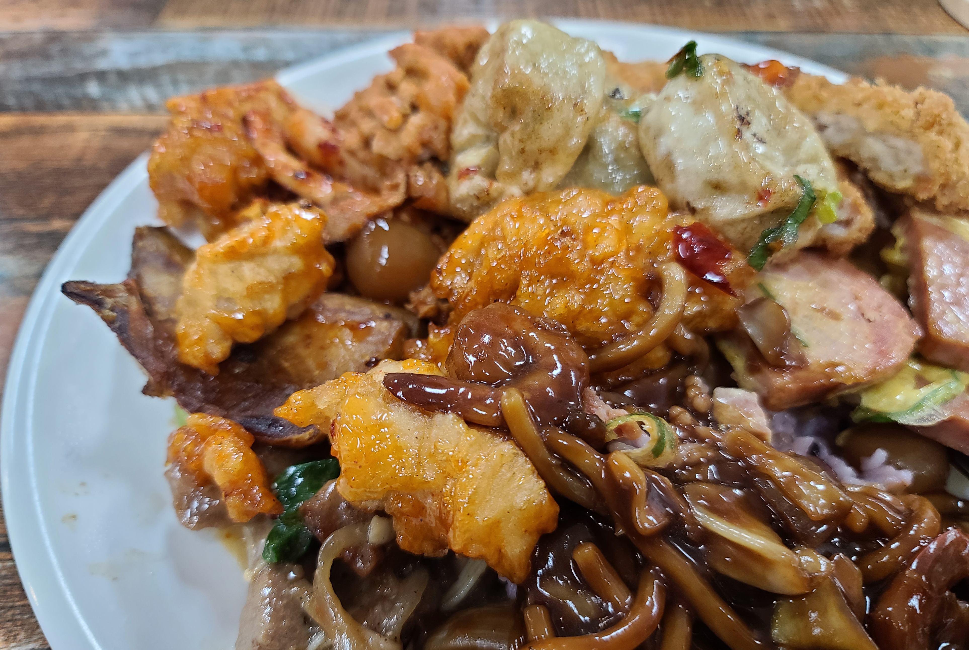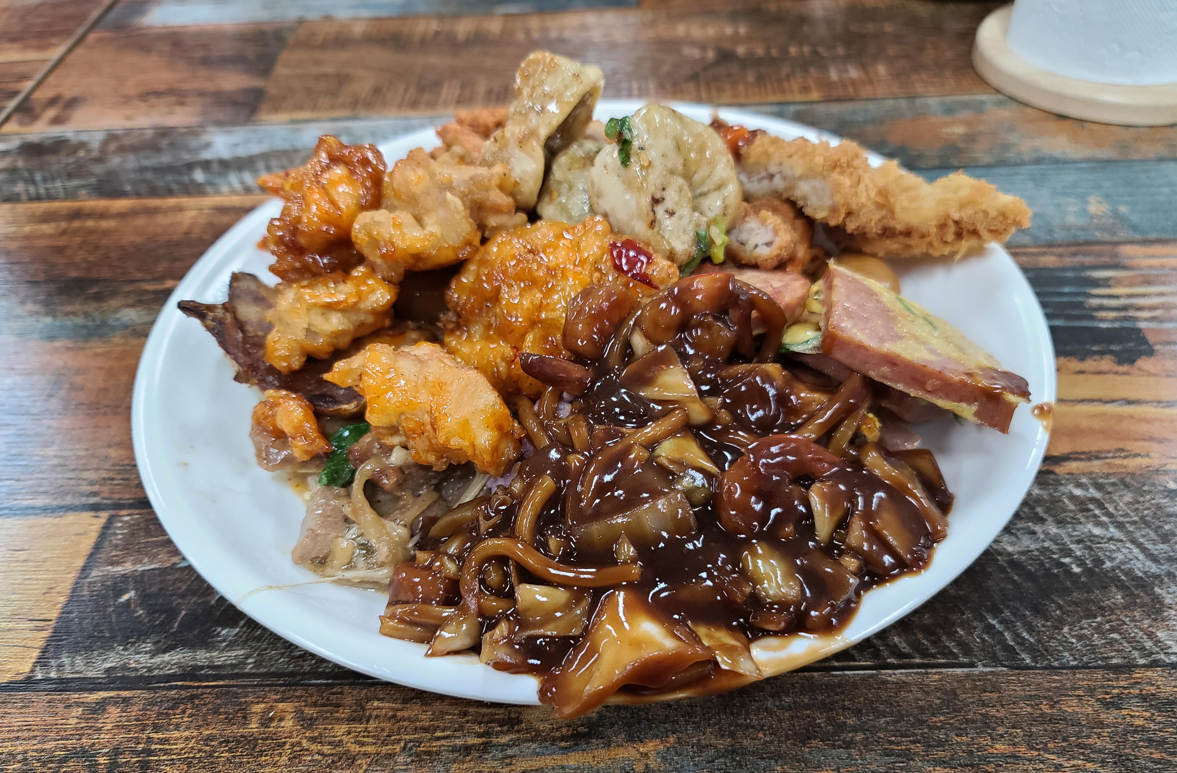 저는 제가 즐겨먹는 고기반찬 위주로 메뉴를 골라 담았는데, 한 접시 푸짐하게 담으니 보기만 해도 배가 부를 지경입니다. 이 날 나온 메뉴는 제육볶음, 햄 부침, 군만두, 닭튀김, 짜파게티, 메추리알곤약조림, 돈까스, 오징어・어묵볶음 등이 나왔는데 6,000원이라는 금액에 반찬의 가짓수도 많고, 각 메뉴들이 다 맛있어서 따로 불평을 늘어놓을 이유가 없을 것 같더라고요.