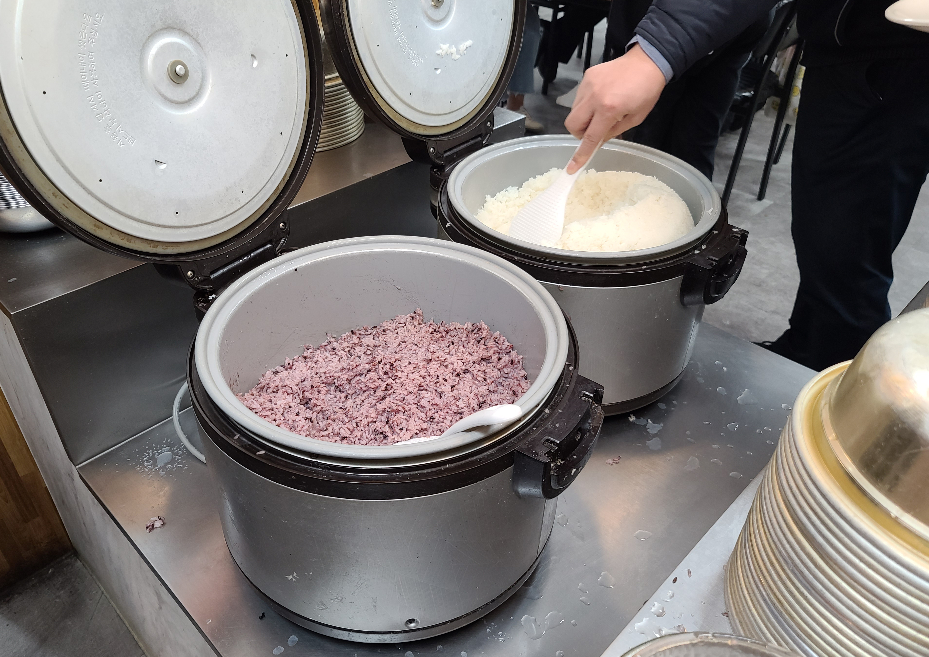 손님이 워낙 많은 관계로 메뉴의 사진을 자세하게 담지는 못했는데, 밥이랑 생선구이, 제육볶음을 비롯해 샐러드, 김치, 젓갈류, 햄, 마른반찬, 튀김류 등 다양한 메뉴들이 있었습니다. 기호에 따라 국과 기타 메뉴를 가져다 먹을 수도 있었는데, 종류도 다양하고 맛도 꽤 괜찮더라고요.