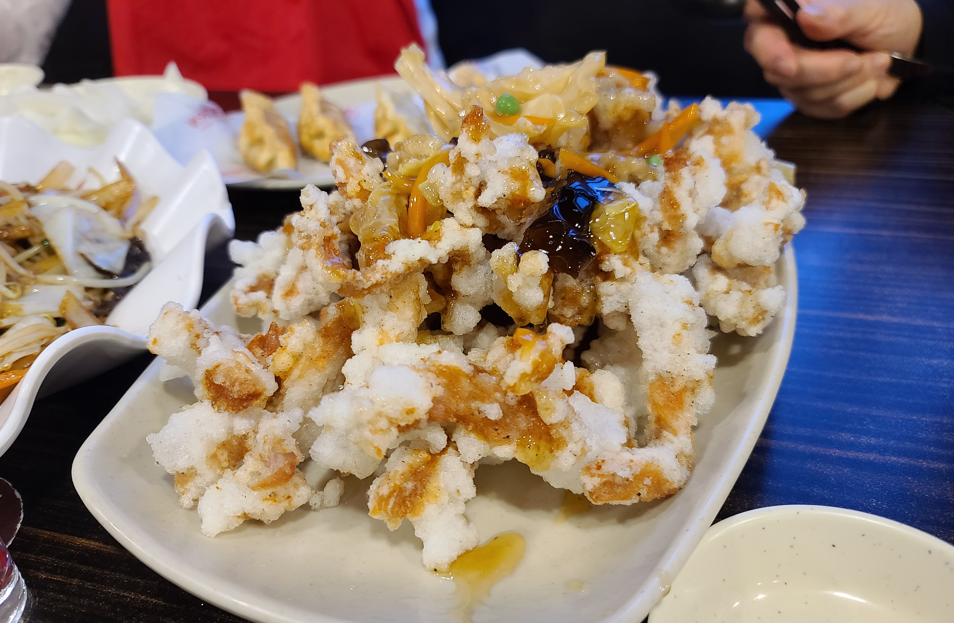 쟁반짜장에는 다양한 해물과 돼지고기 숙주볶음에 들어간 돼지고기가 들어간 메뉴입니다. 쟁반짜장 역시 일반 짜장면과 달리 불맛이 나는 짜장면이며, 맛도 괜찮고 양도 푸짐해 여럿이서 먹기엔 꽤 괜찮은 메뉴입니다. 위의 메뉴들이 제가 홍콩반점을 이용하면 꼭 먹는 메뉴들인데, 이 날은 특별히 깐풍기도 주문했습니다.