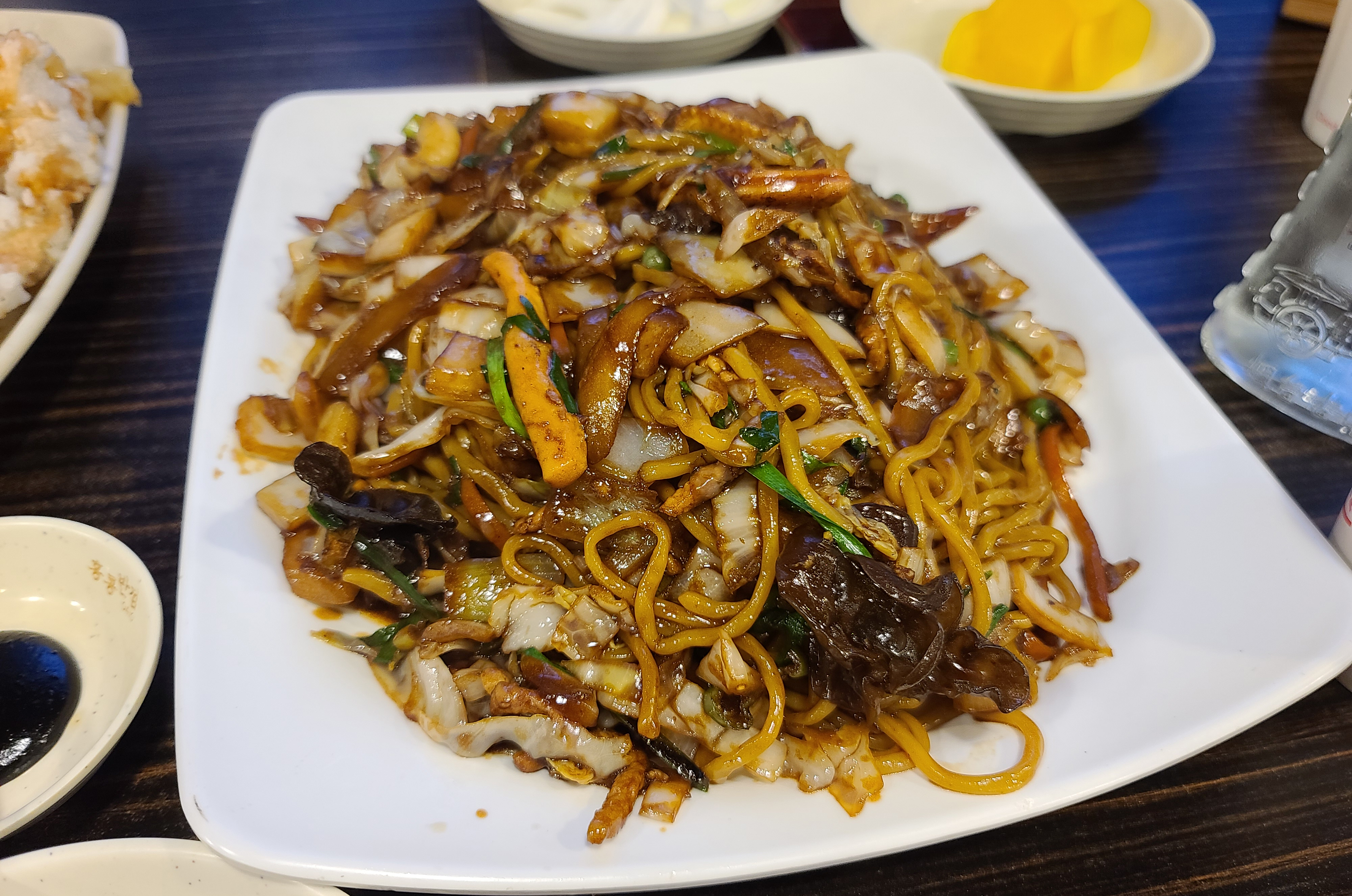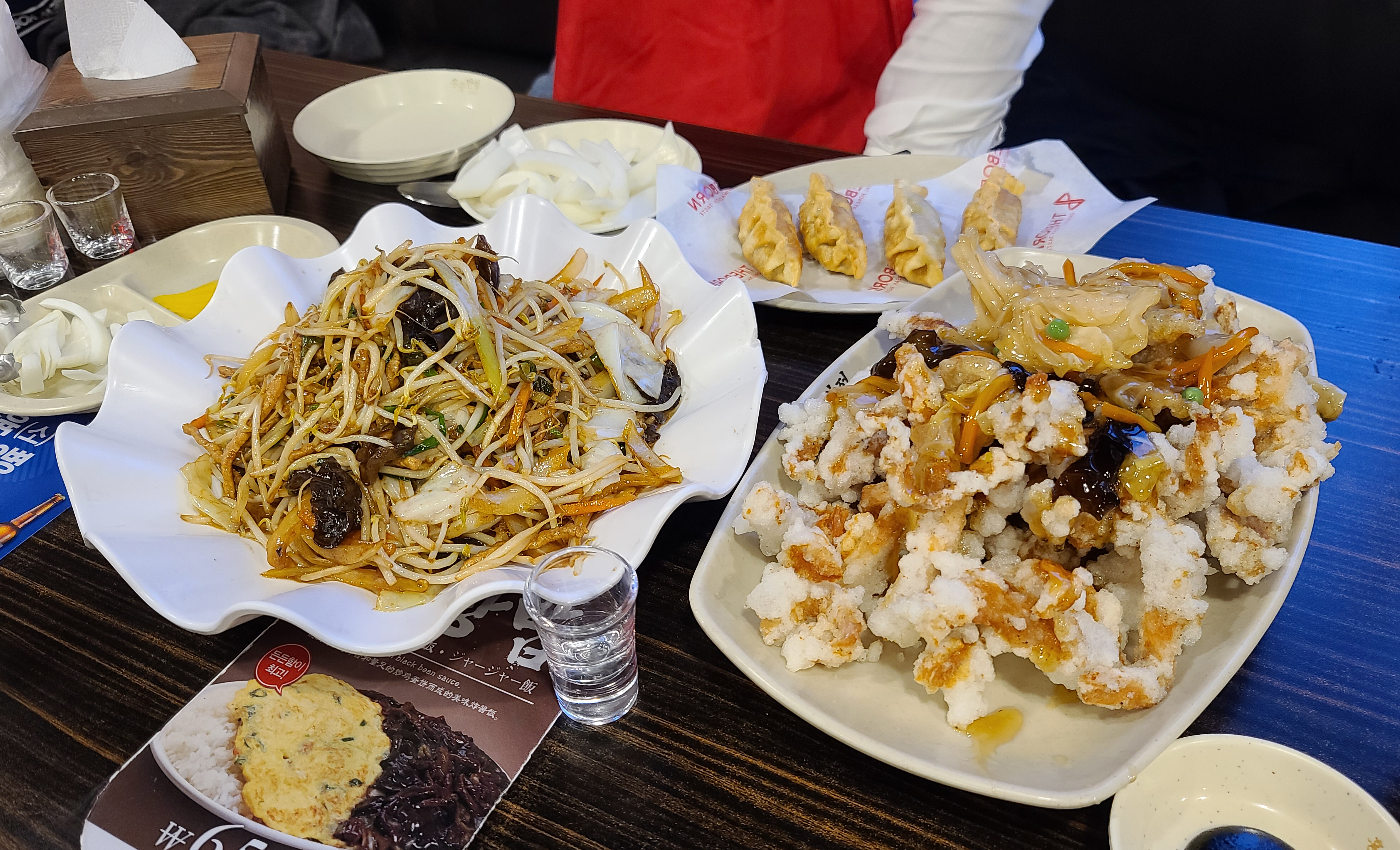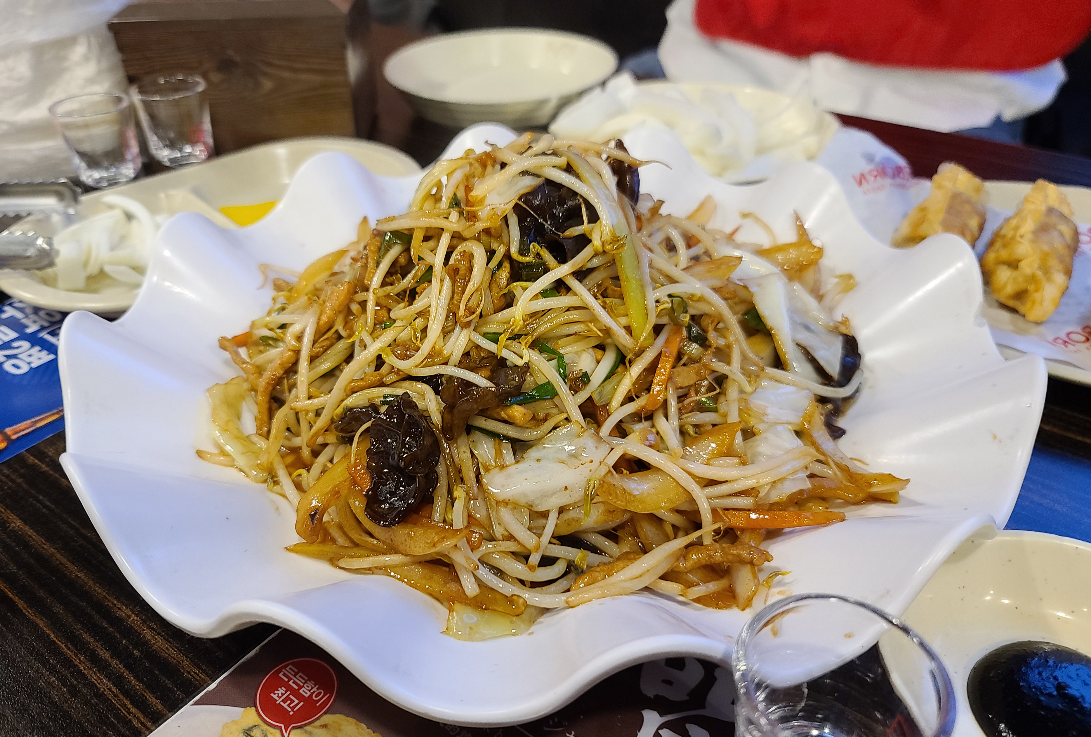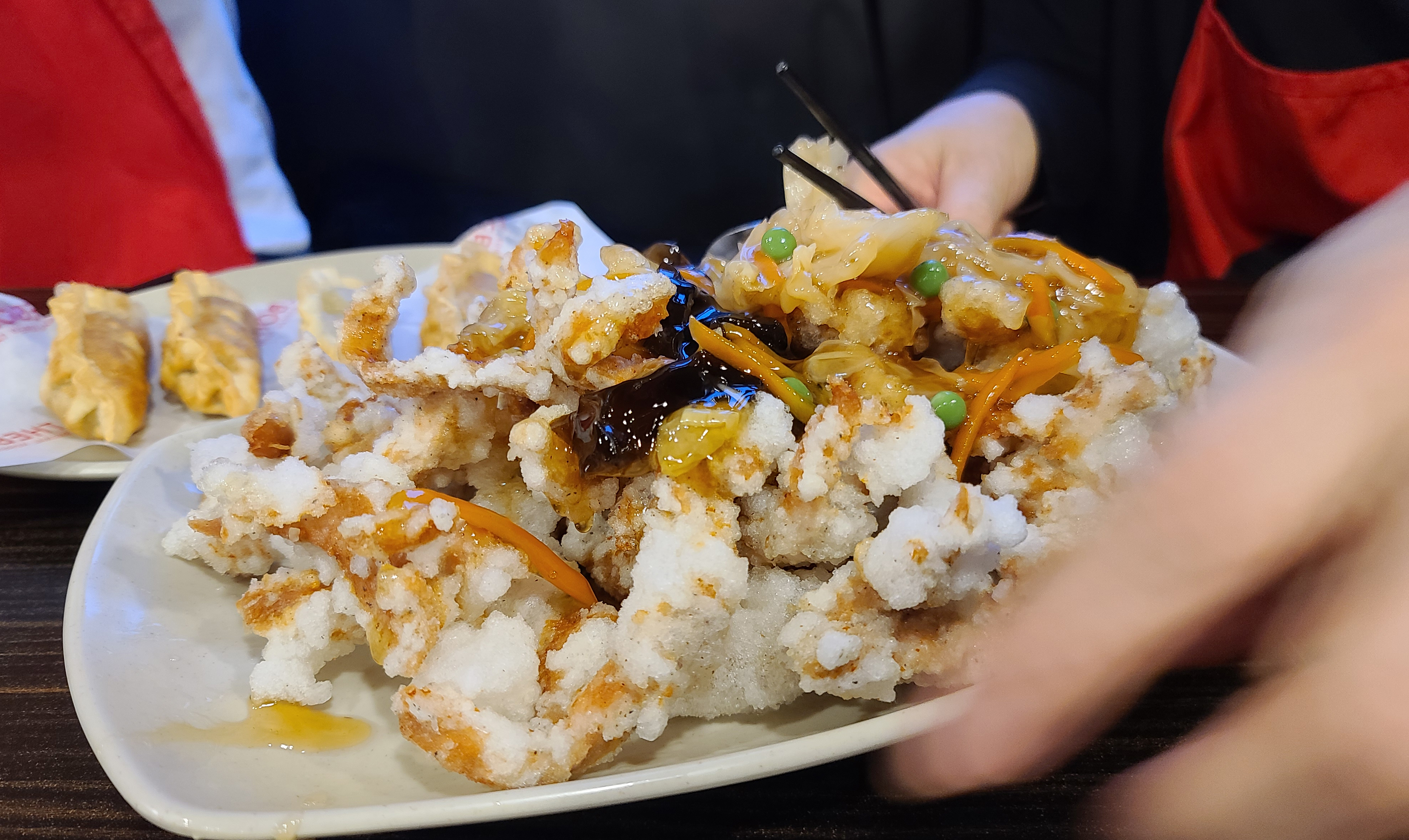 먼저 주문한 메뉴를 살펴보시면, 돼지고기 숙주볶음은 숙주와 양배추, 당근 등 각종 채소들 돼지고기를 불맛 나게 볶아낸 요리입니다. 이게 은근 짭짤하면서 자꾸 당기는 메뉴이죠. 군만두는 다양한 메뉴를 주문했더니, 서비스로 나왔습니다.