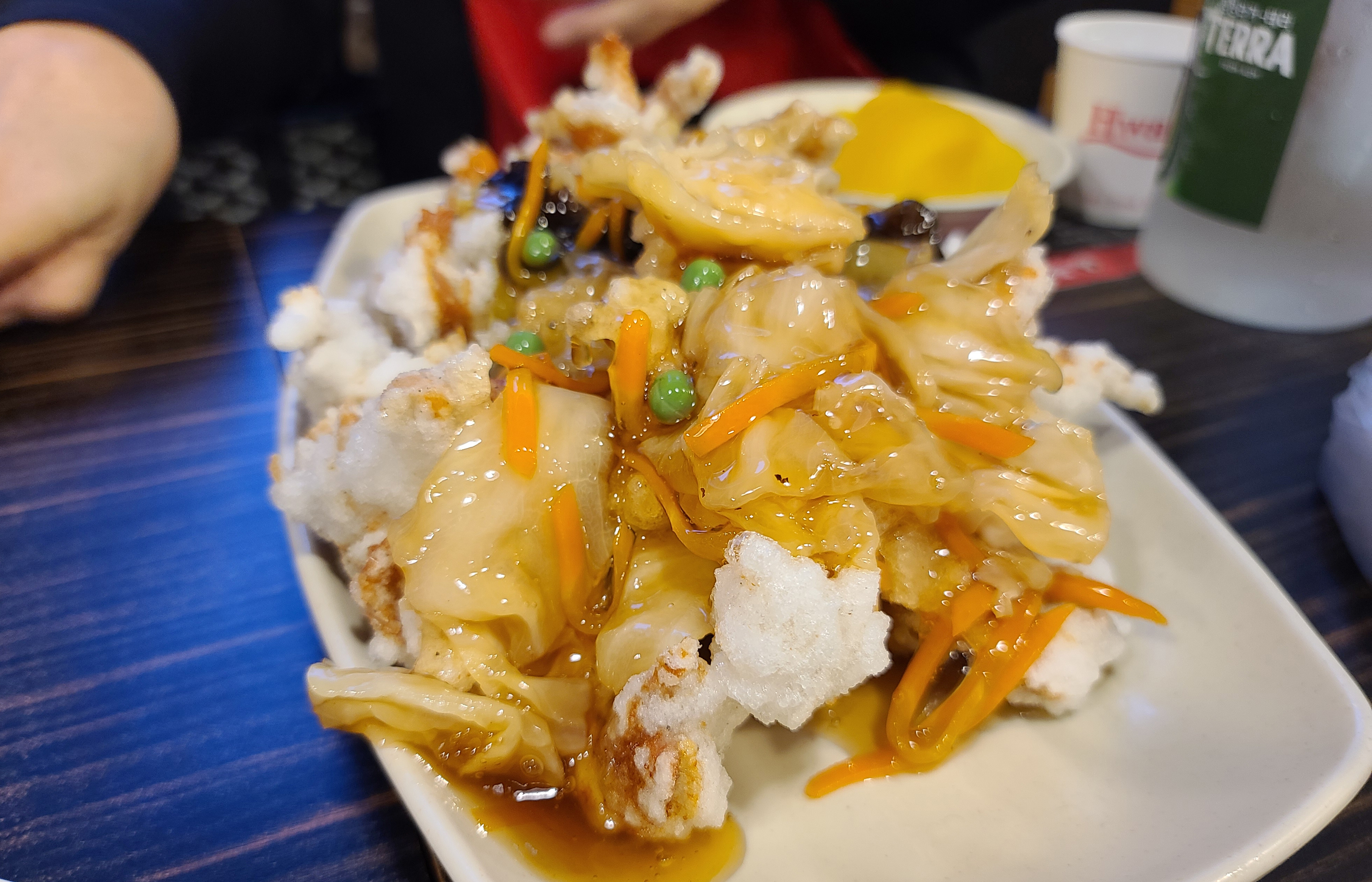 다음으로 나온 메뉴는 탕수육인데, 요즘 홍콩반점의 꿔바로우 보다 탕수육에 더 높은 점수를 주고 있습니다. 꿔바로우가 금세 딱딱해지는 경향도 있고, 탕수육이 찹쌀을 이용해서 더 바삭하고 맛있었기 때문입니다. 찍먹을 좋아하는데, 선택의 여지없이 부어져 나오는 게 아쉬운 점이 있었습니다.