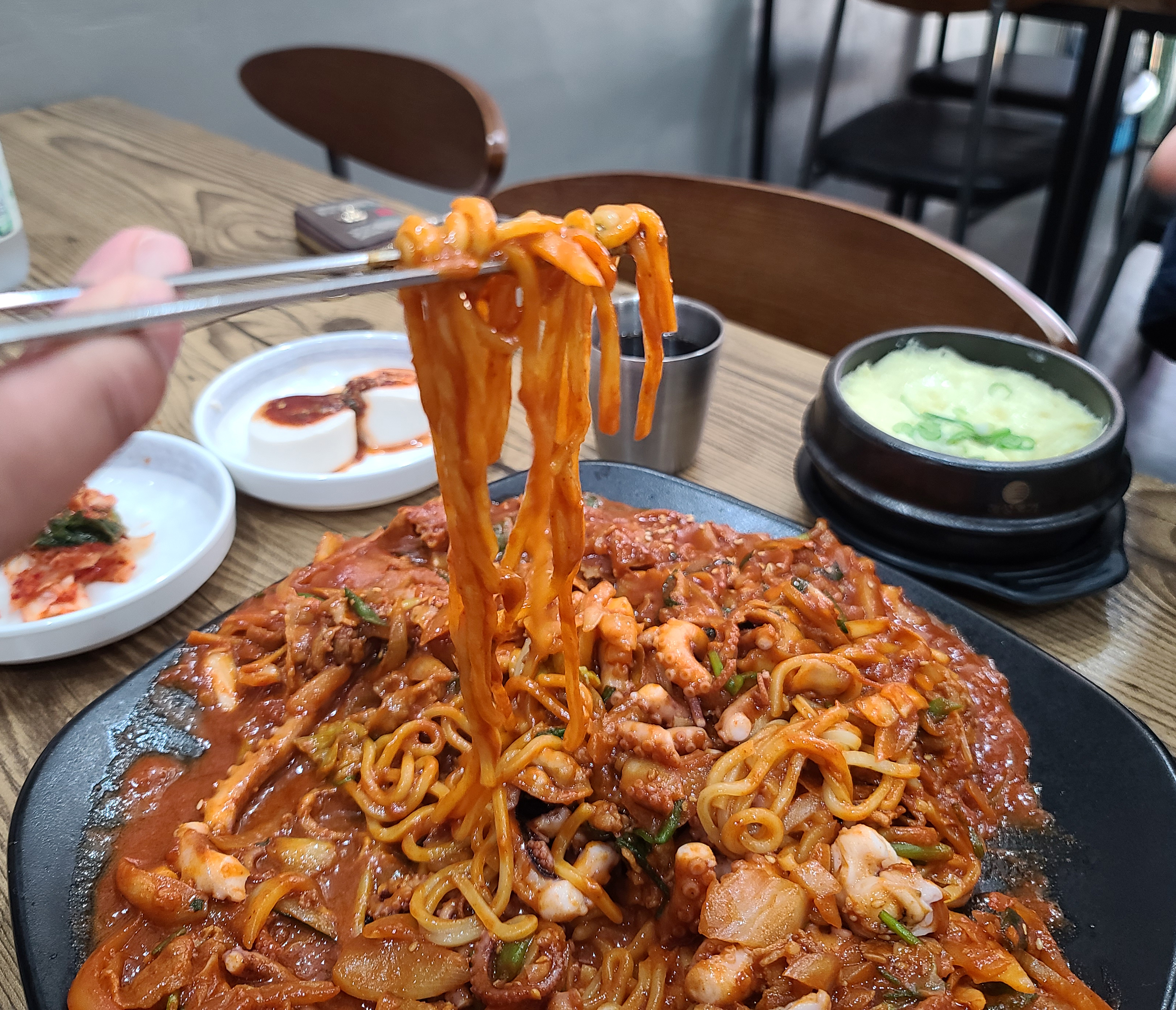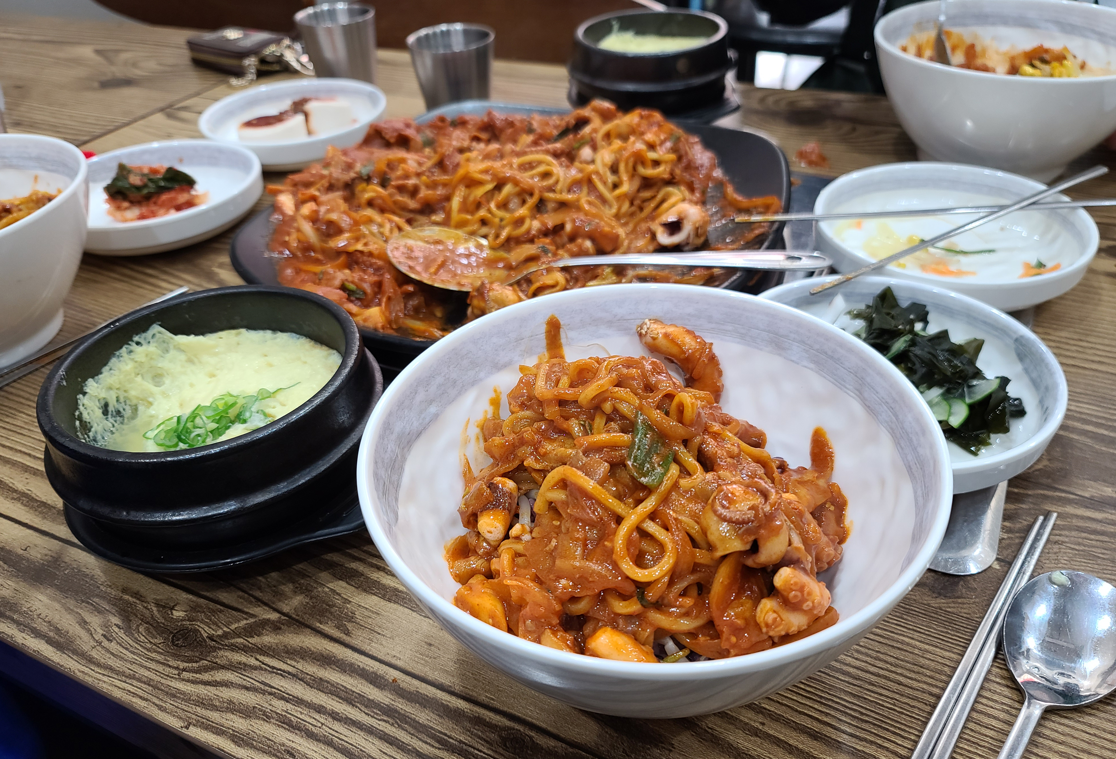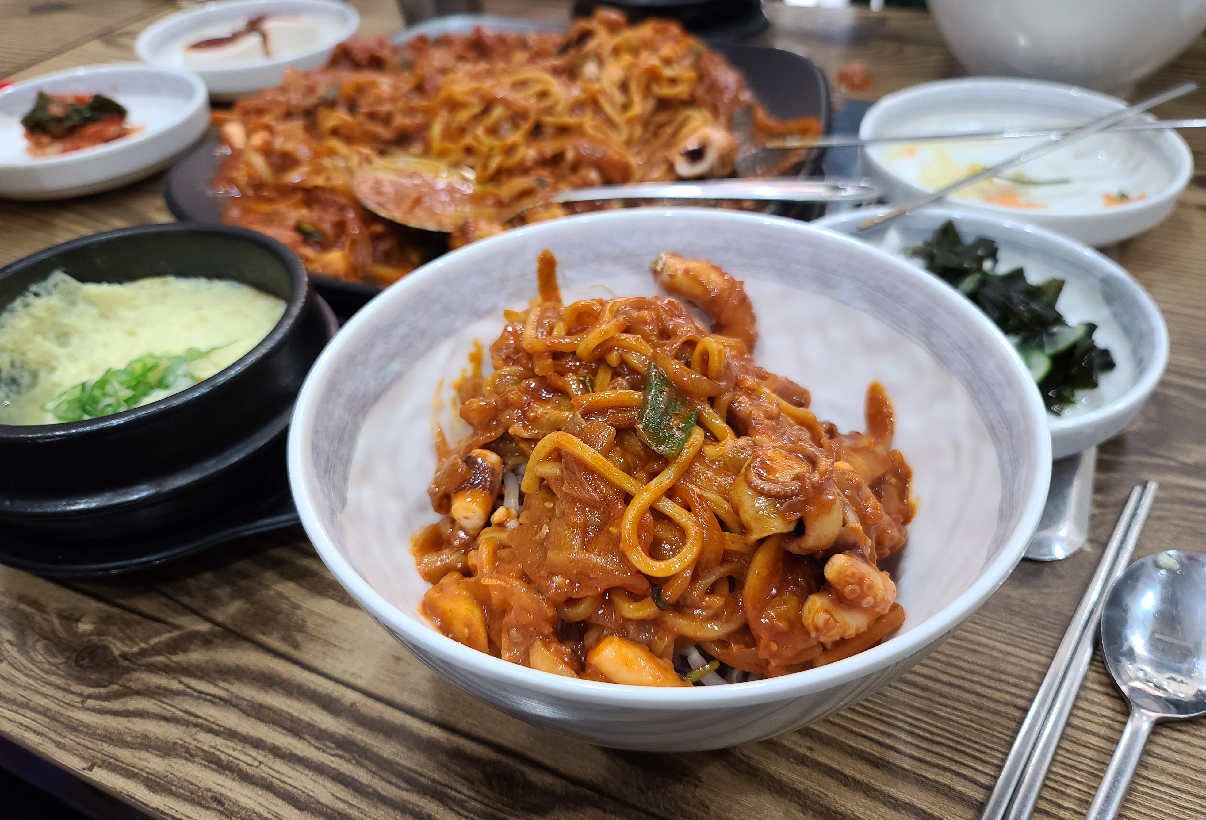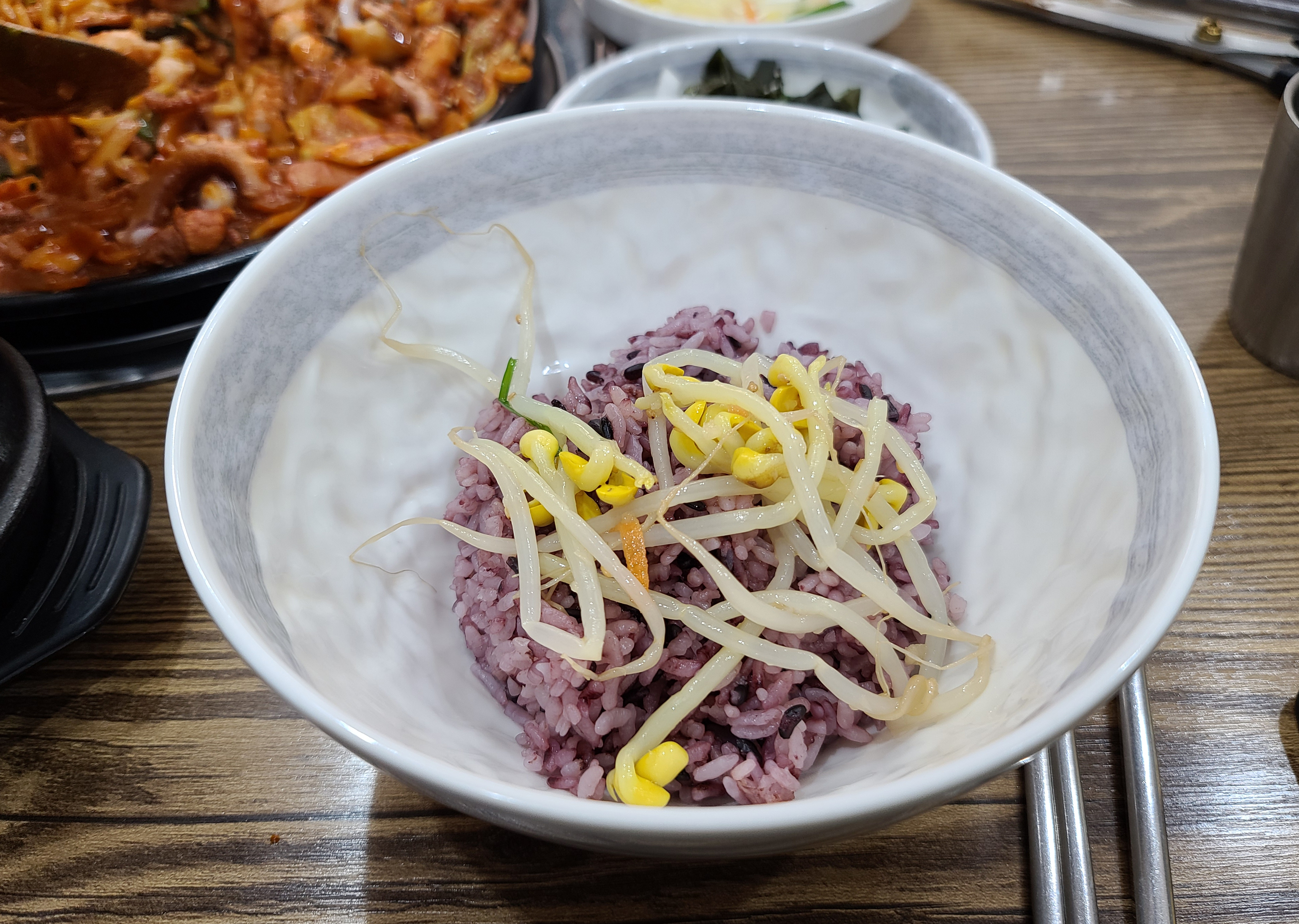낙지볶음 매운맛을 주문했더니, 생각보다 많이 맵더라고요. 나중에는 입안이 얼얼해져서 밥 위에 순두부를 넣고 으깨서 매운맛을 조금 중화시켜서 먹었죠. 그래도 역시 재방문할 가치가 있었던 게, 같이 간 지인들도 낙지볶음을 매워하면서도 맛있게 먹었기 때문입니다.