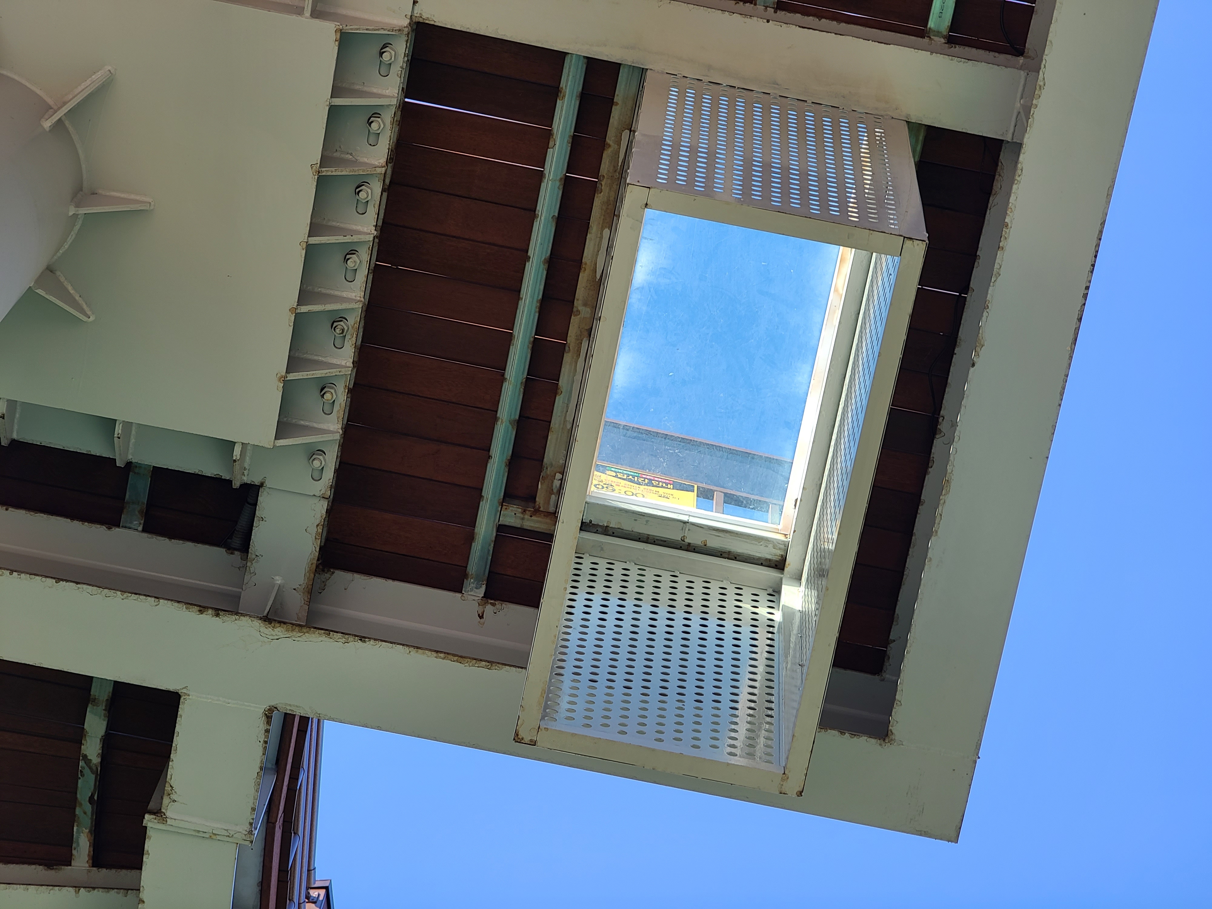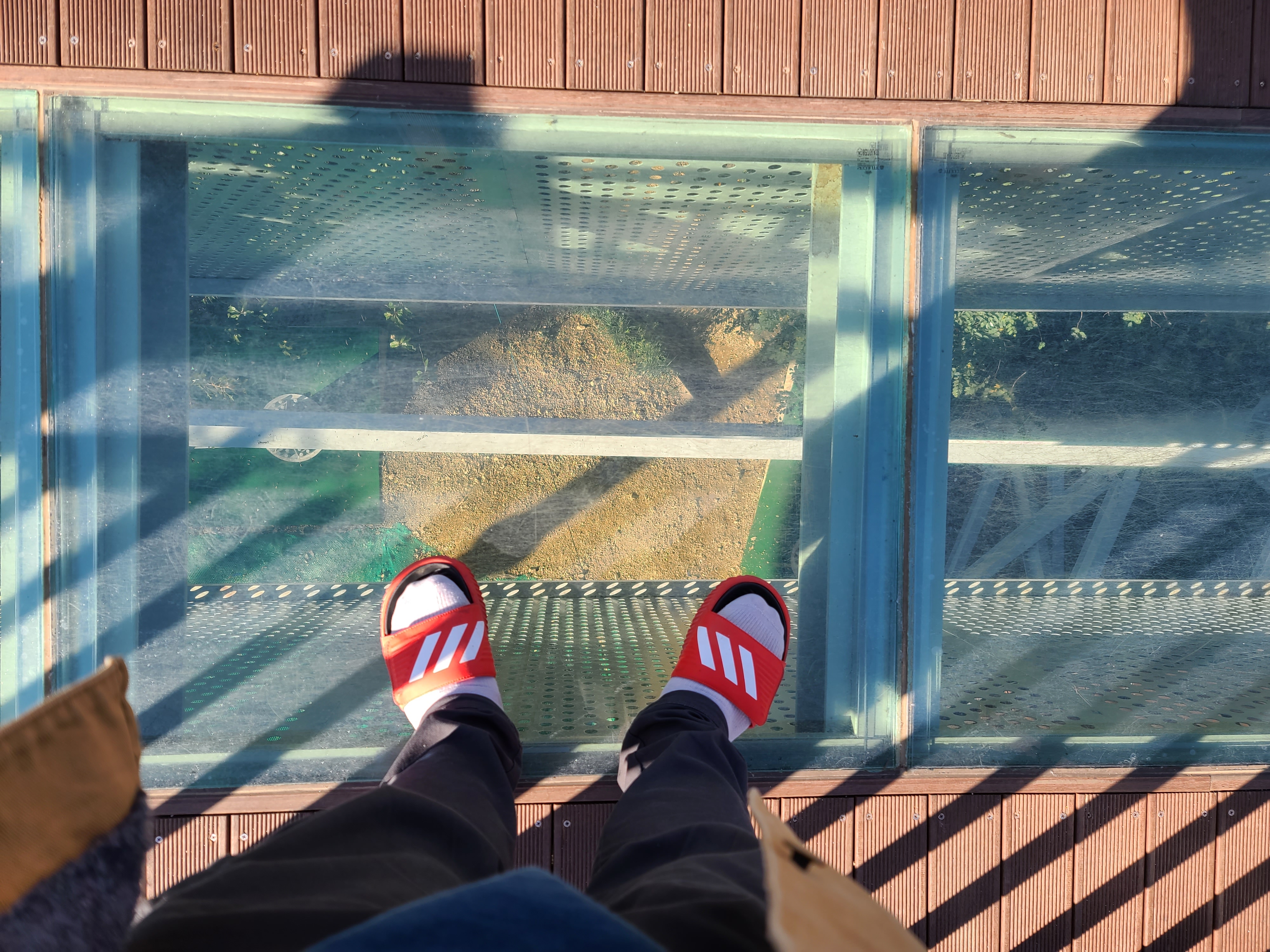 전망대 곳곳에 위와 같이 투명한 유리로 다리를 만들어 전망대 높이를 실감 나게 해 주었답니다. 작은 크기와 충분한 두께로 만들어진 유리는 저같이 체중이 많이 나가는 사람의 무게도 거뜬히 버텨주었습니다.