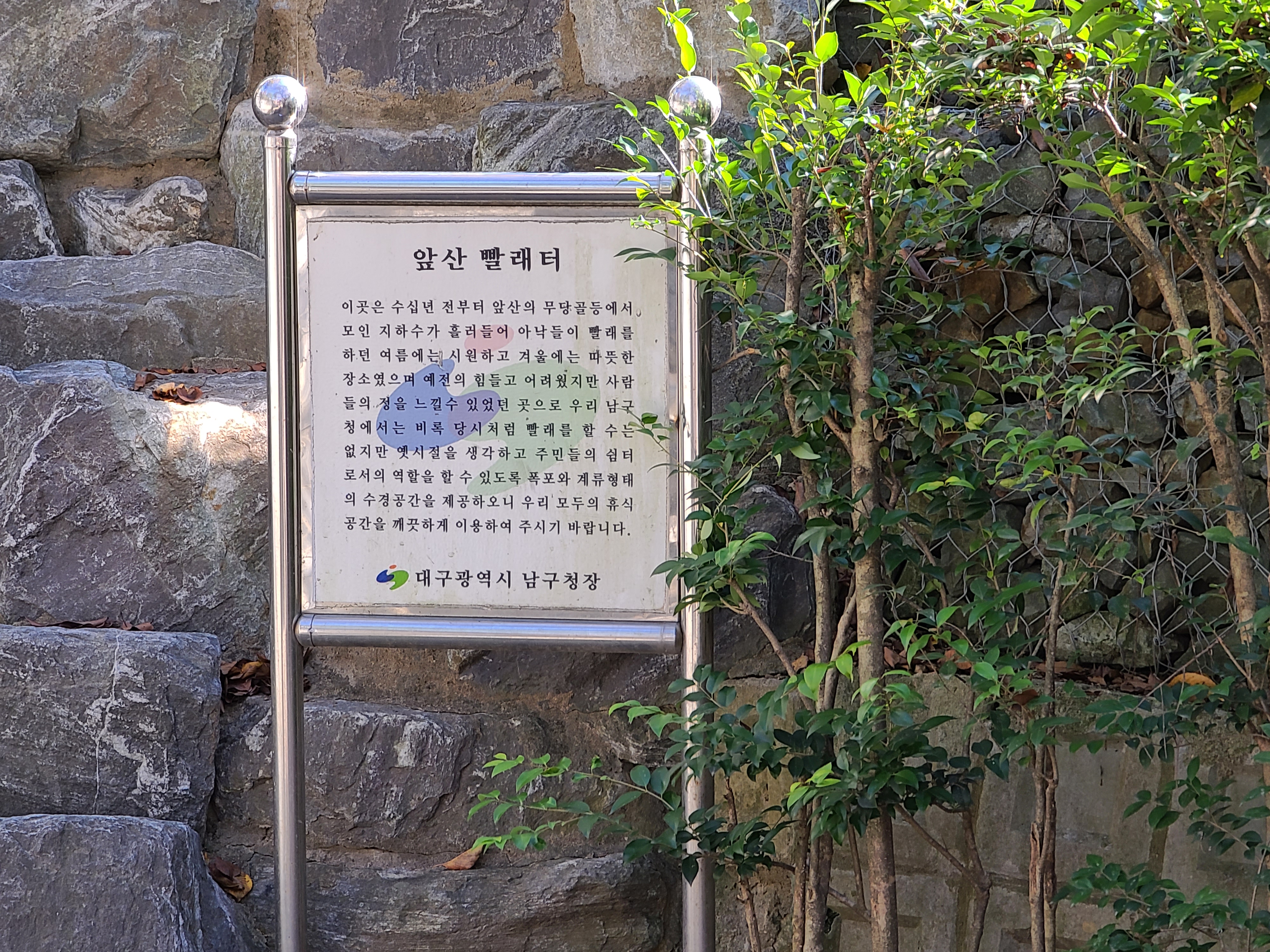 빨래터공원은 수십 년 전부터 아낙들이 빨래하던 곳으로 힘들고 어려운 시기에 사람들의 정을 느낄 수 있었던 장소였다고 합니다. 물론 지금은 빨래터라는 이름만 남아있지만, 주민들의 휴식공간으로 남아있는 공원이었습니다.