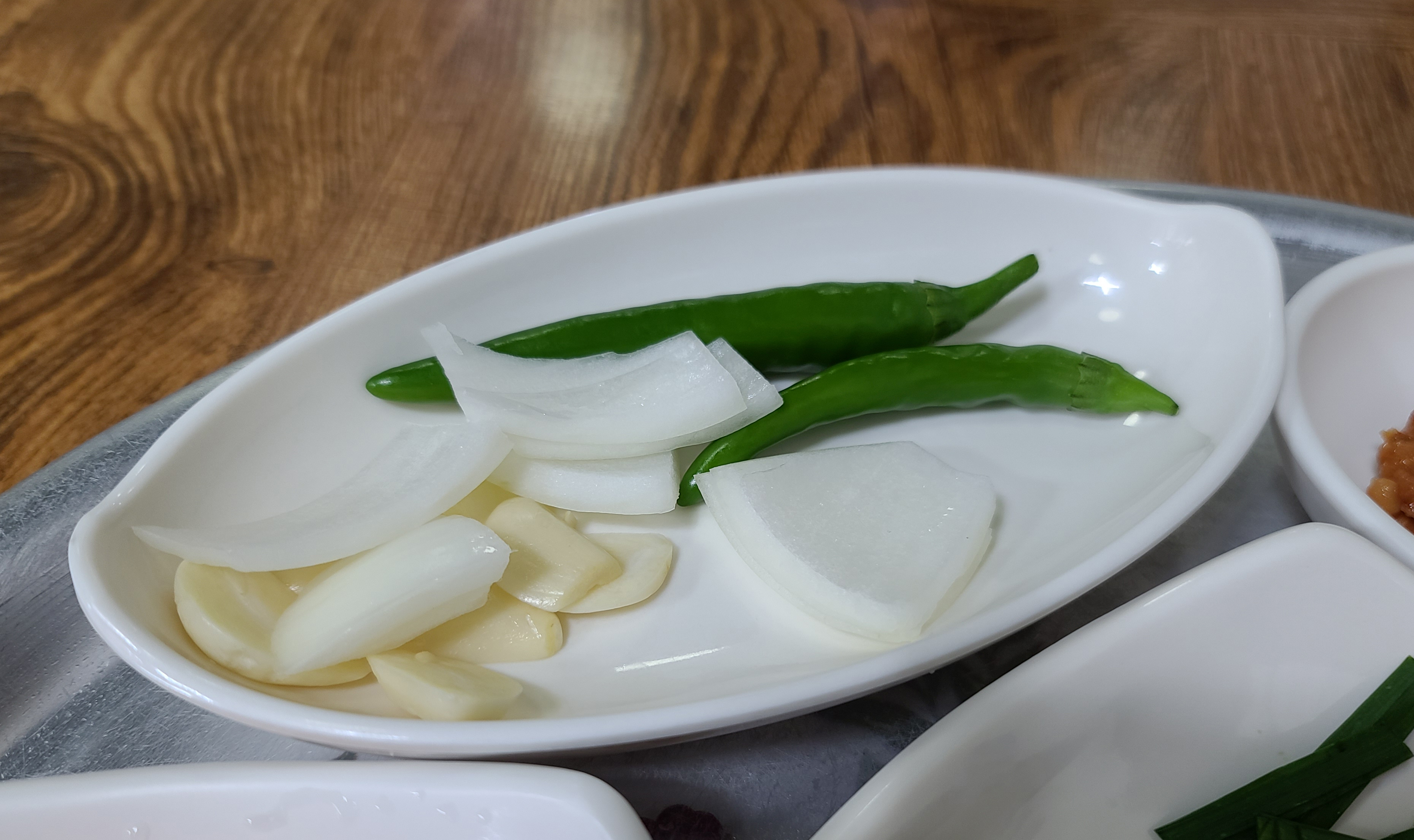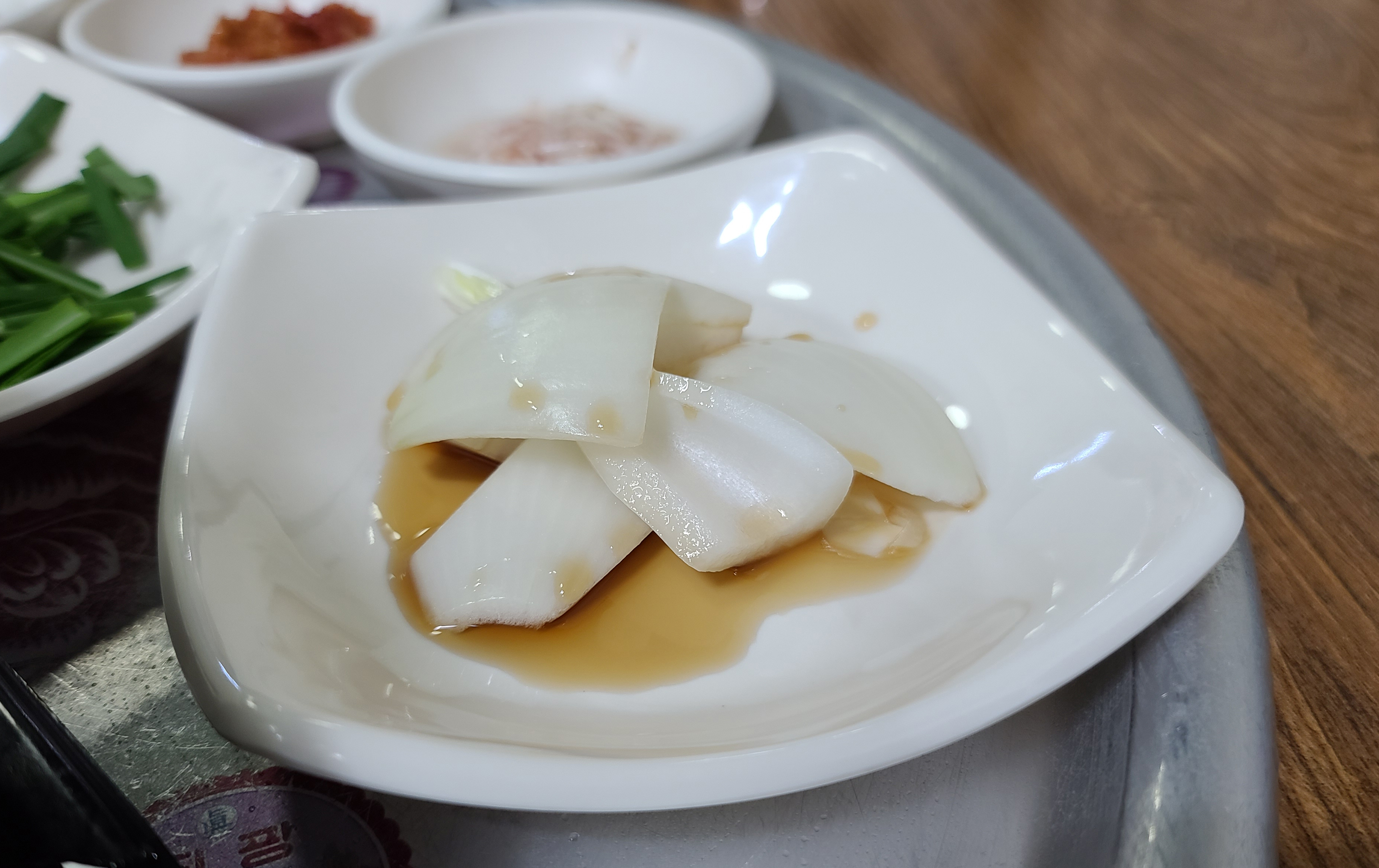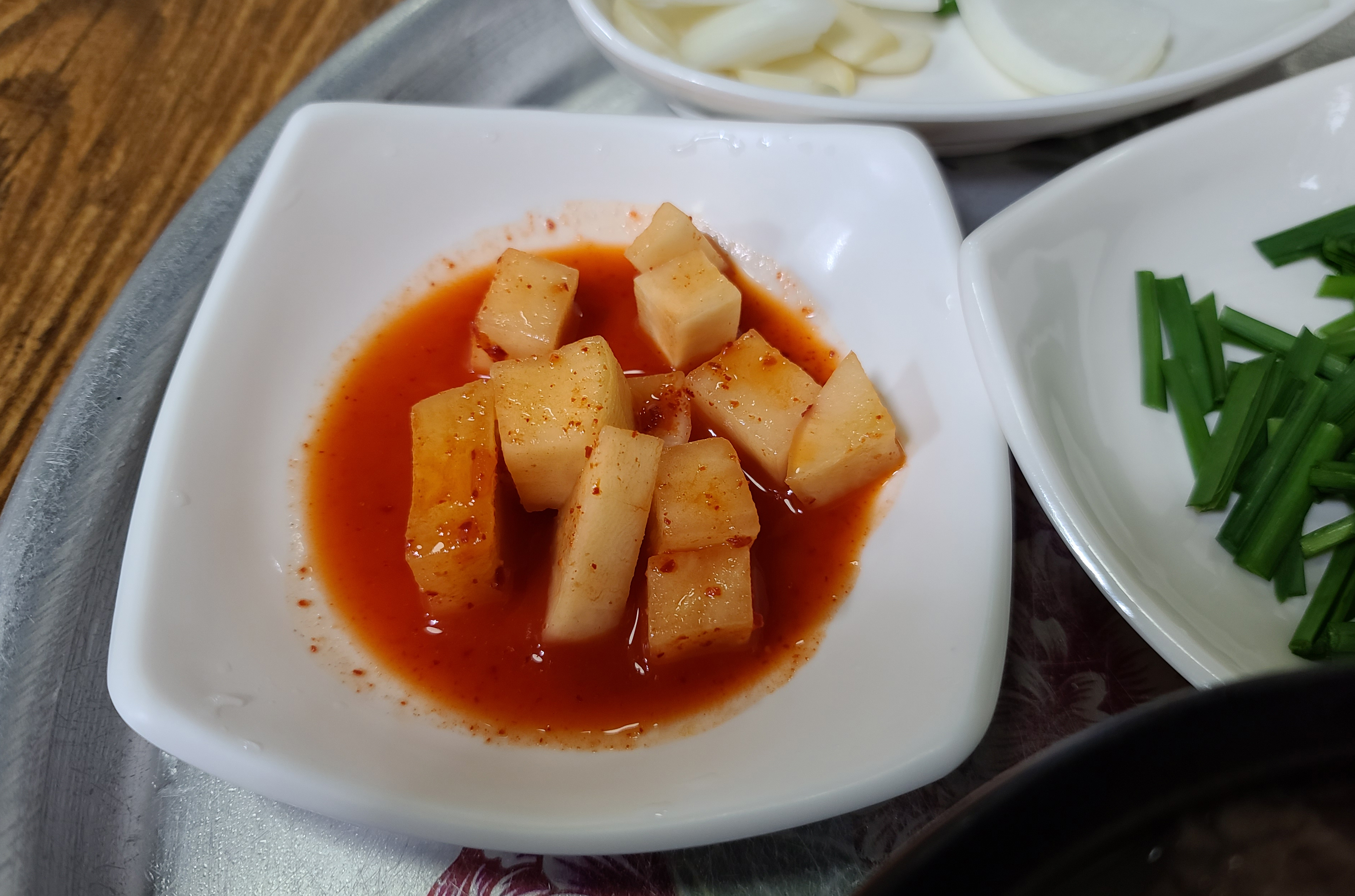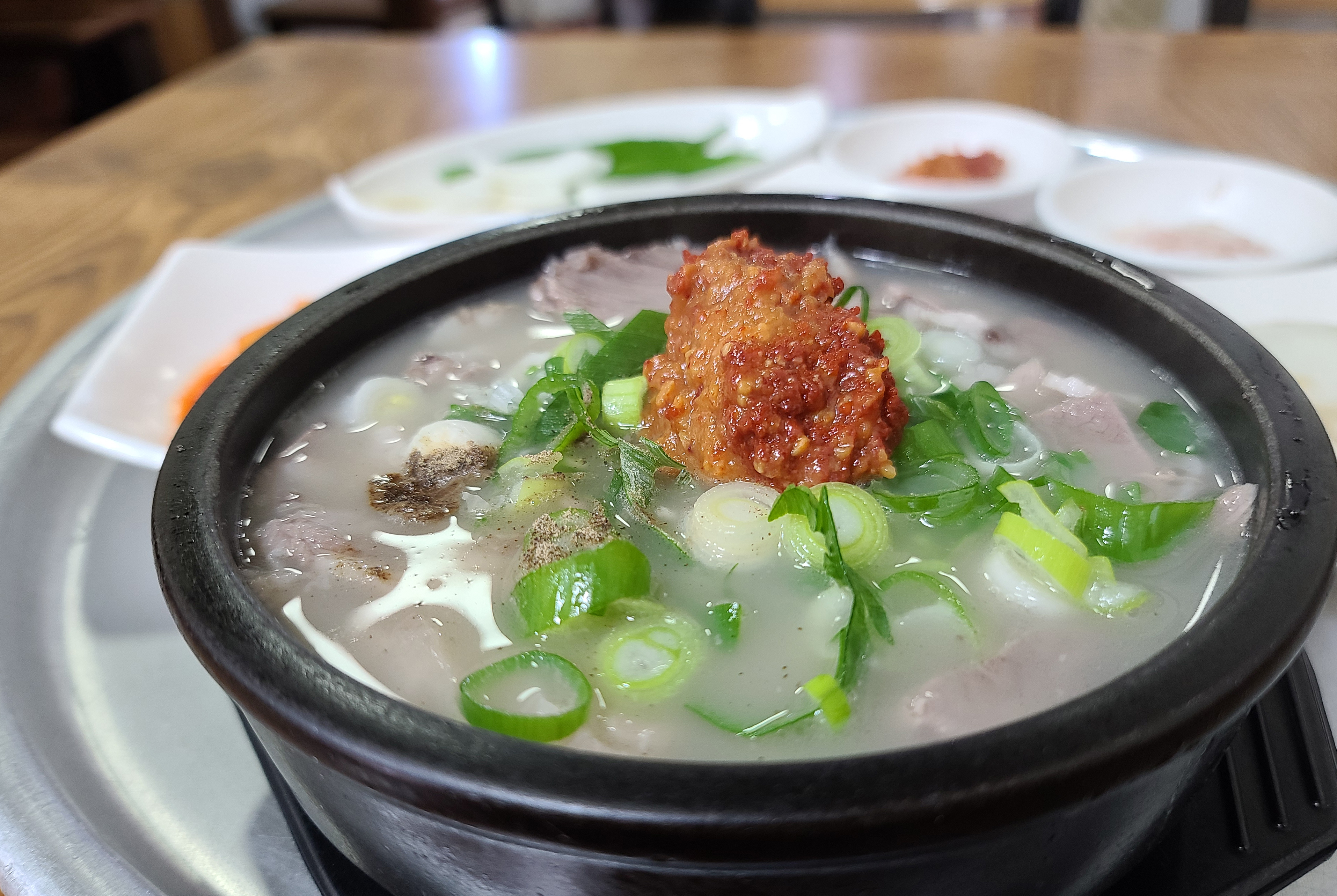 돼지국밥과 반찬들은 정말 흠잡을 데 없이 깔끔한 상태에 제공되었고, 봉덕시장 깍두기보다 더 맛있게 담근 깍두기가 입맛을 사로잡았습니다. 그밖에도 국밥 위에 깔끔한 맛을 더해줄 부추도 곁들일 수 있었고, 시장 돼지국밥과 차이점이 있다면 고기가 좀 퍽퍽하고 양이 좀 적은 듯하더라고요.