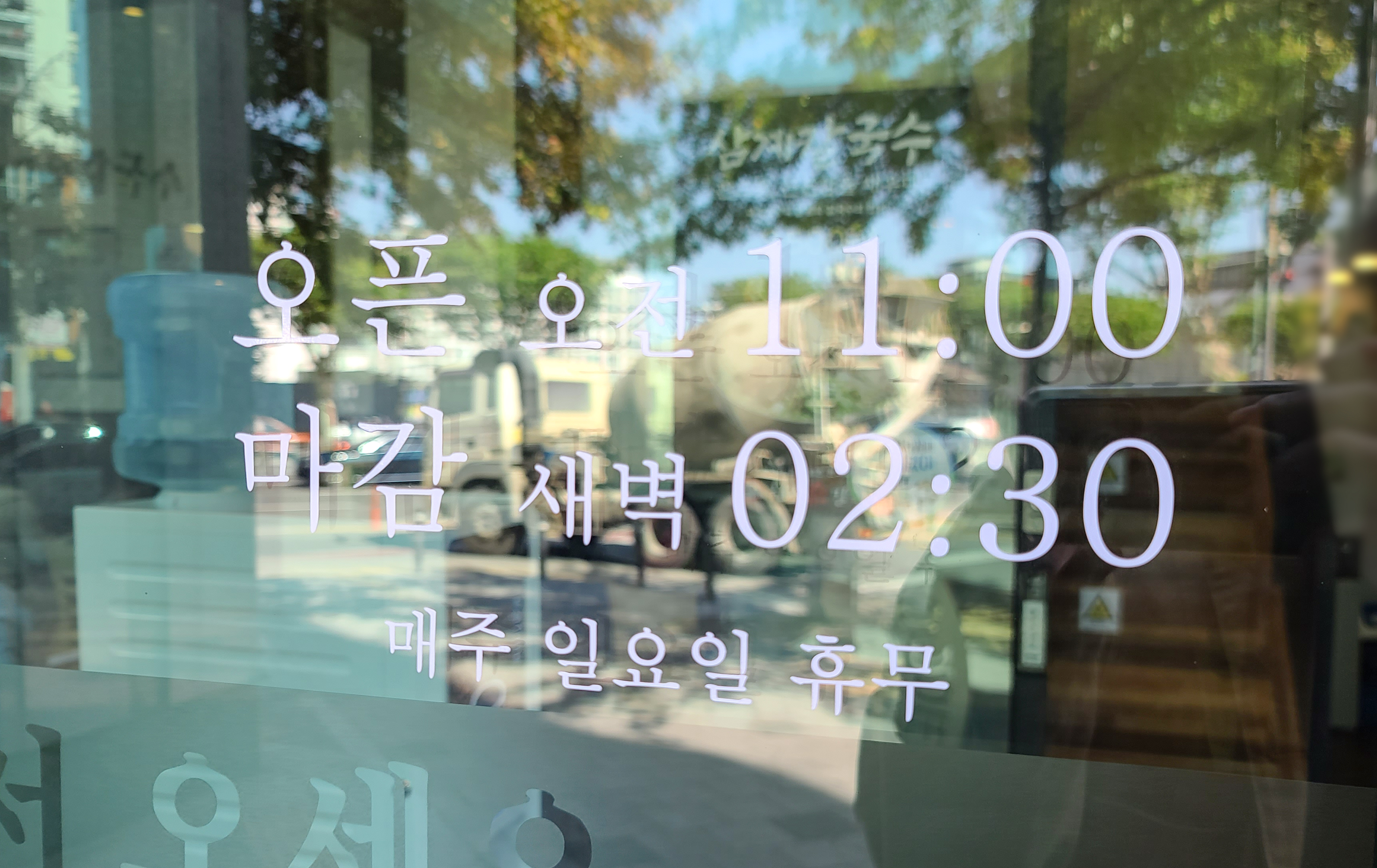 두산동 황금네거리점 현풍닭칼국수의 영업시간은 11:00~ 02:30 까지로 새벽까지 영업을 하고 있었습니다. 매주 일요일은 휴무로 운영중인 가게였습니다. 제가 방문했을 때 손님들이 많은것을 보니, 맛도 어느정도 괜찮은 것 같아 보이더라고요.