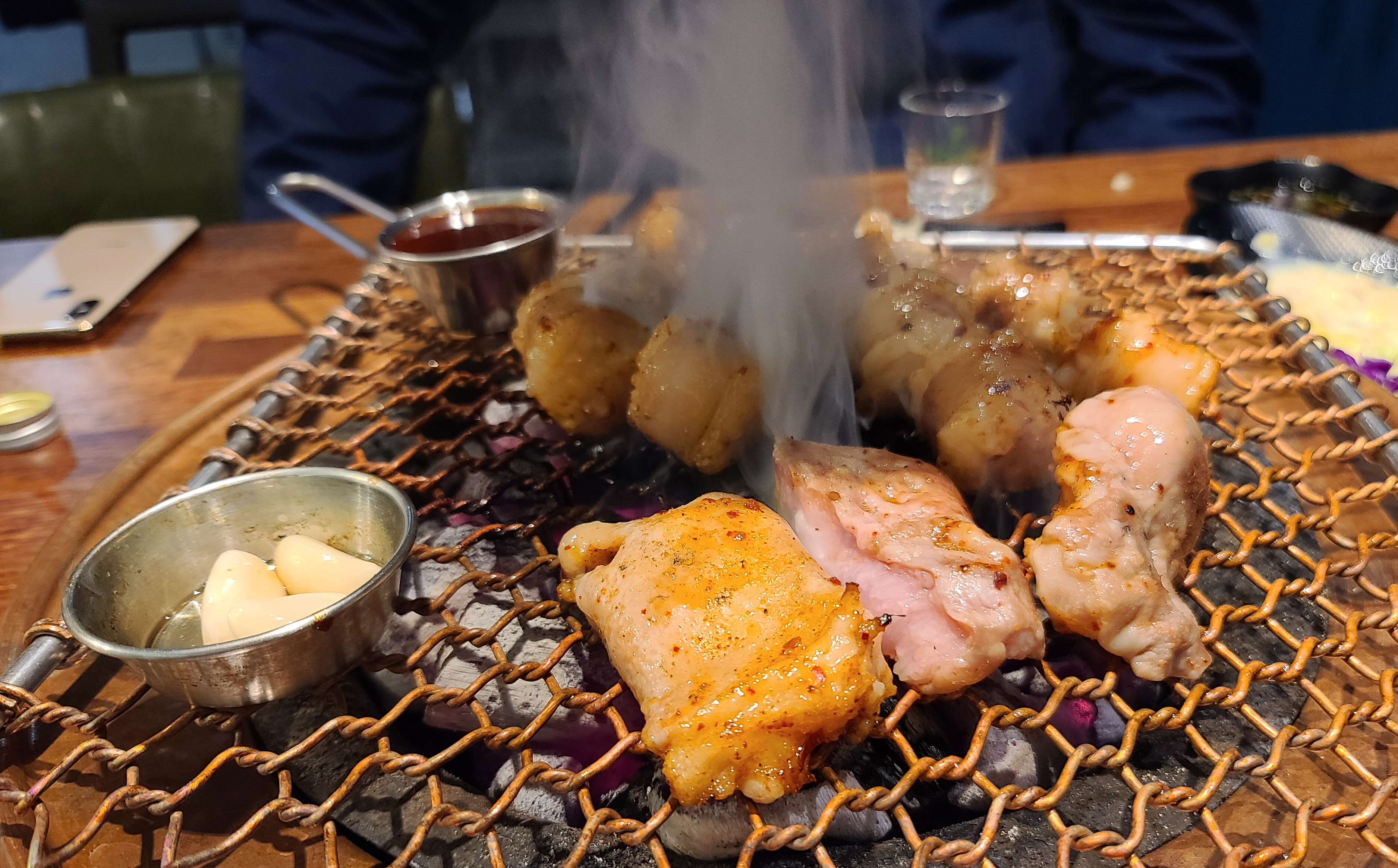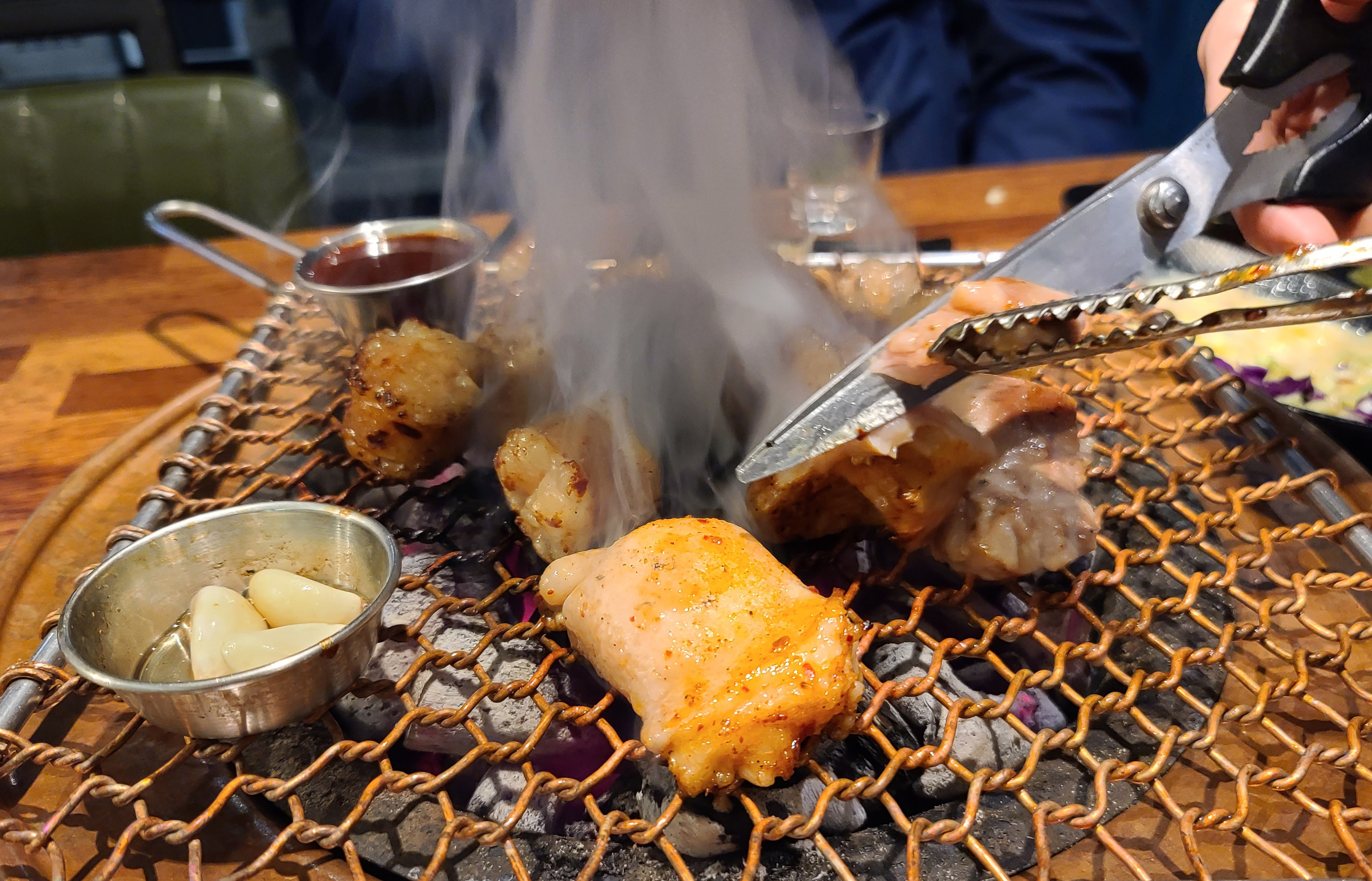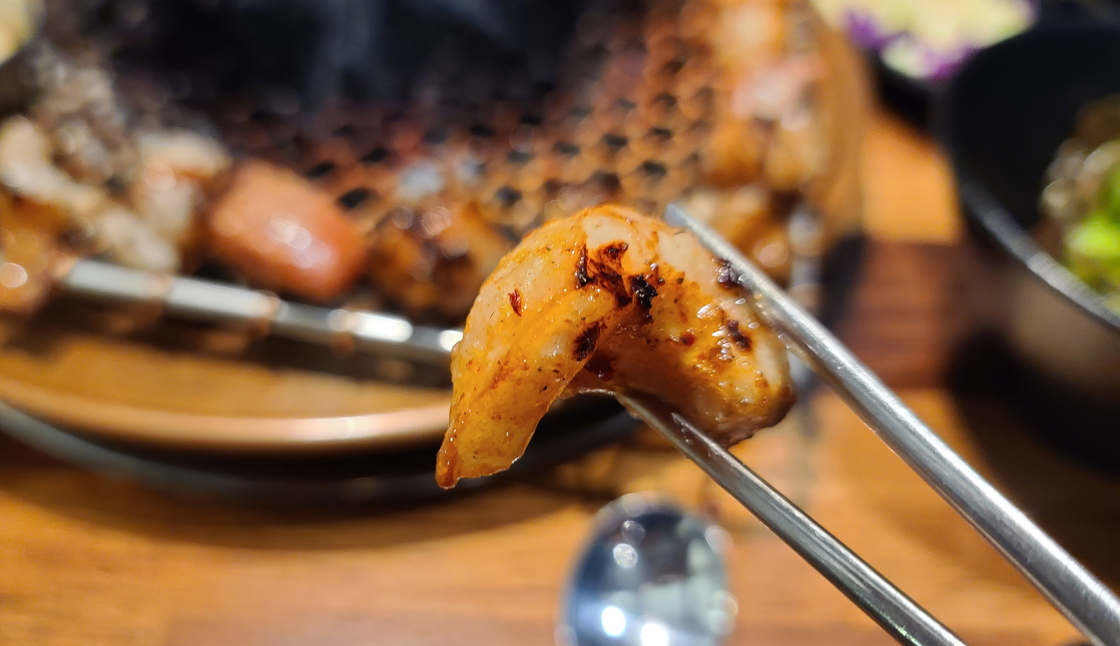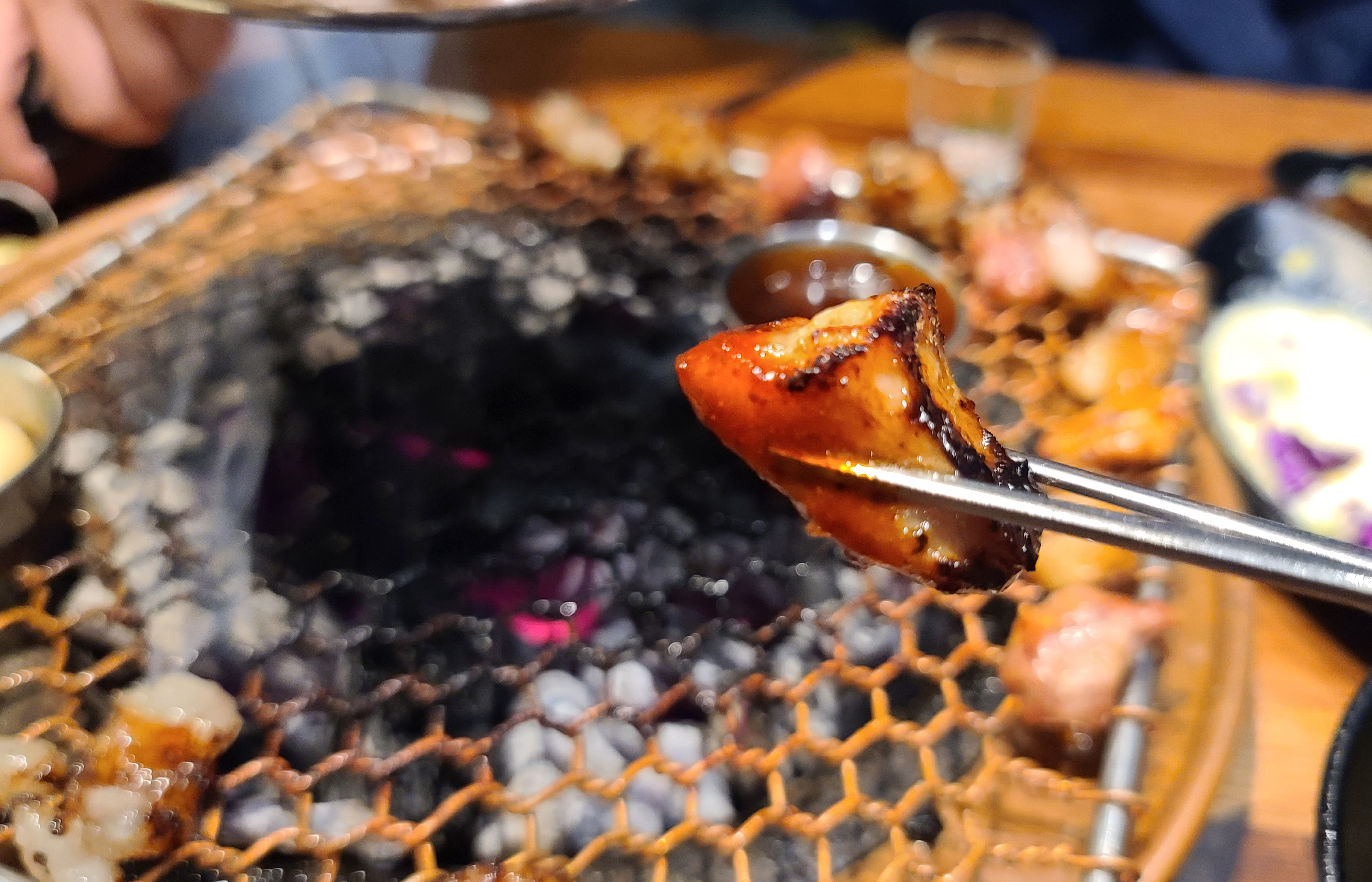 곧이어 불이랑 그릴이 준비되었고, 친구가 추천해주었던 대창・막창이 나왔습니다. 양곱화는 특히 통통한 대창이 인상적인 가게였는데요, 보통 대창하면 기름기가 너무 많아서 느끼한(고소한) 맛을 강조하고 있는데, 양곱화의 대창은 탱탱한 게 양념까지 되어 보기에도 좋고 먹음직스럽게 생겼더라고요.