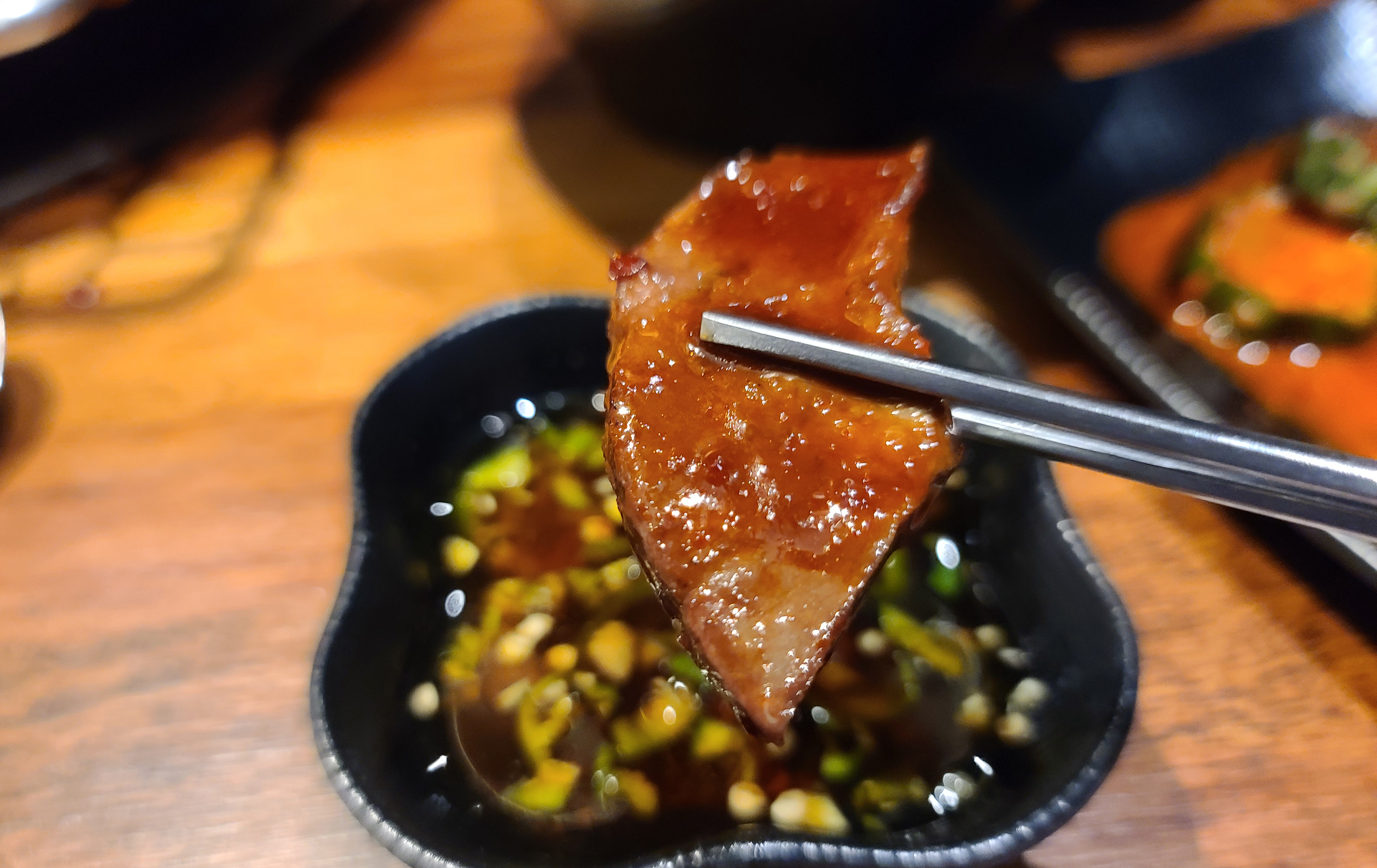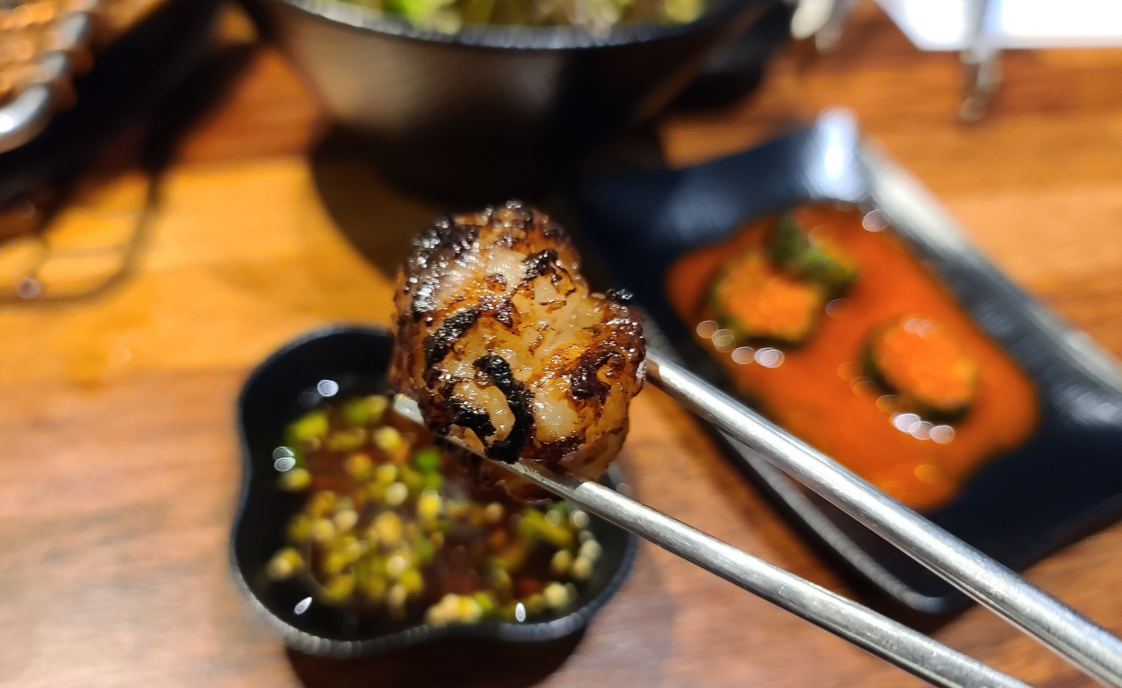 잘 익은 대창과 막창을 집어 먹어보았는데, 역시나 고소하고 맛있더라고요. 약간 기름져도 쫄깃 탱탱한 식감에 정신없이 먹게 된 것 같습니다. 저는 기름져 고소한 대창도 좋았지만, 개인적으로는 막창의 식감이 더 좋았습니다.